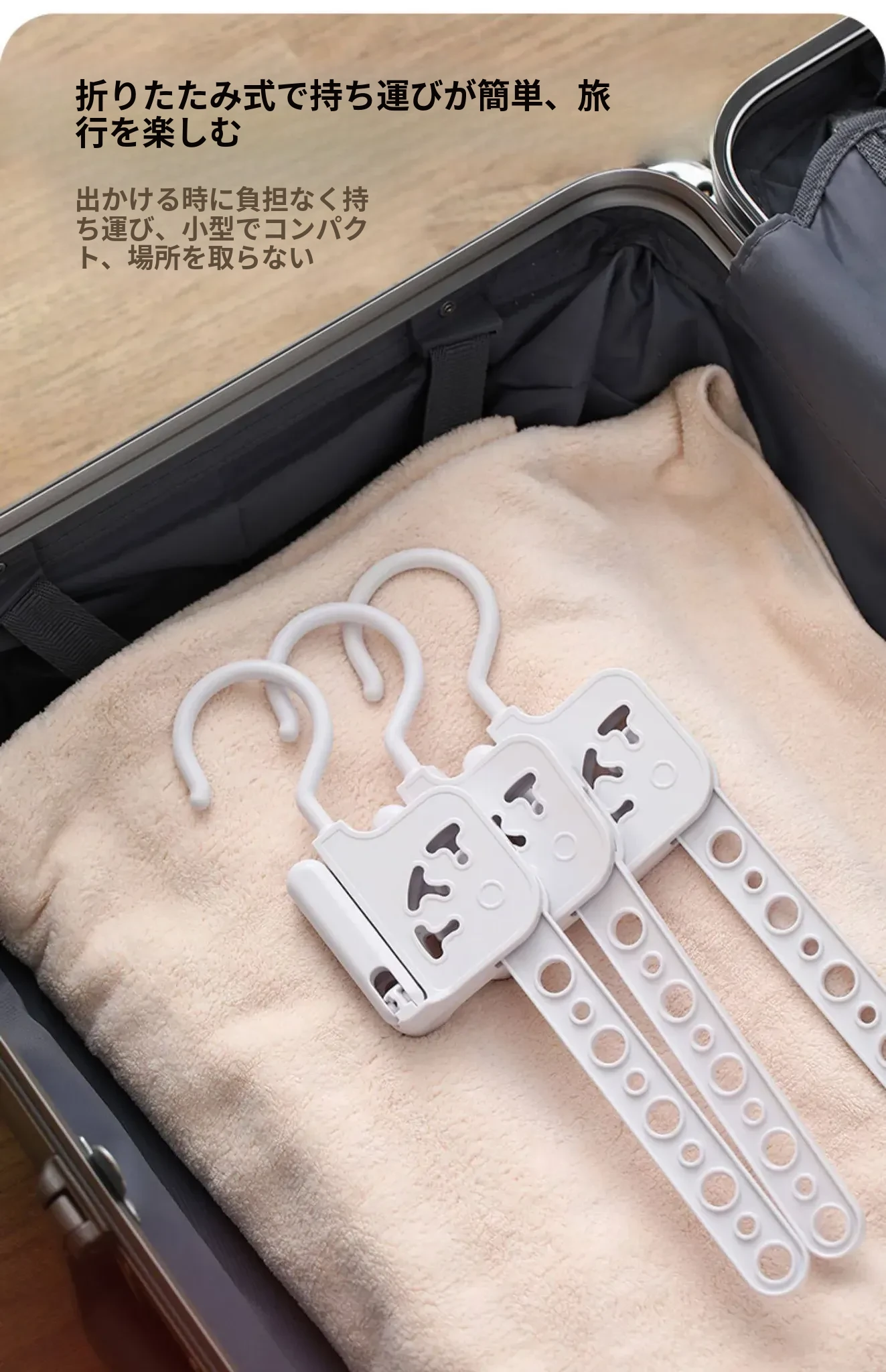 旅行用ハンガー(3枚入)+折りたたみ物干しラック