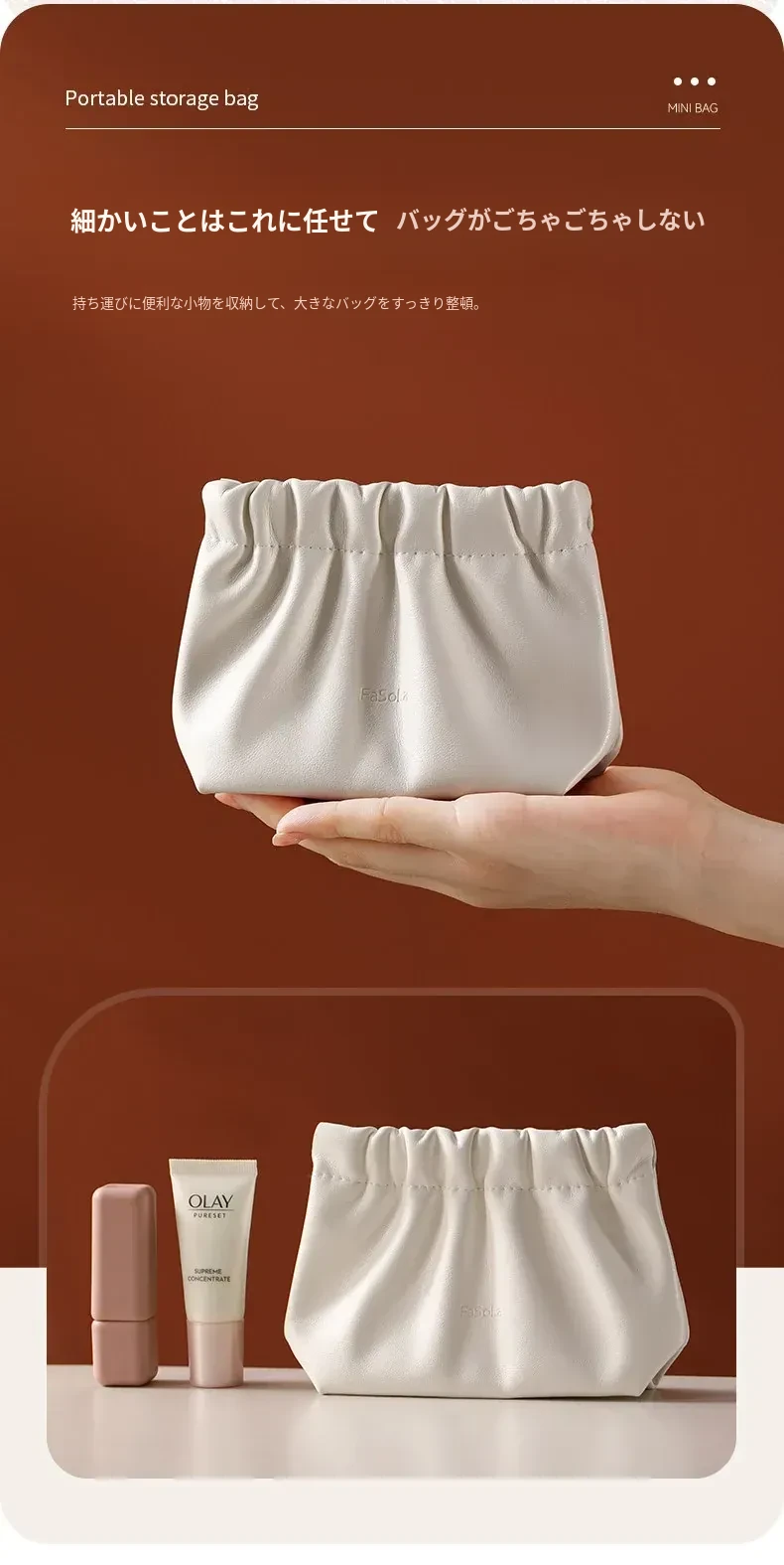 FaSoLaジュエリー収納ポーチ - 持ち運びに便利な外出用!化粧品、データケーブル、充電器を自動で閉じる収納袋。オシャレで機能的、あなたの必需品をスマートに整理!