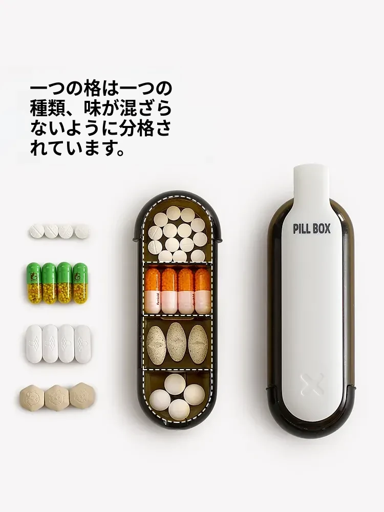 FaSoLa携帯用薬ケース - ミニサイズの分格ボックス、紫外線対策で安心して薬を収納!持ち運びに便利なデザインで、あなたの健康をサポートします。