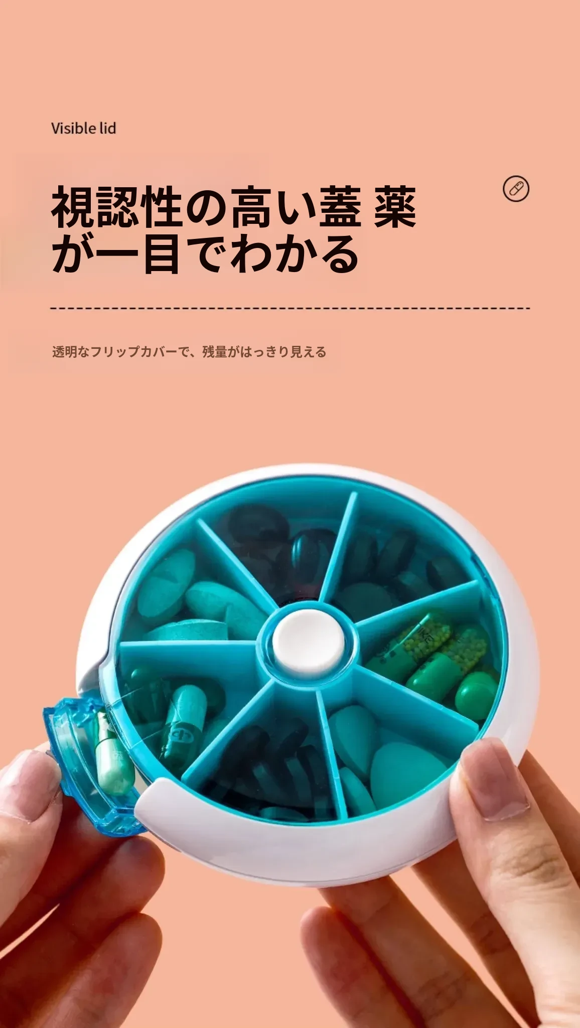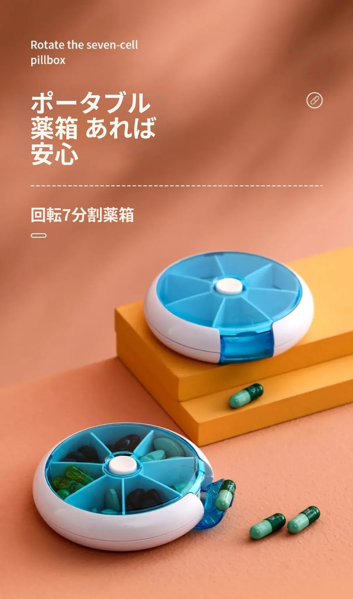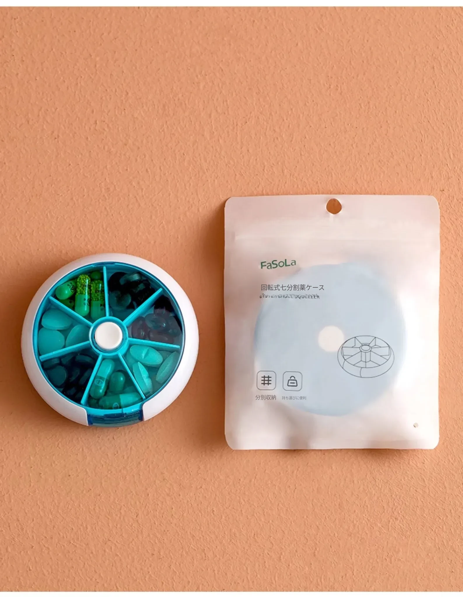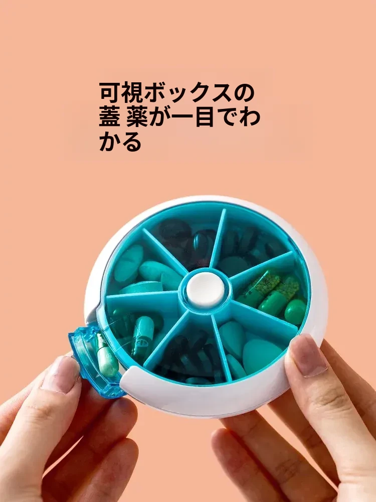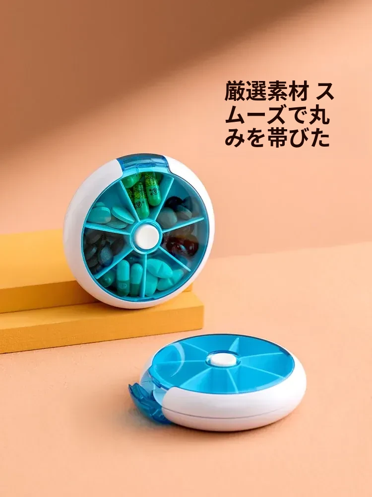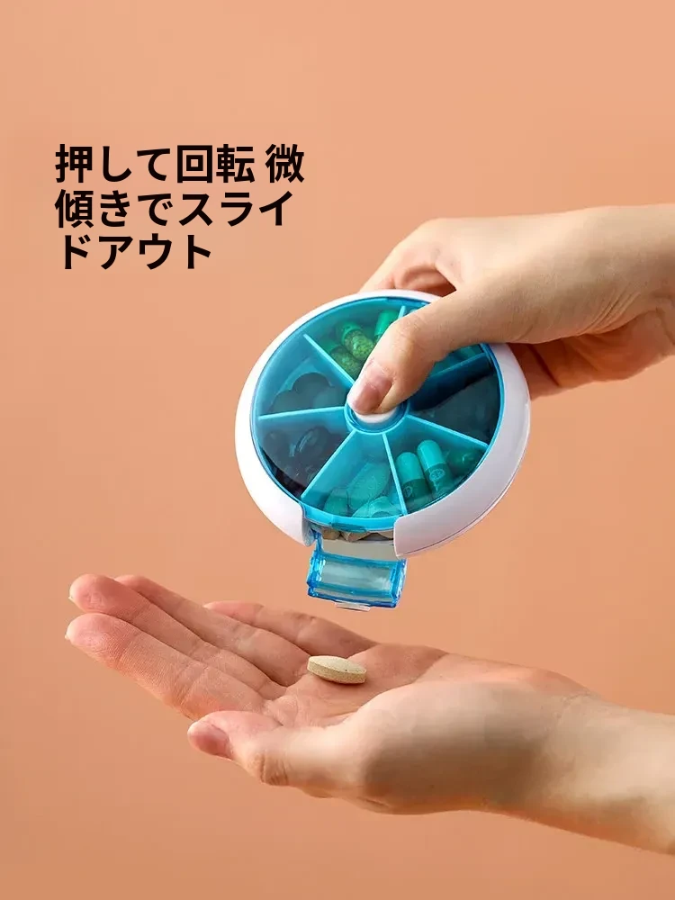 FaSoLa携帯用薬ケース - 薬の分割・切断が簡単!回転式7つの仕切りで、1週間分の薬を整理整頓。旅行や日常使いに最適!