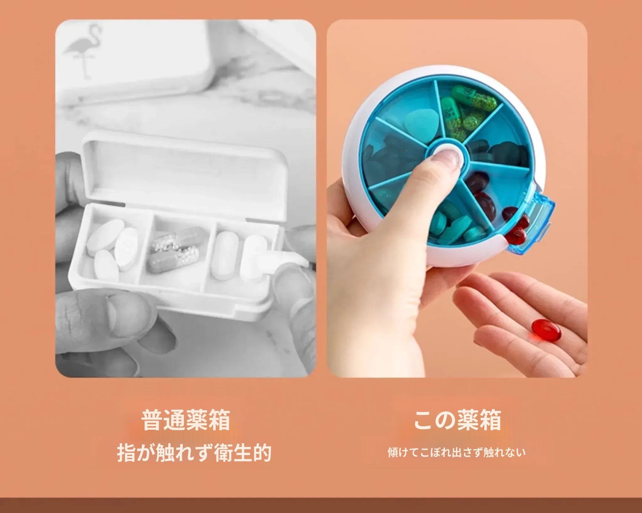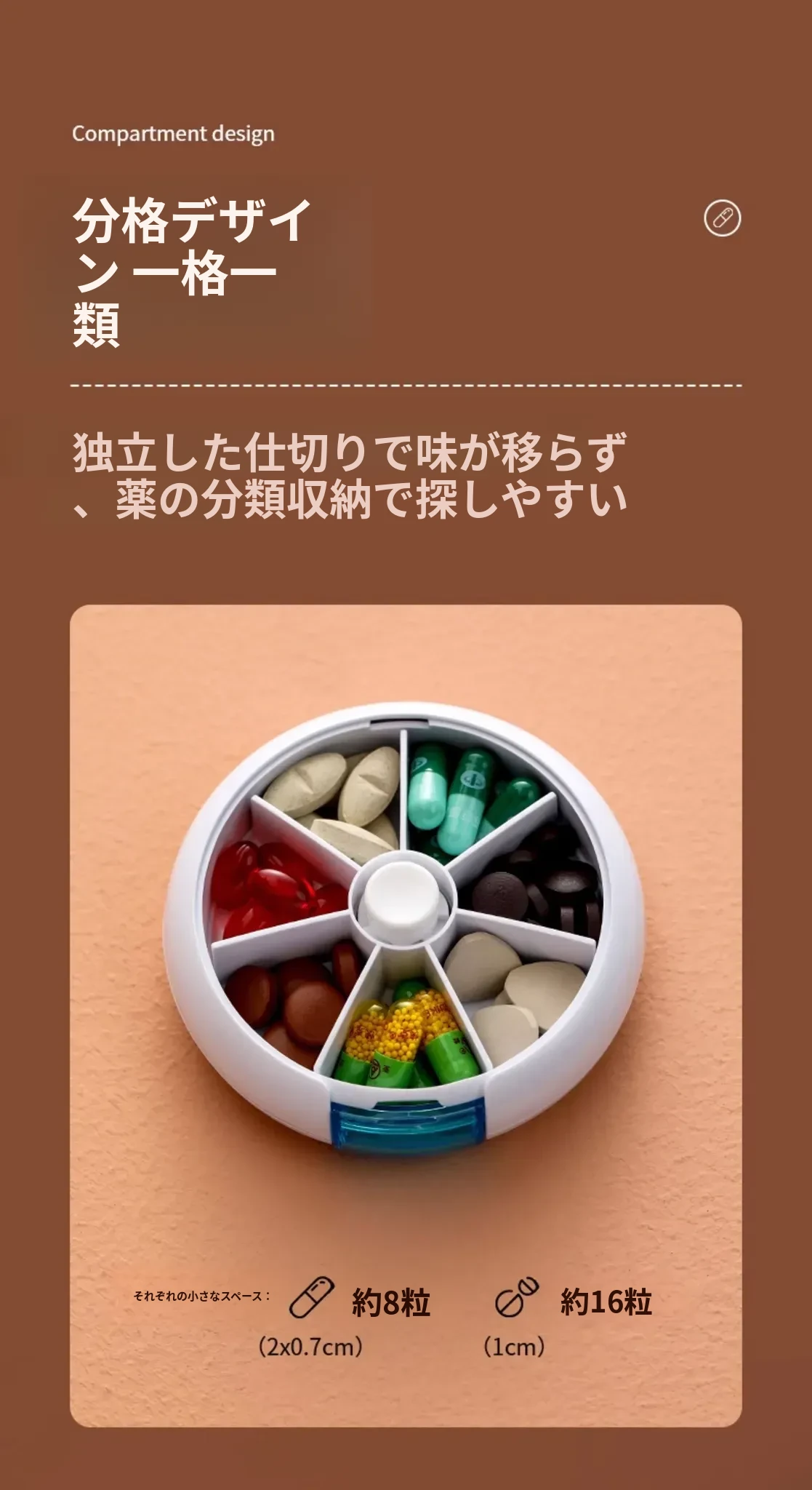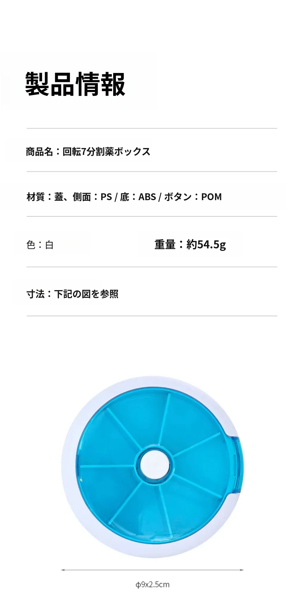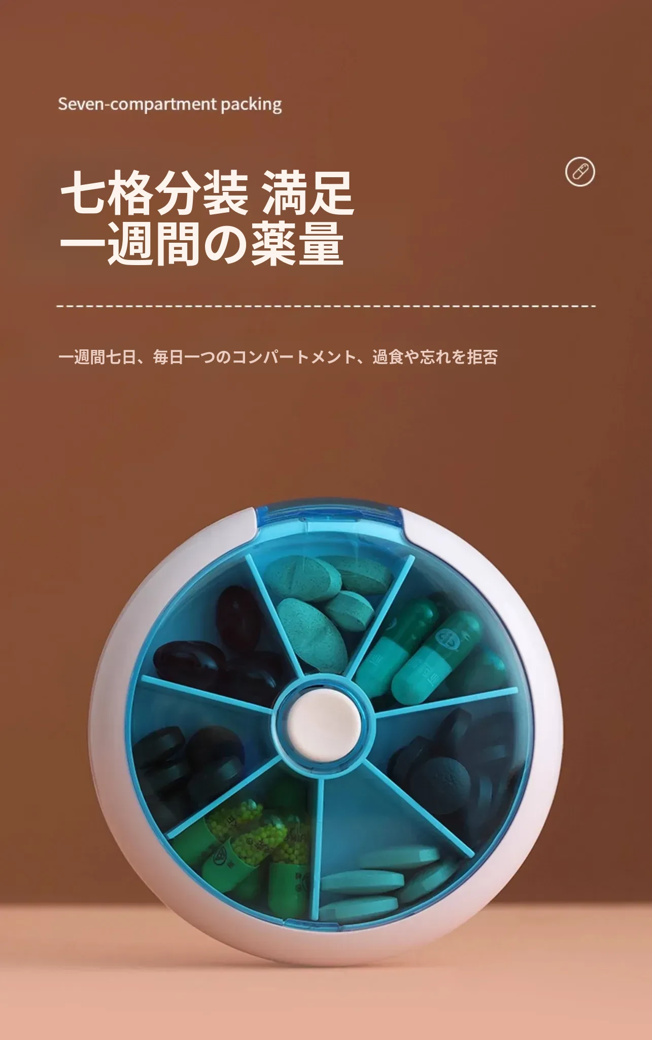 FaSoLa携帯用薬ケース - 薬の分割・切断が簡単!回転式7つの仕切りで、1週間分の薬を整理整頓。旅行や日常使いに最適!