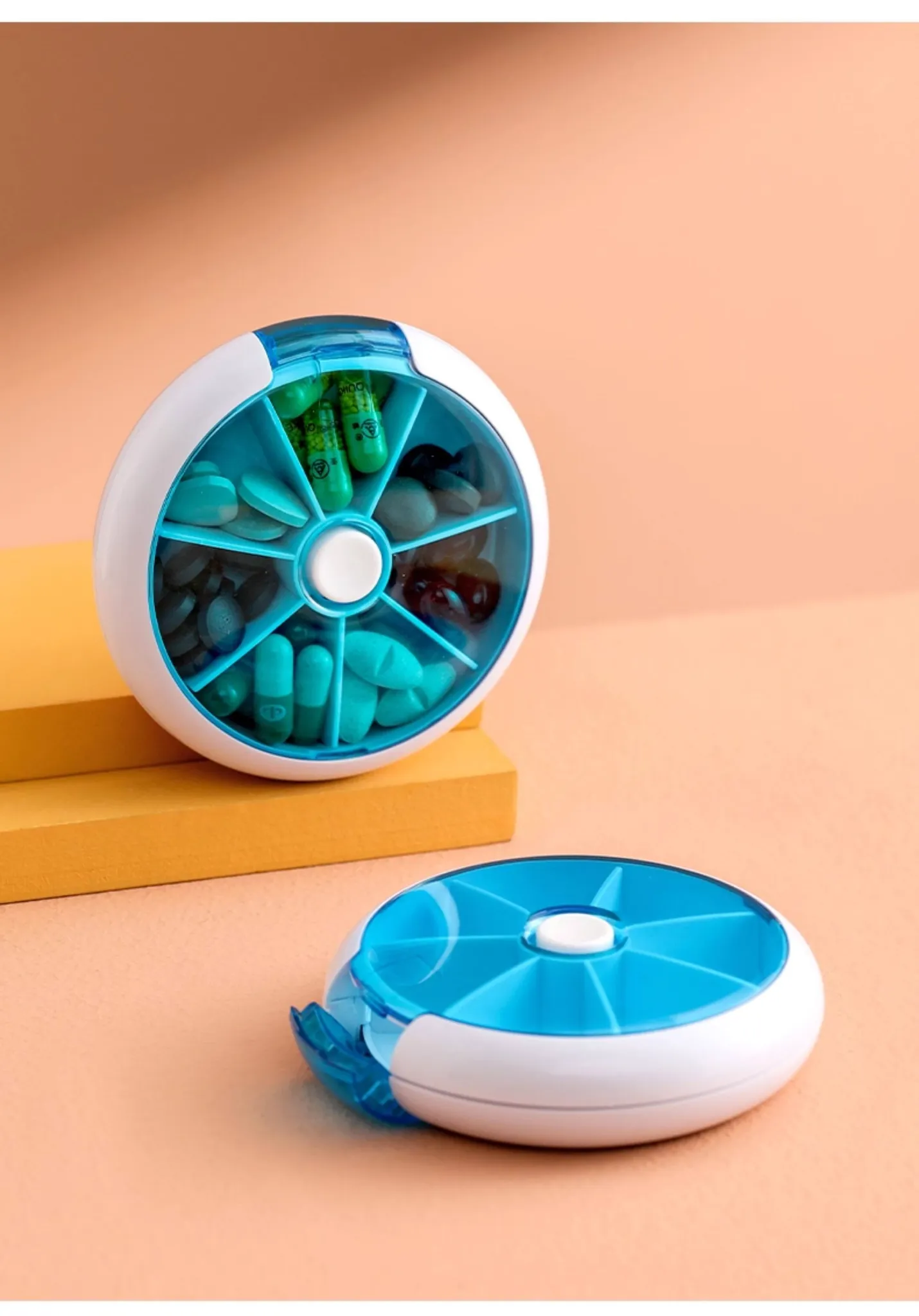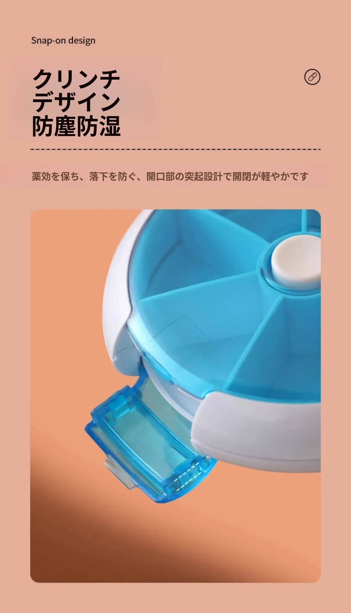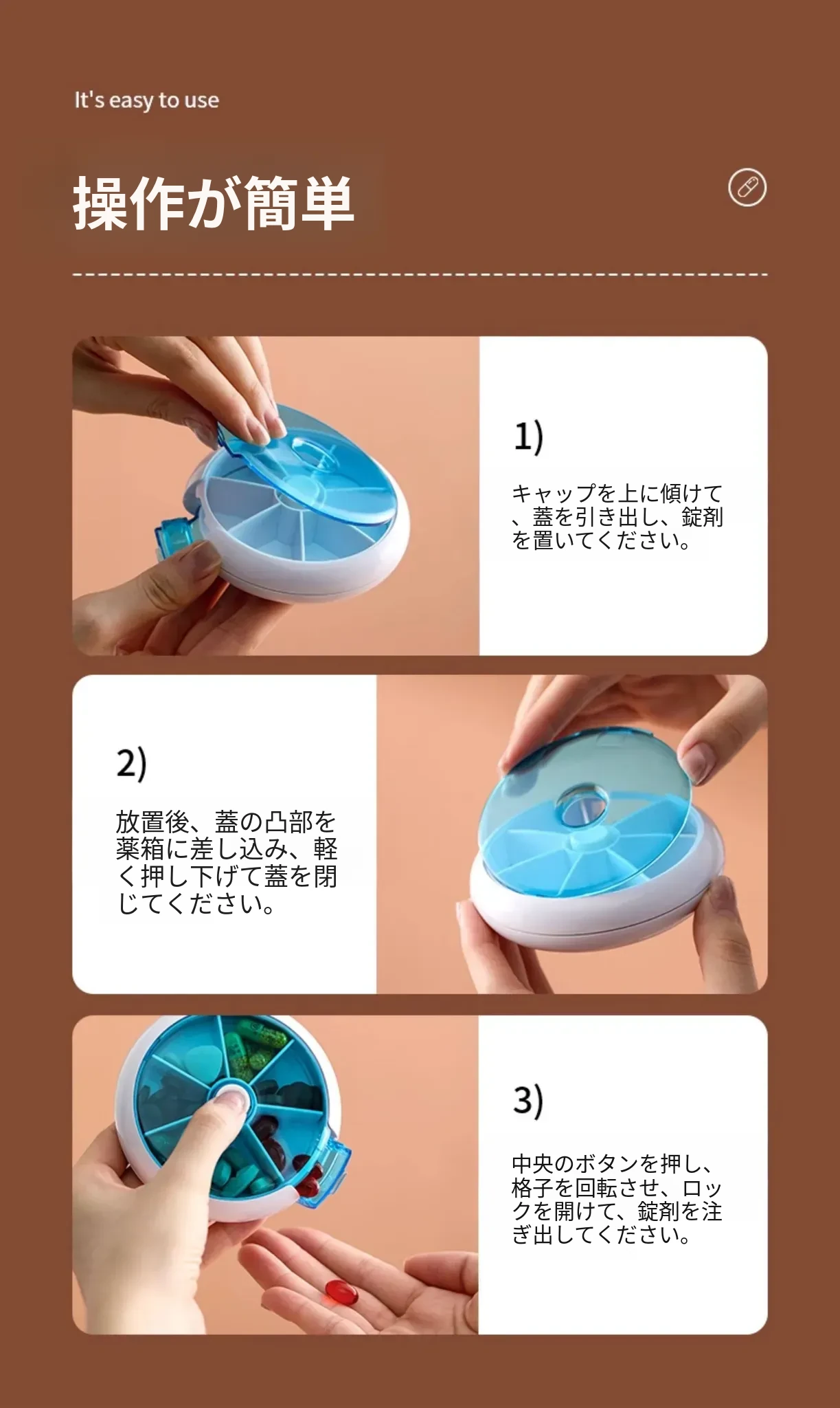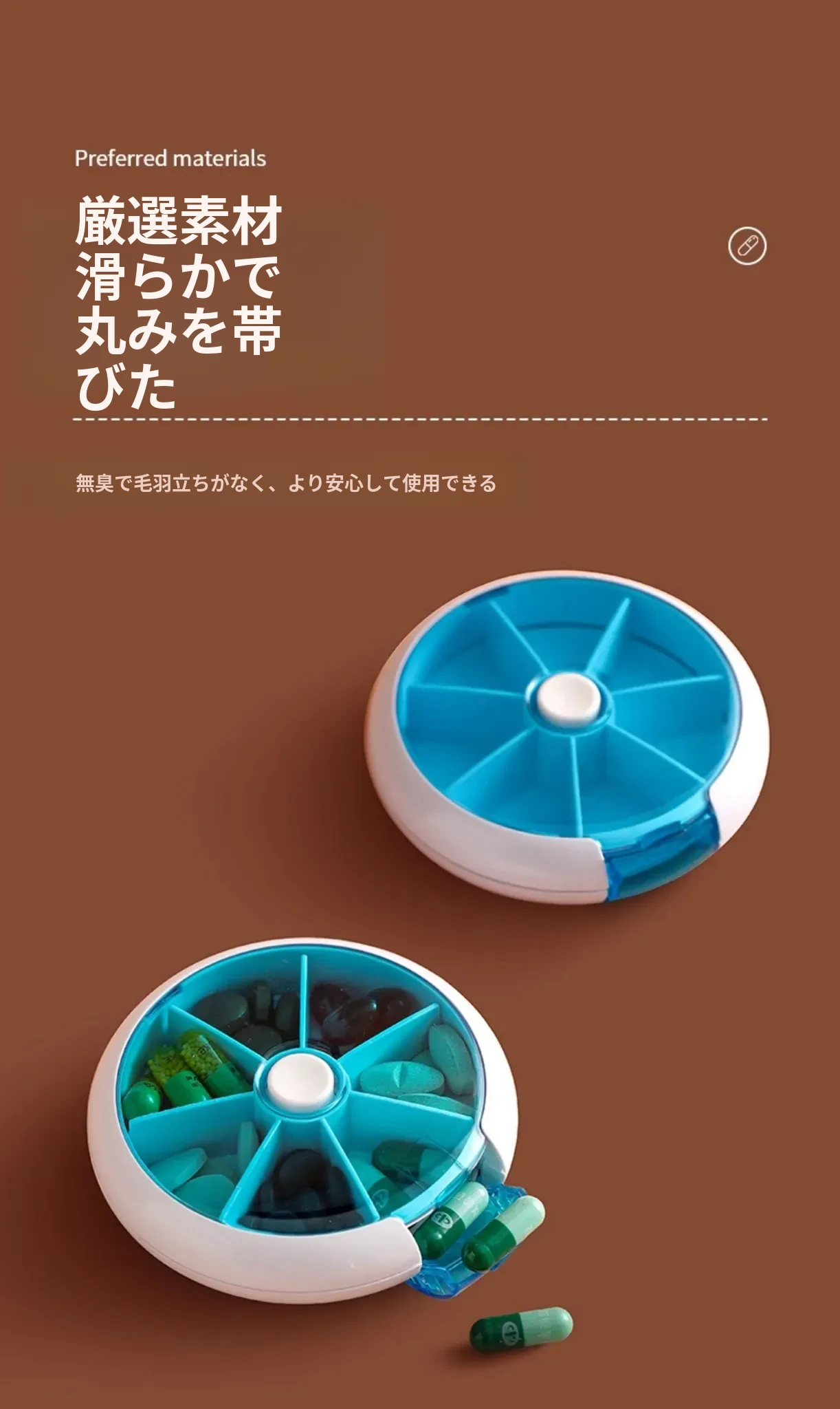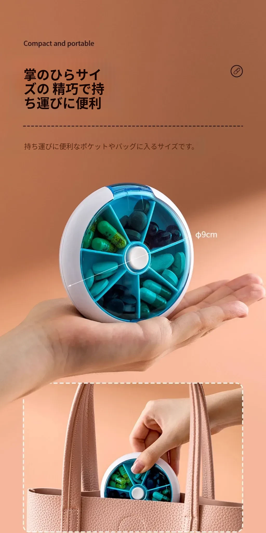 FaSoLa携帯用薬ケース - 薬の分割・切断が簡単!回転式7つの仕切りで、1週間分の薬を整理整頓。旅行や日常使いに最適!