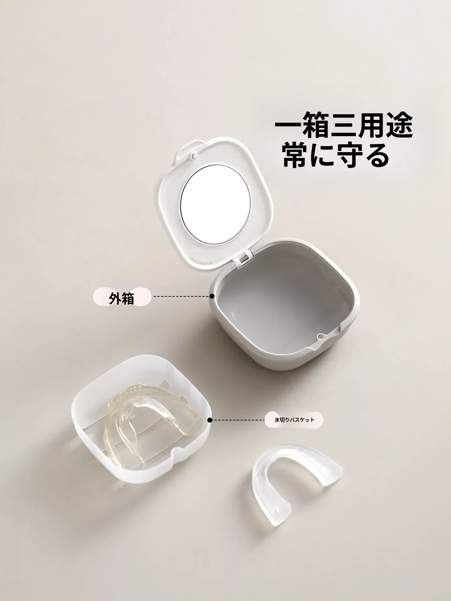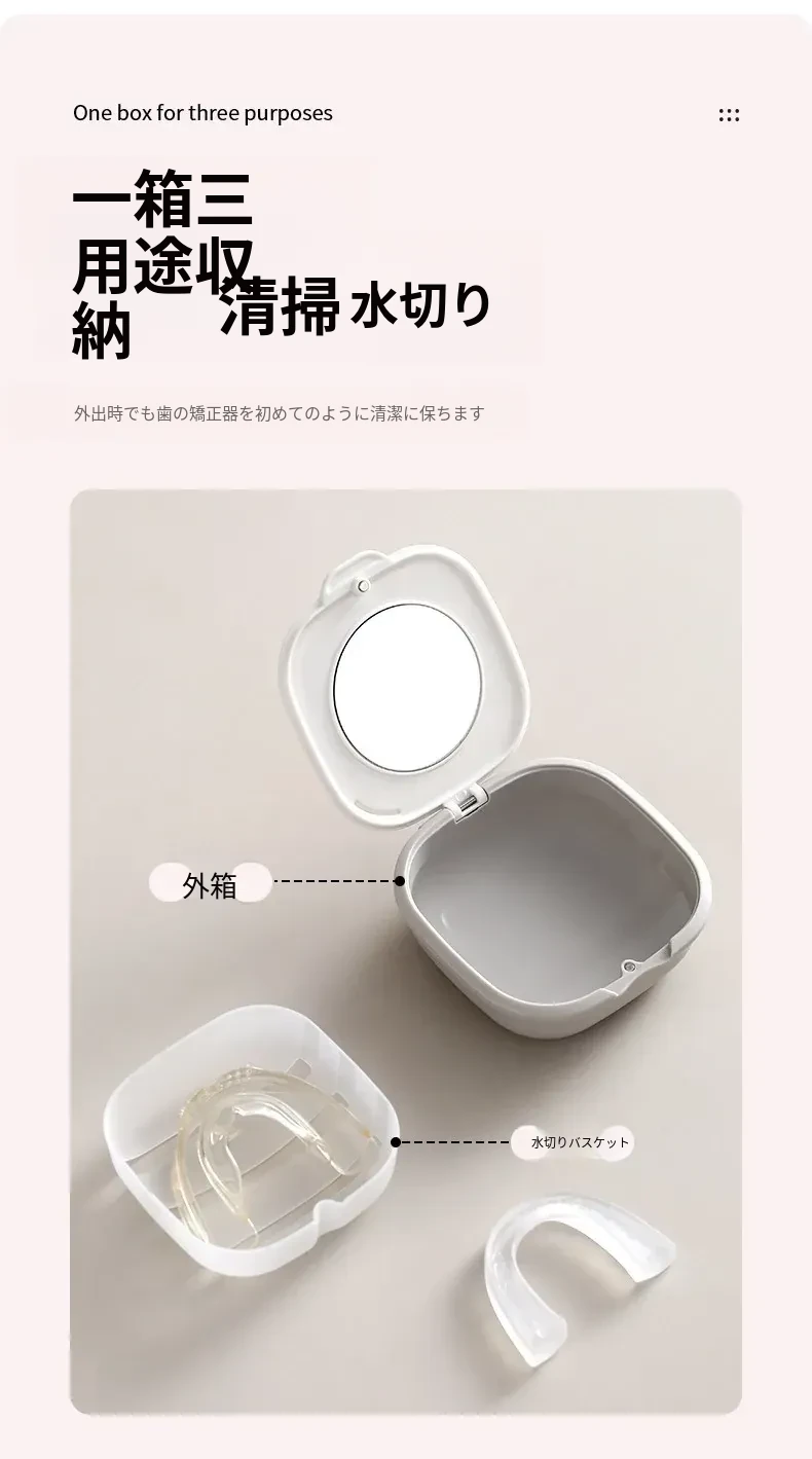 FaSoLa 便利な歯列矯正用収納ボックス - 取り外し可能な鏡付き!目立たないマウスピースやクリーニングボックス、歯の保持器にも最適!おしゃれで機能的なデザインで、いつでもどこでも使えます。