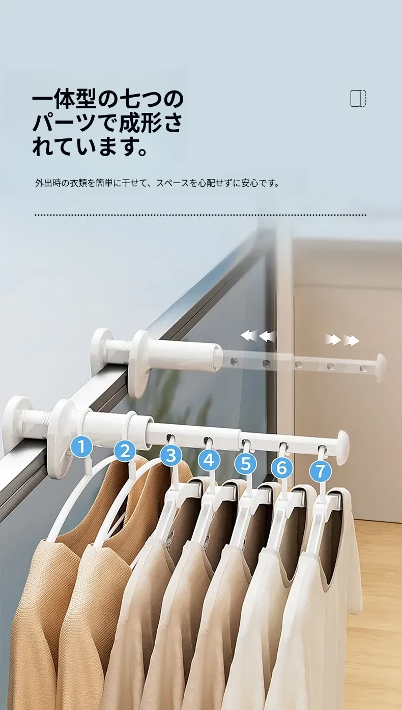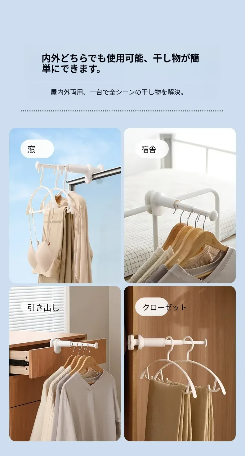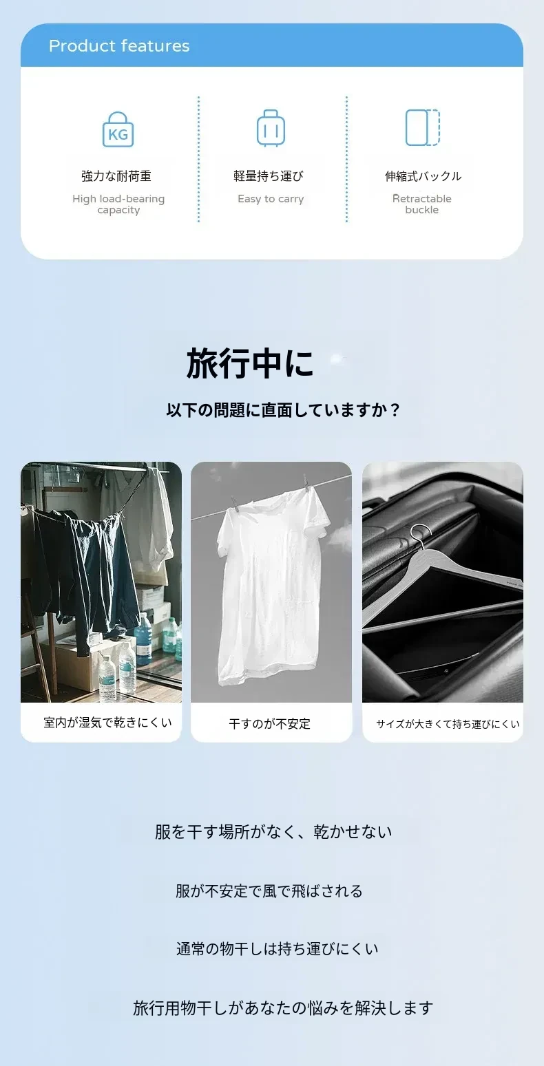 FaSoLa旅行用携帯型衣類ハンガー - 打孔不要の伸縮式で、出張やホテルでの衣類干しが簡単に!旅行に最適な便利アイテム!