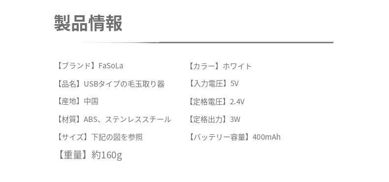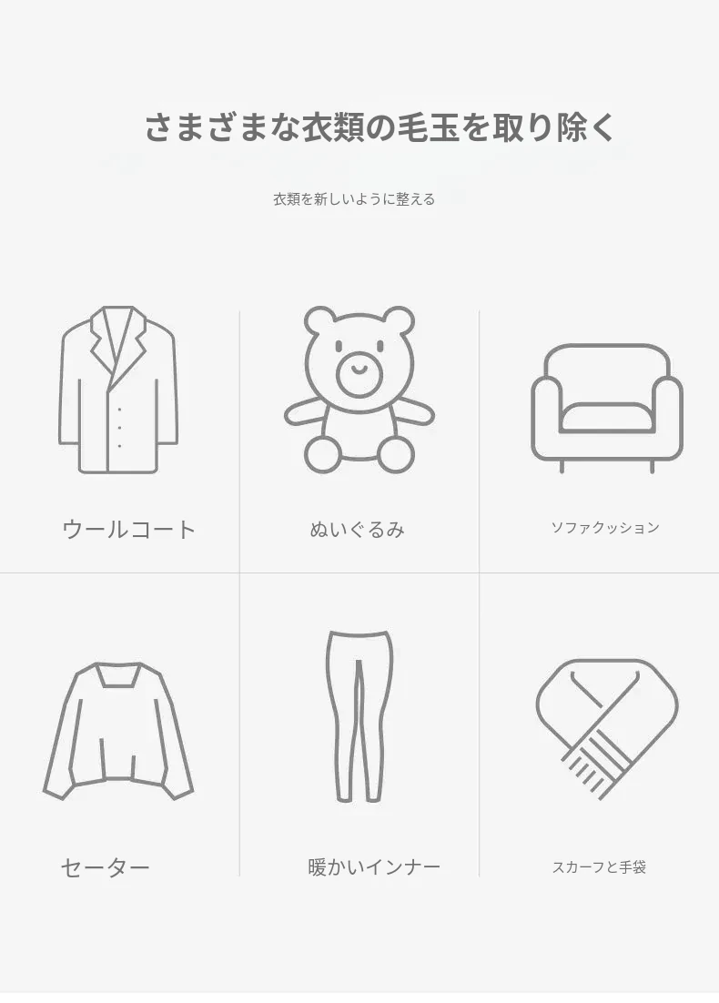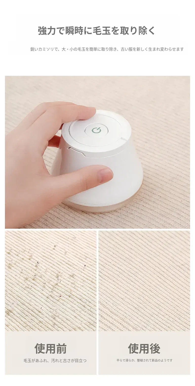 FaSoLa充電式毛玉取り器 - 衣類を美しく保つ必須アイテム!家庭用の便利な毛玉カッターで、大切なコートや衣服を優しくケア。手軽にプロの仕上がりを実現します!