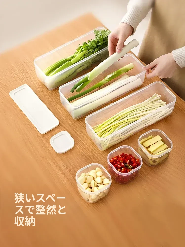 FaSoLa 冷蔵庫収納ボックス 大葱・小葱・香菜専用 新鮮保存ボックス 食品グレードの葱・生姜・ニンニク密封容器で、食材を長持ちさせる!キッチンをスッキリ整理して、料理をもっと楽しもう!