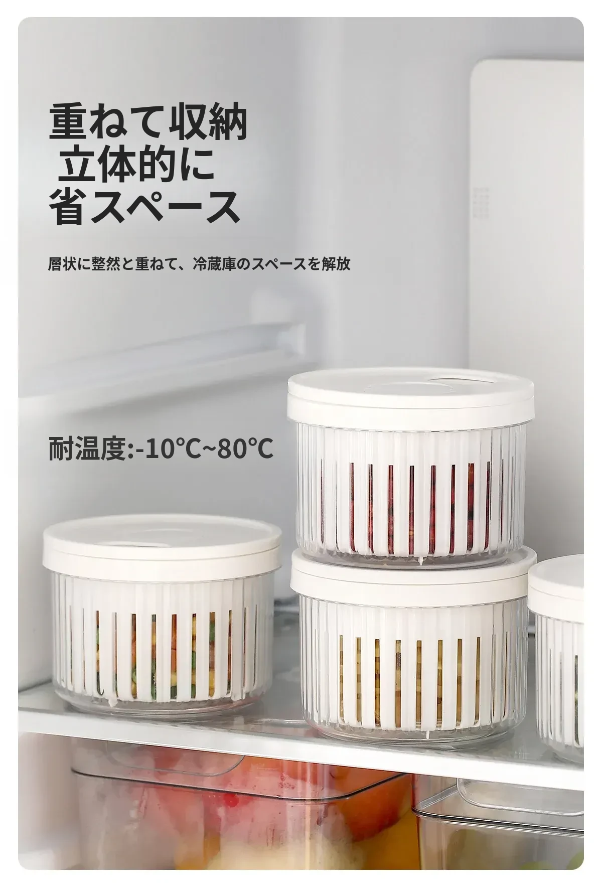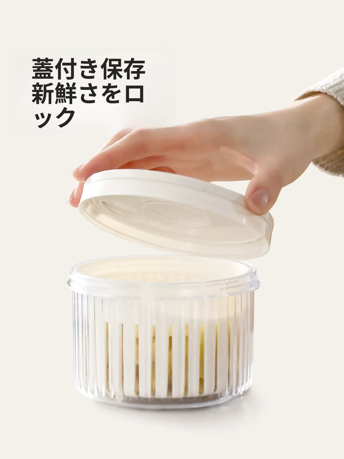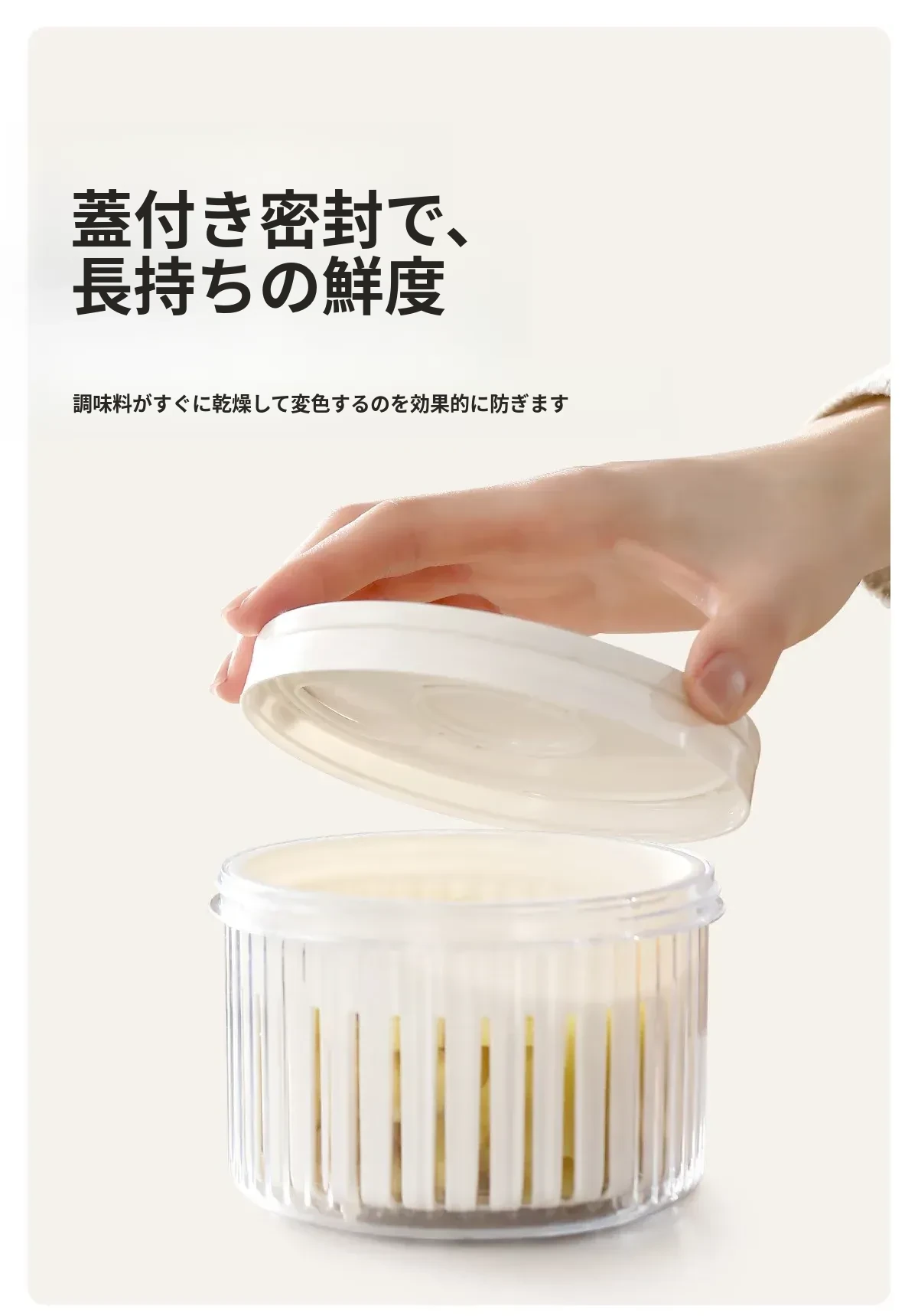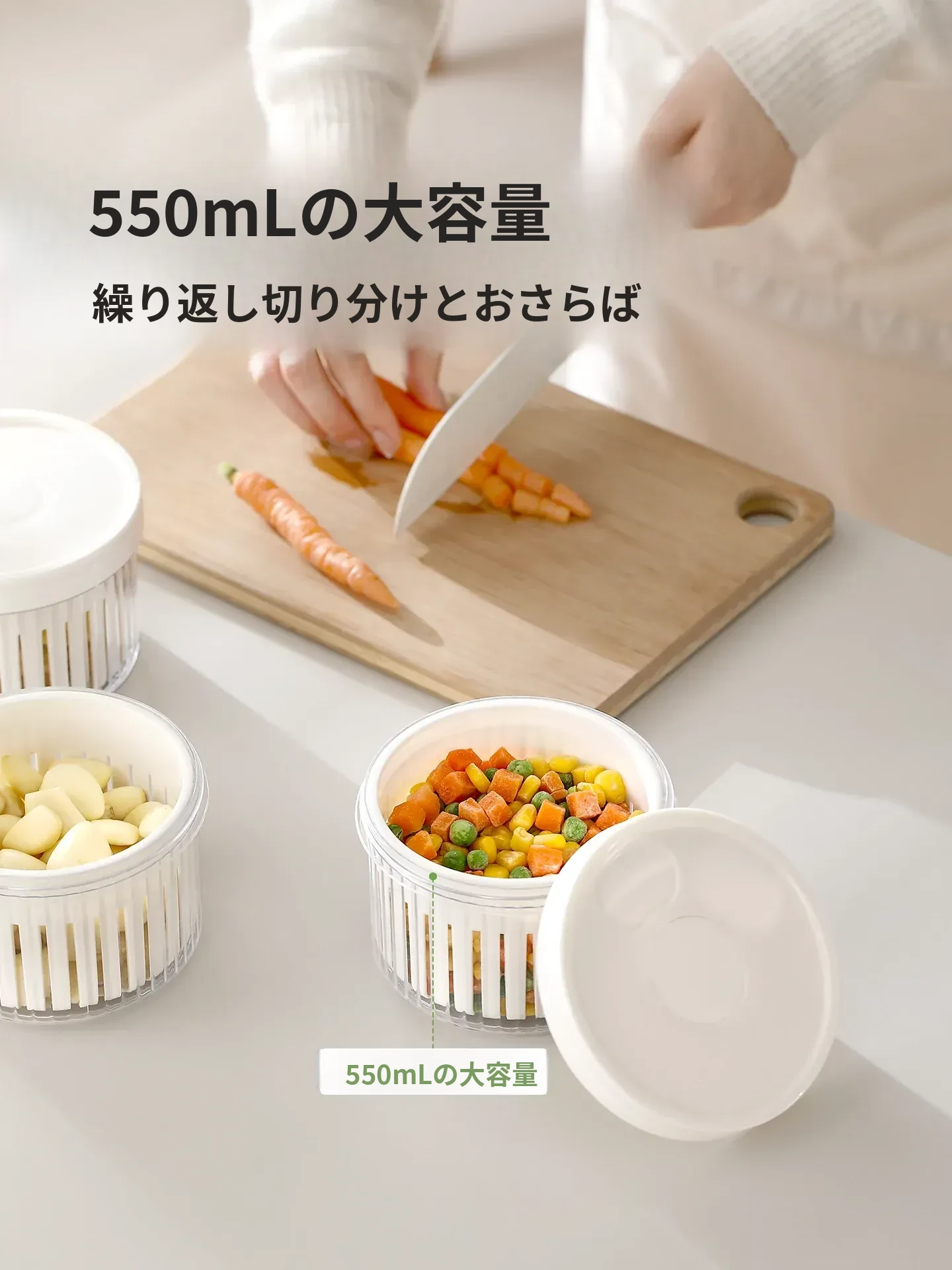 FaSoLaネギ&香味野菜保存ボックス - ネギ、ショウガ、ニンニク、唐辛子を新鮮に保つ密閉収納容器!キッチン専用、下ごしらえも簡単、便利な水切り機能付きで、料理の準備がもっと楽しく!