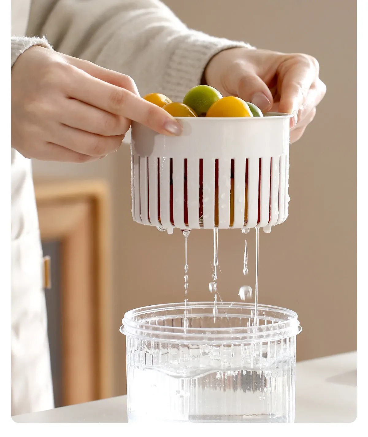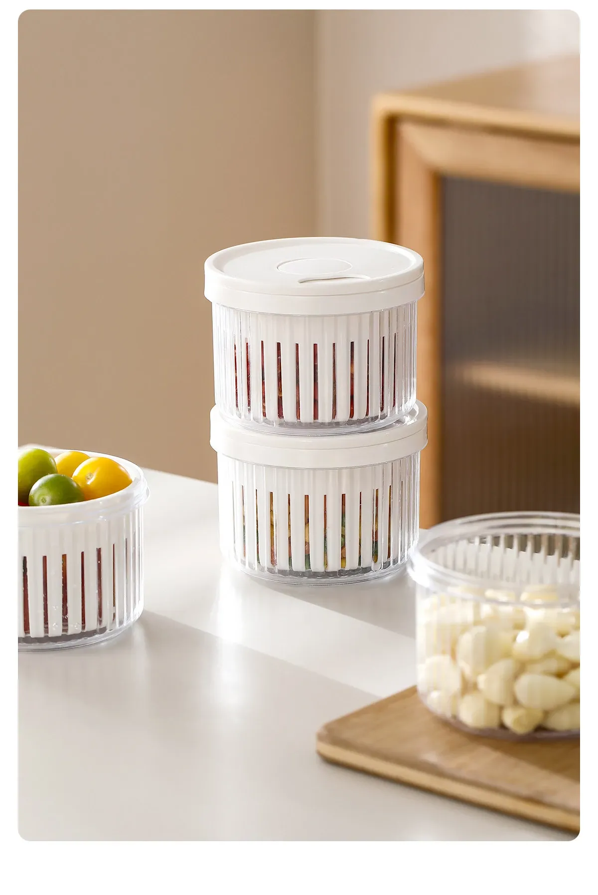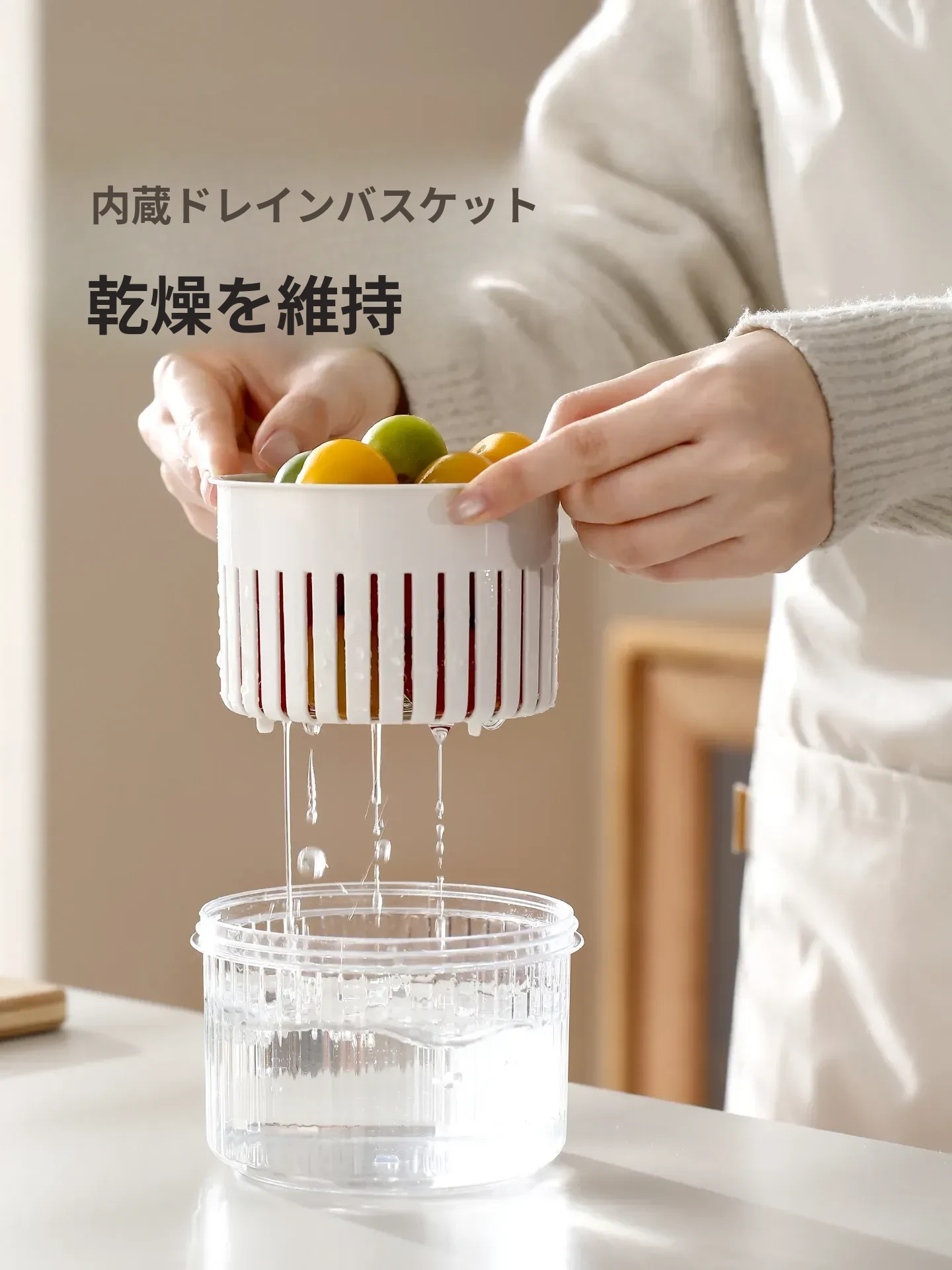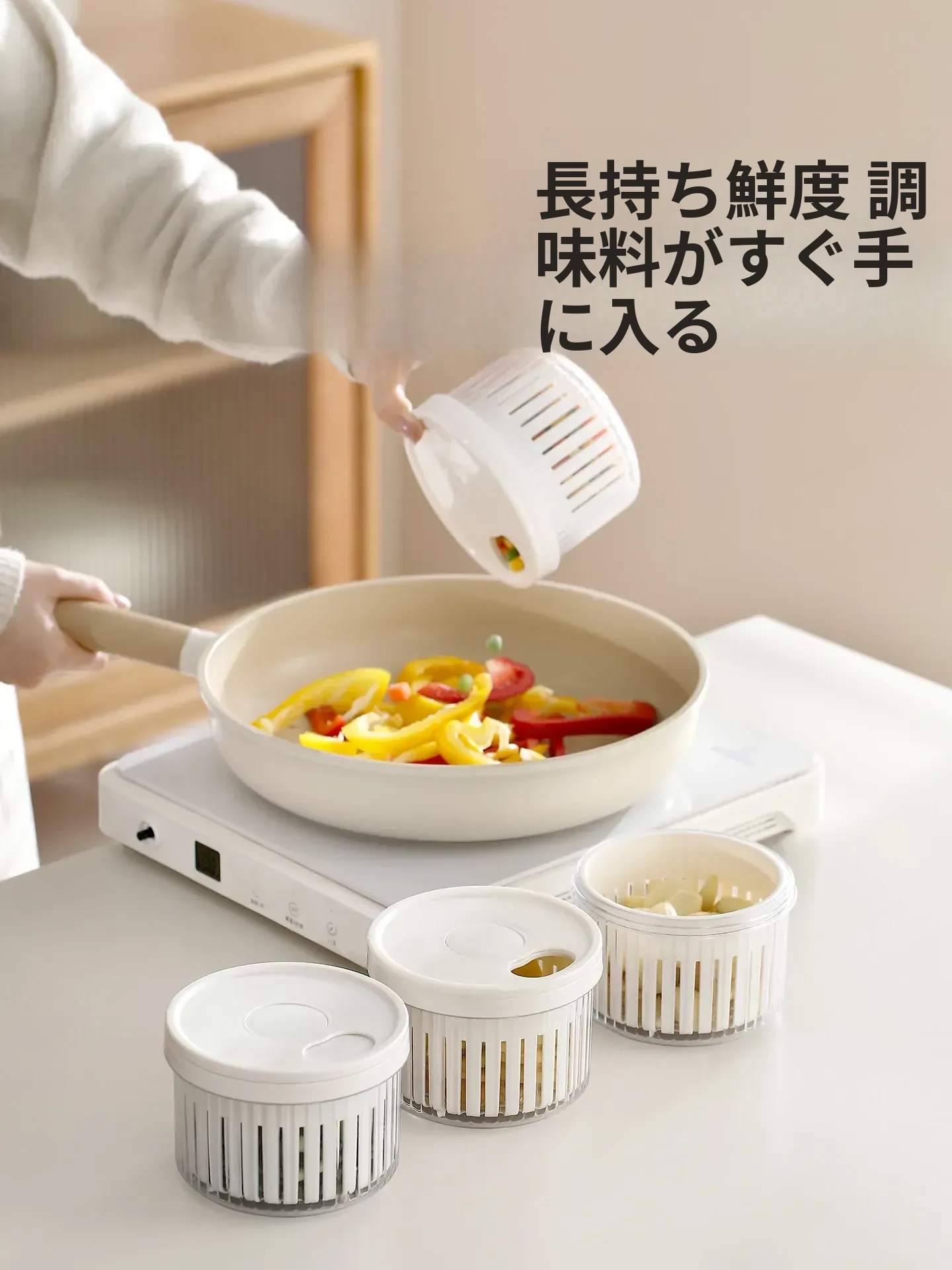 FaSoLaネギ&香味野菜保存ボックス - ネギ、ショウガ、ニンニク、唐辛子を新鮮に保つ密閉収納容器!キッチン専用、下ごしらえも簡単、便利な水切り機能付きで、料理の準備がもっと楽しく!