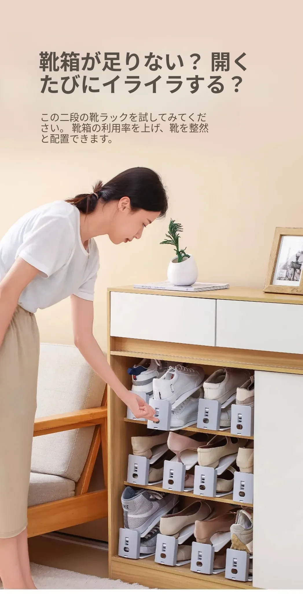 FaSoLa 宿舎用靴箱 - スペースを節約する二段シューラック!スリッパや靴をすっきり整理整頓できる便利な収納アイテム。快適な生活空間を手に入れましょう!