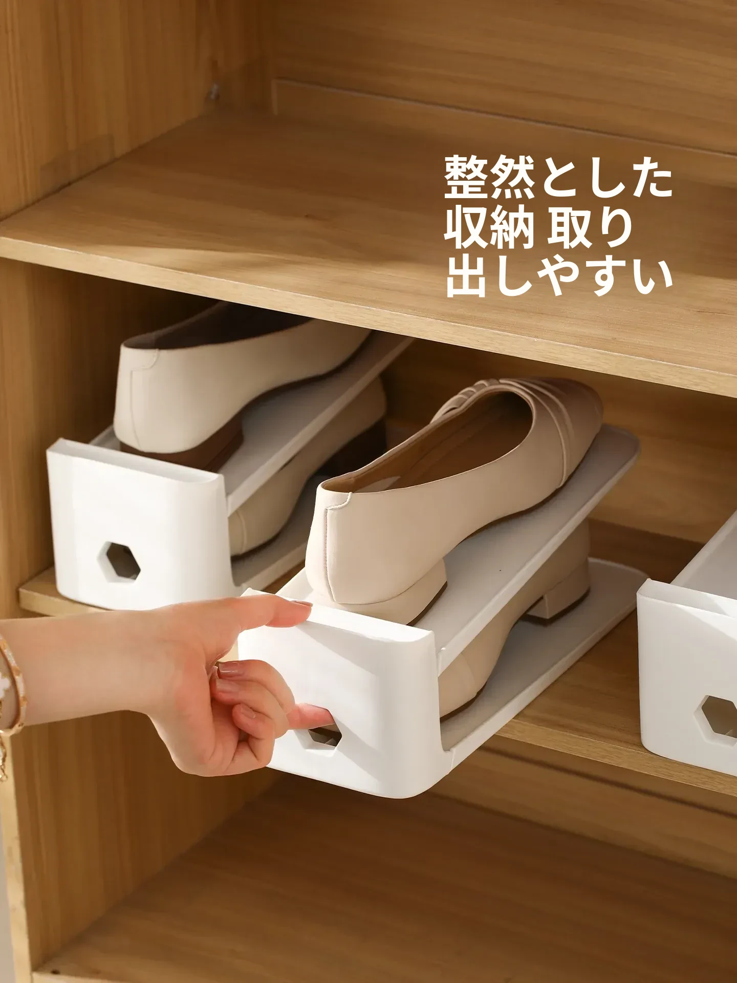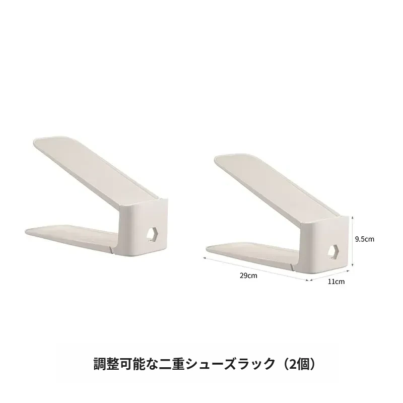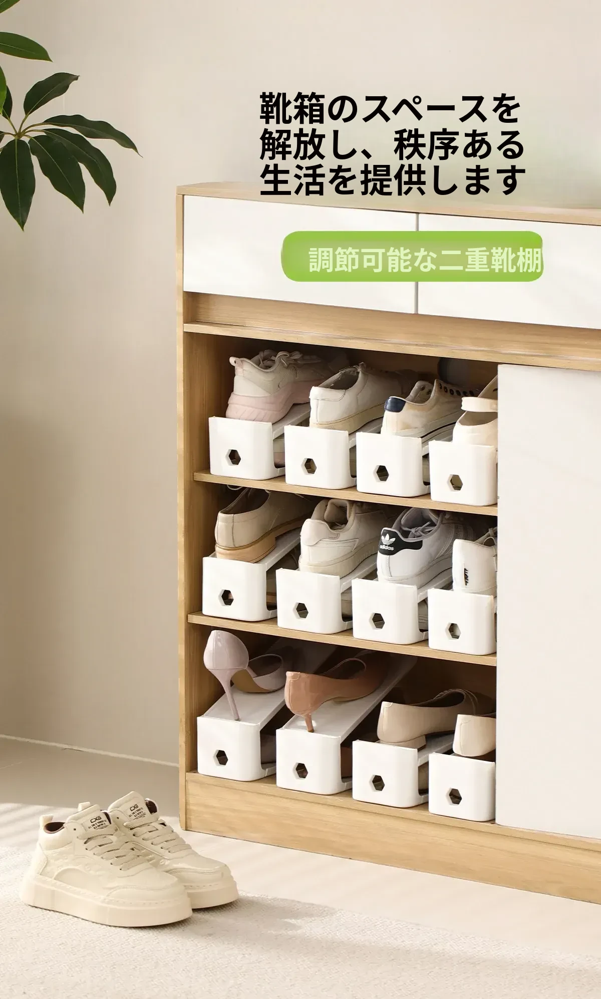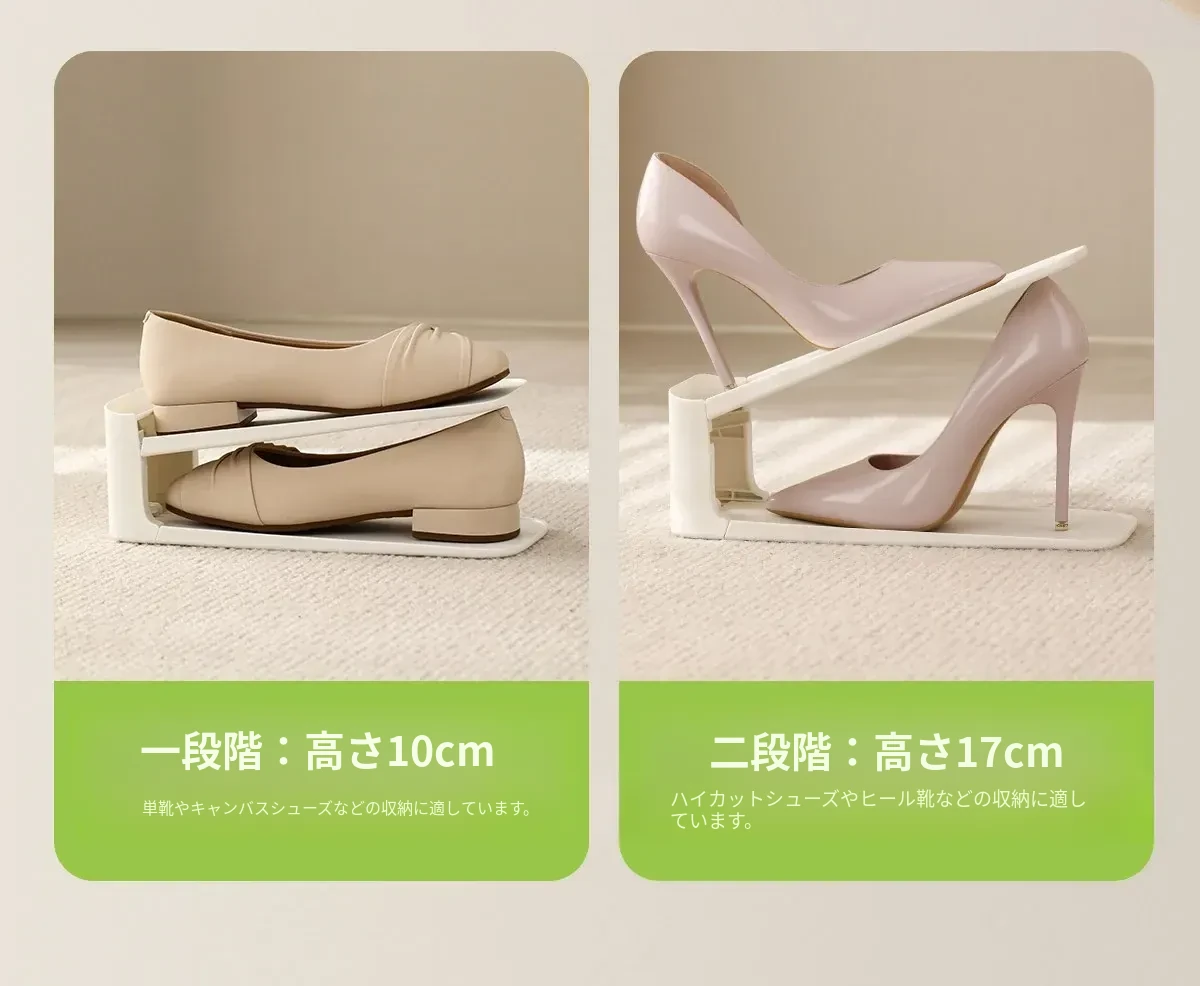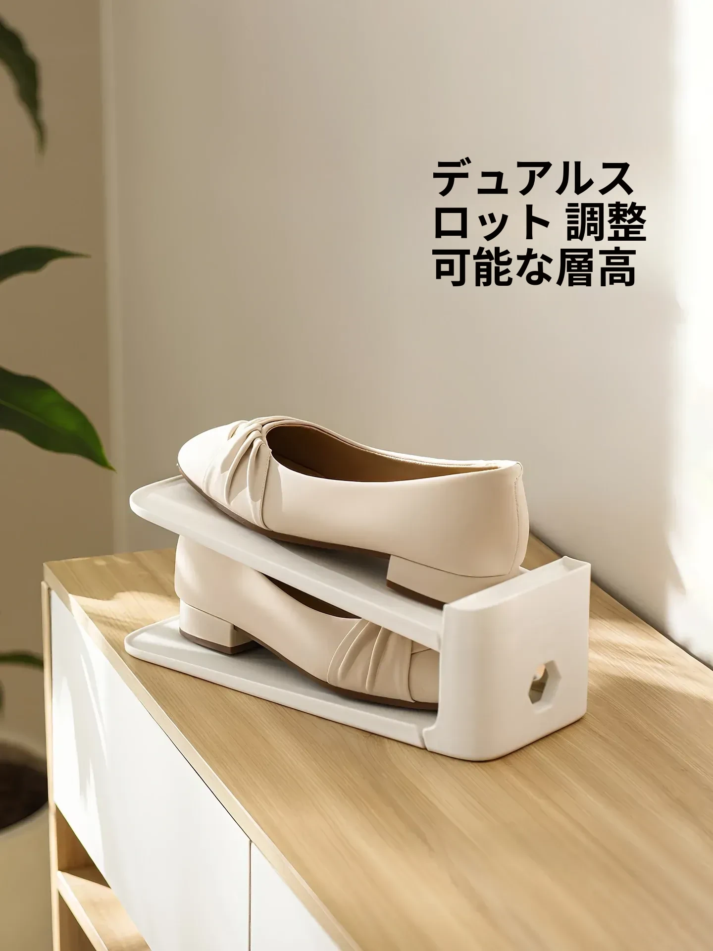 スペース節約!FaSoLa靴収納マジック、調整可能な2段シューラックで靴をスッキリ整理。仕切り板付きで、靴箱内もすっきり!