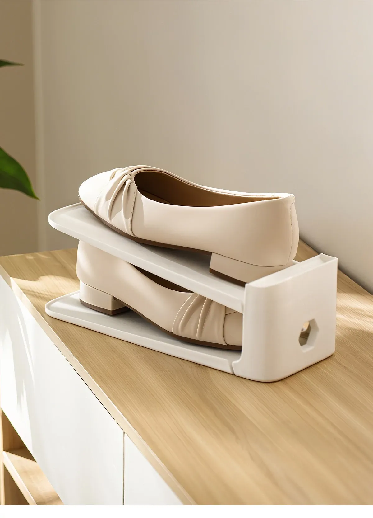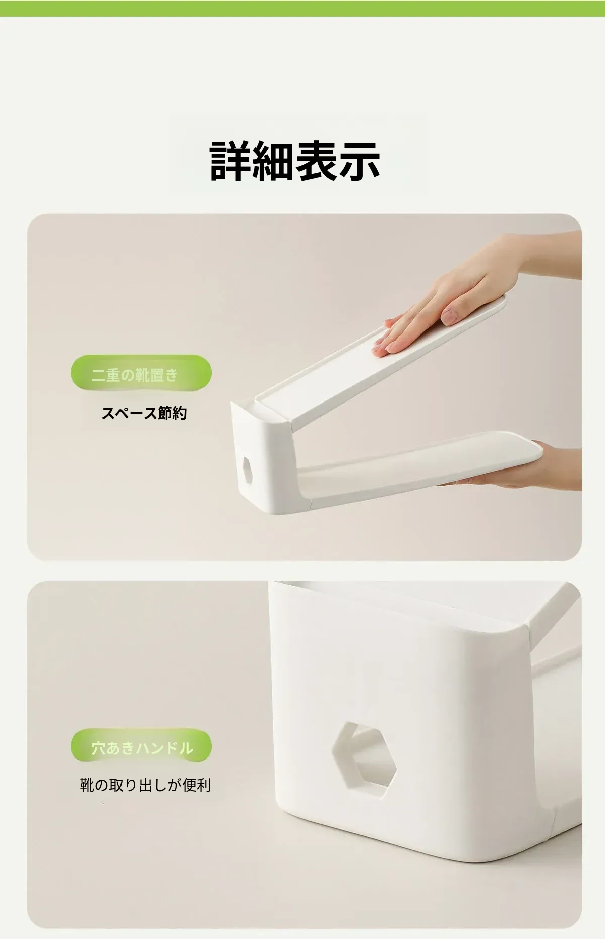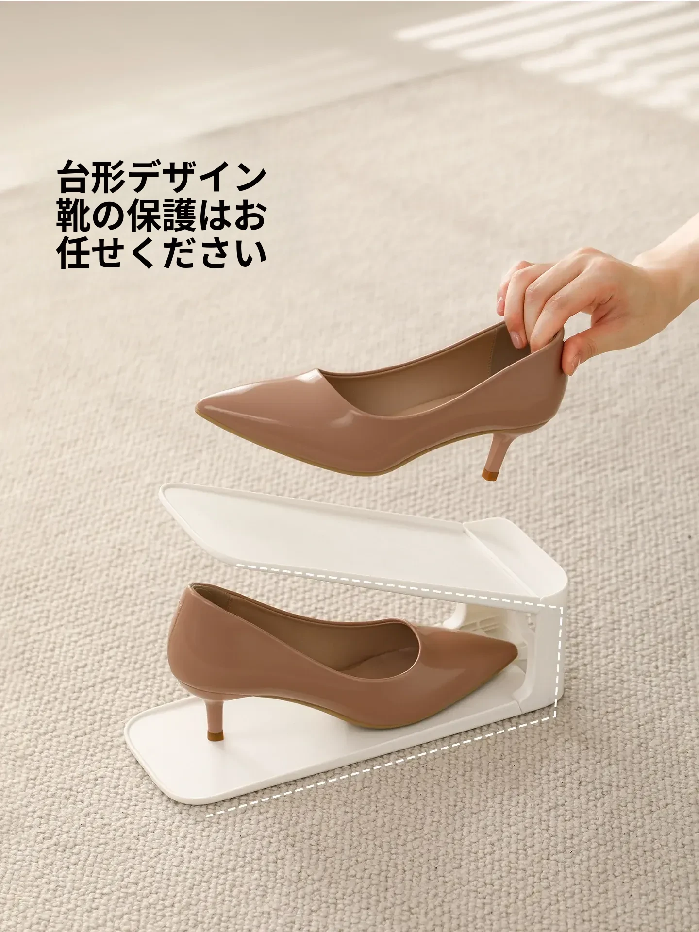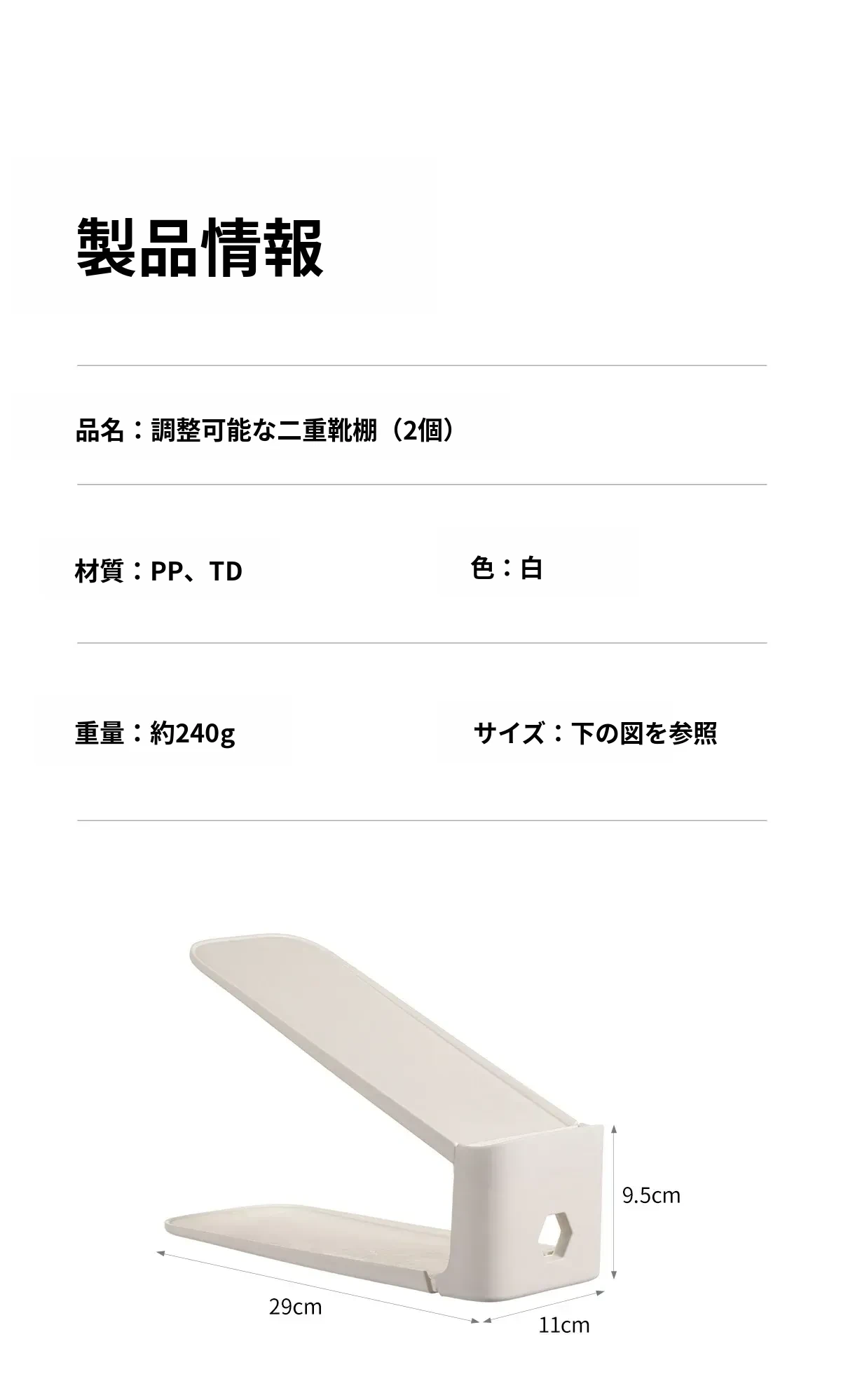 スペース節約!FaSoLa靴収納マジック、調整可能な2段シューラックで靴をスッキリ整理。仕切り板付きで、靴箱内もすっきり!