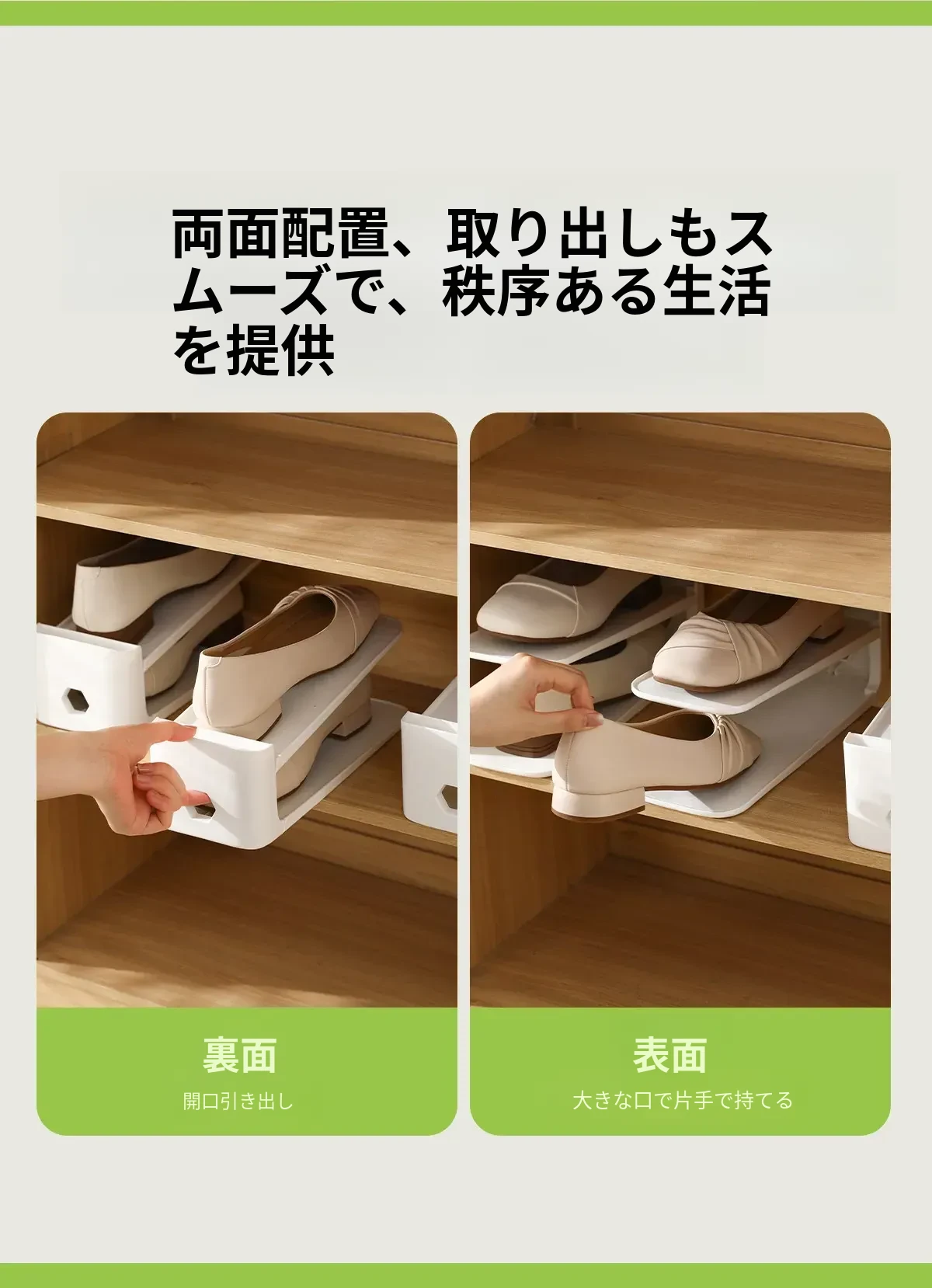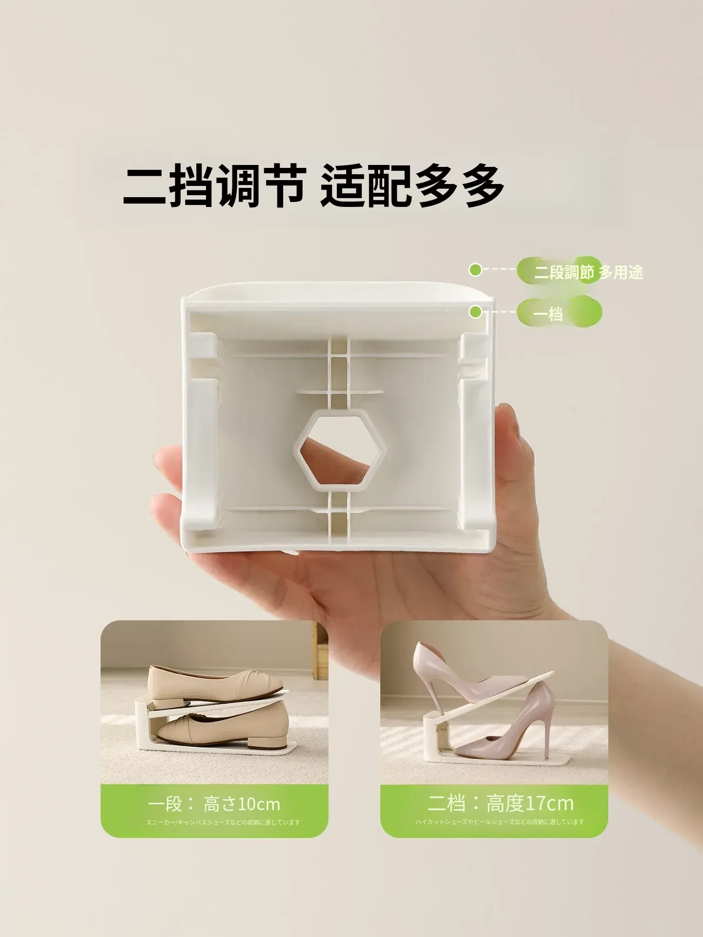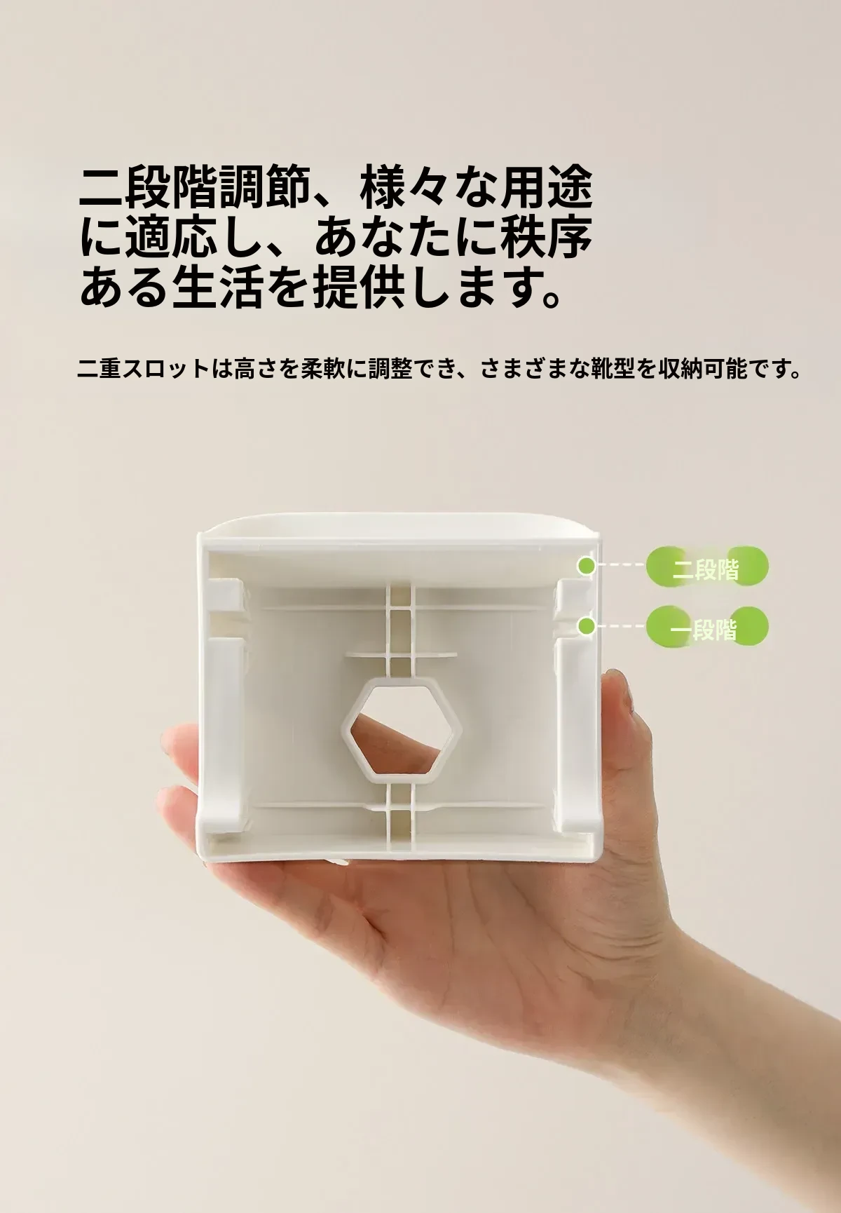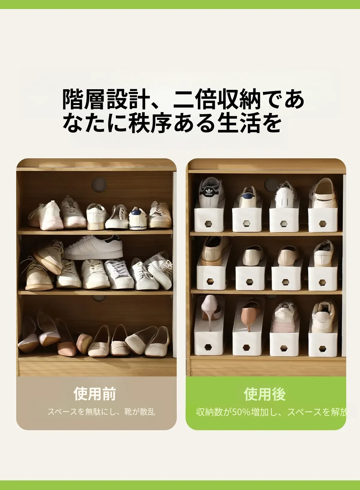 スペース節約!FaSoLa靴収納マジック、調整可能な2段シューラックで靴をスッキリ整理。仕切り板付きで、靴箱内もすっきり!