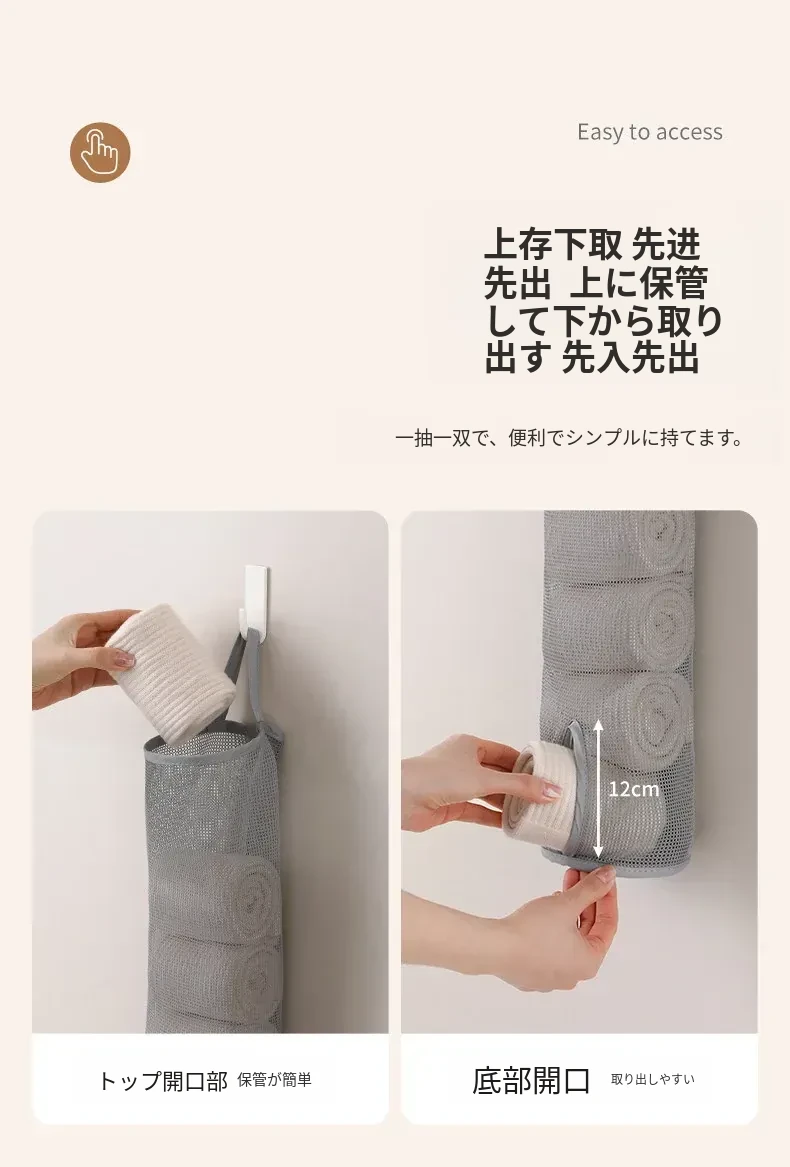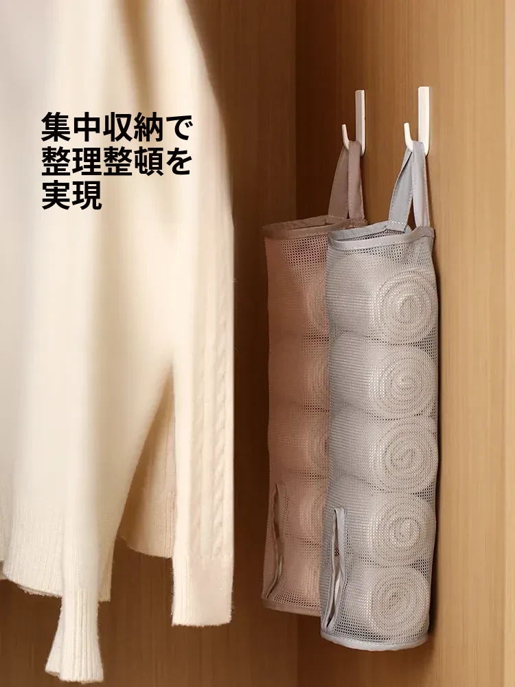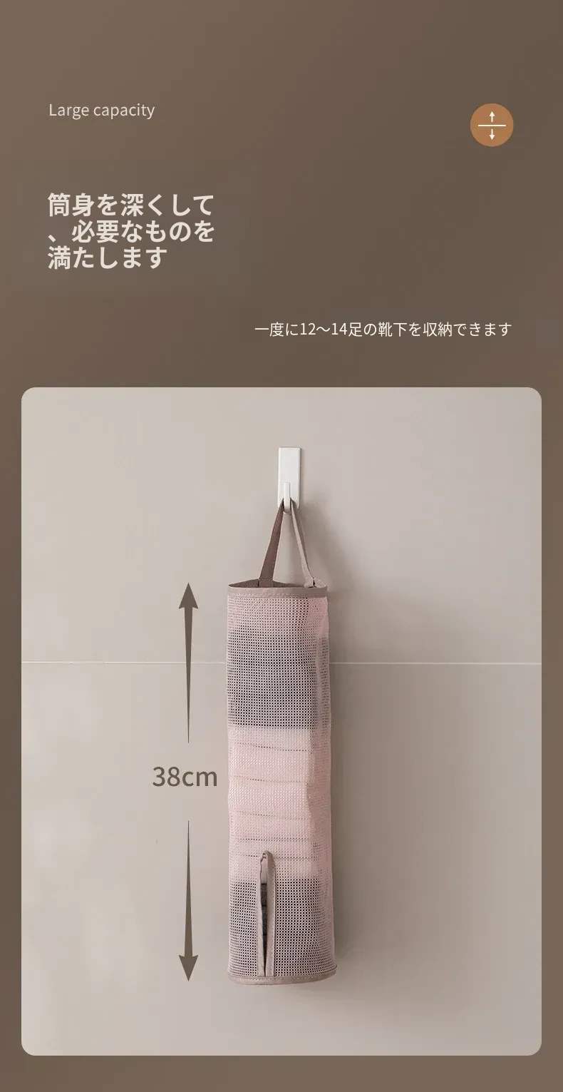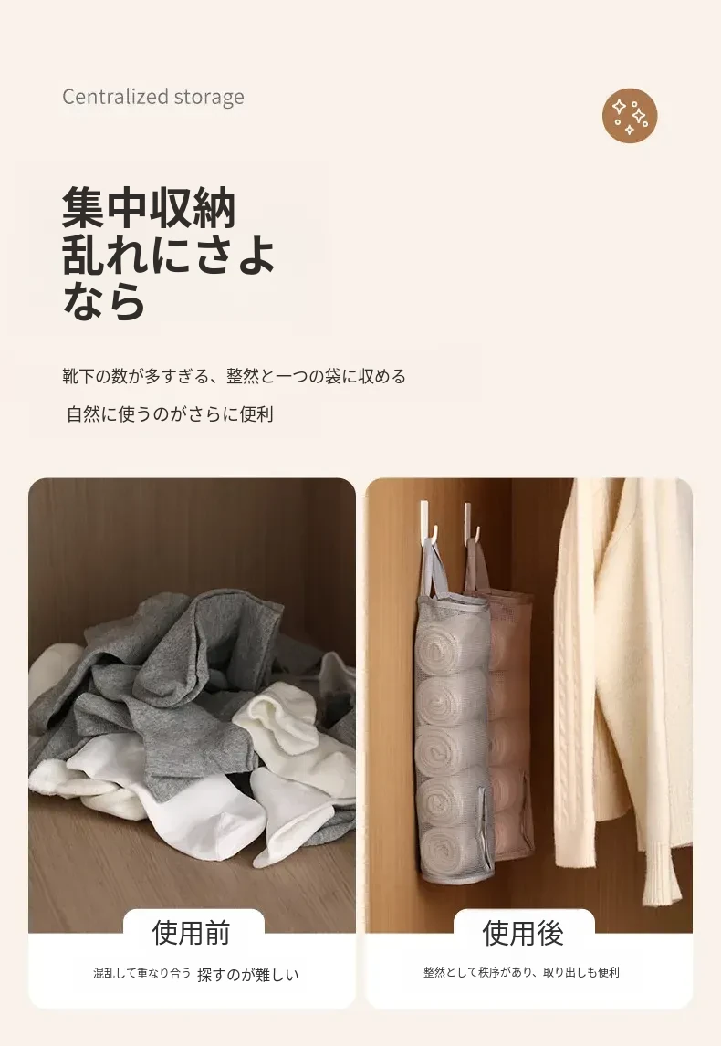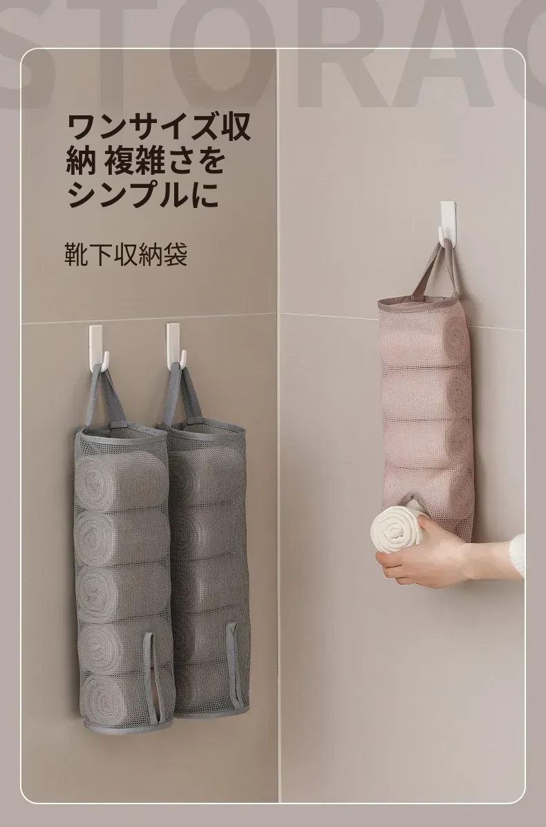 FaSoLaソックス専用収納マジック!寮やクローゼットのスペースを有効活用!吊り下げ式の便利なネットポケットで、ベッドサイドもスッキリ整頓!