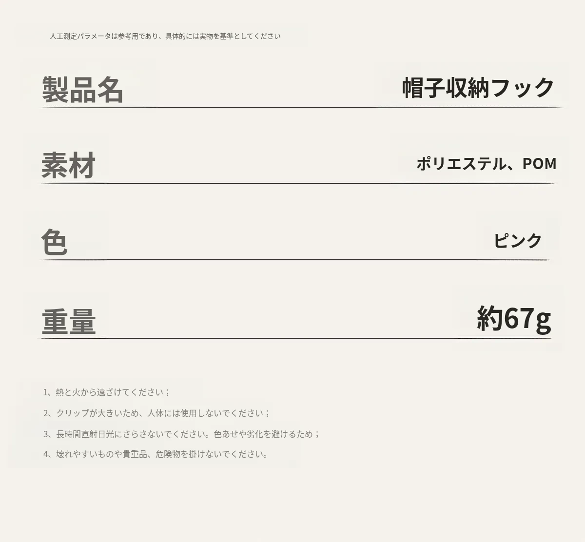 帽子収納フック(ピンク)