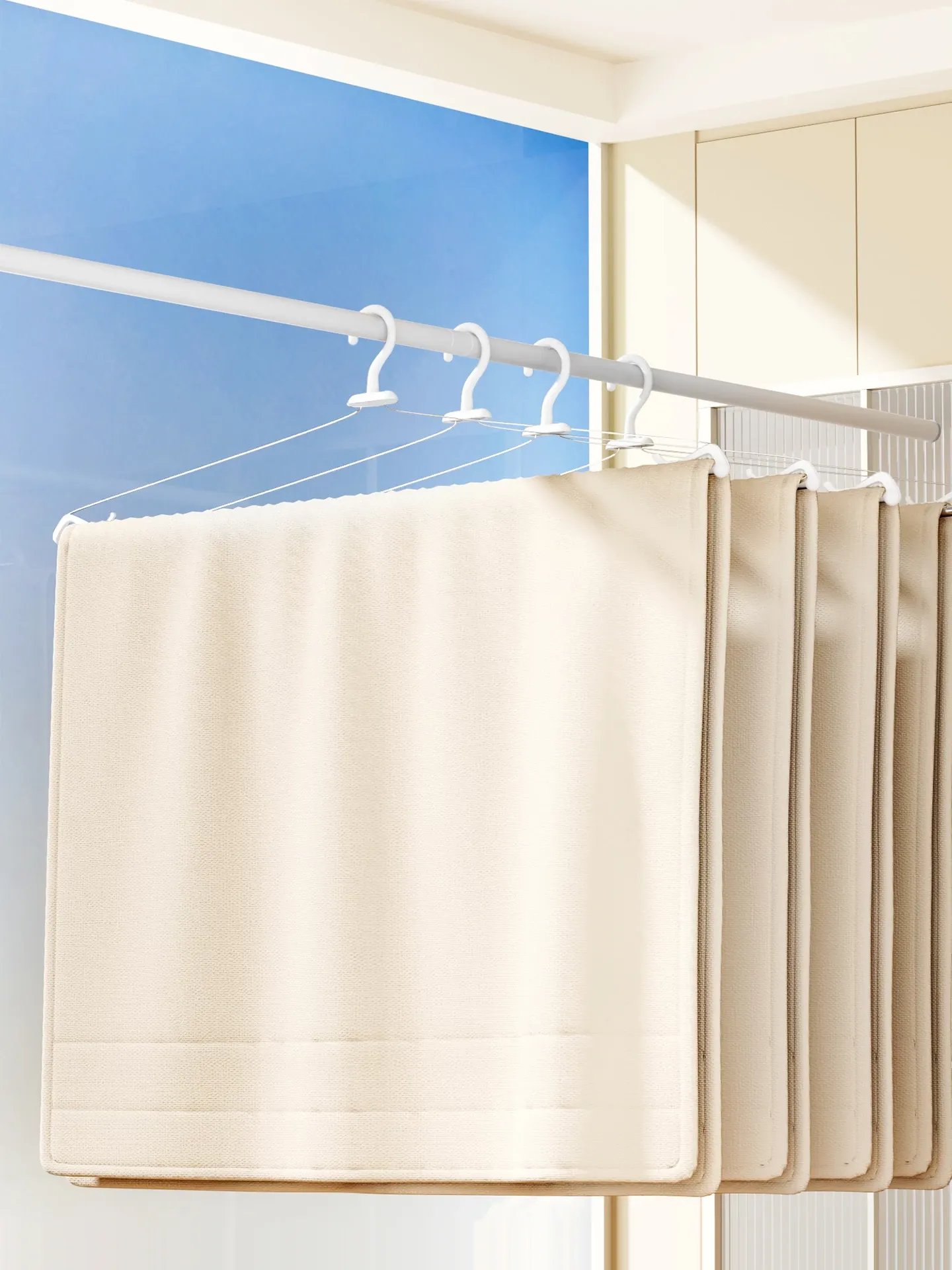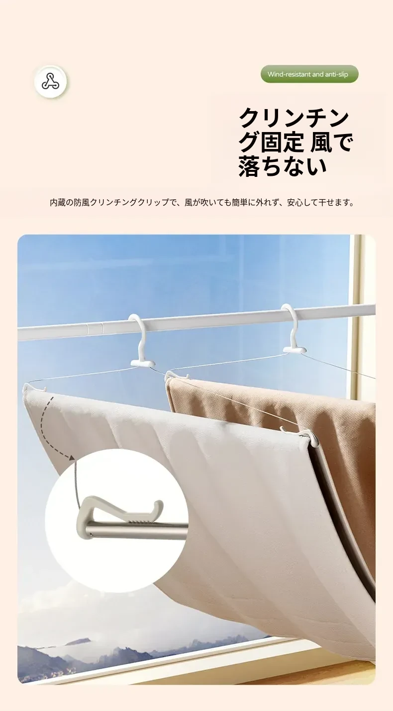 FaSoLa防風折りたたみ式干し架!ステンレス製の丈夫な衣類ハンガーで、布団やシーツ、バスタオルも楽々乾燥!家庭にぴったりの便利アイテムで、風の日でも安心して使用できます。