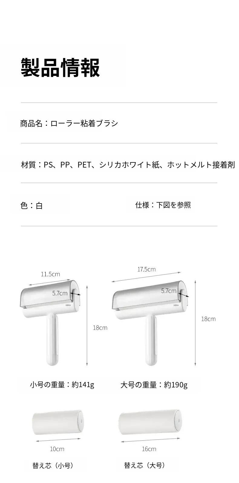 ローラー粘毛ブラシ大サイズ17.5cm(60枚剥がし)
