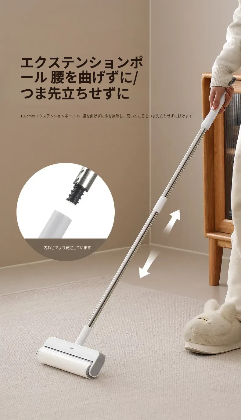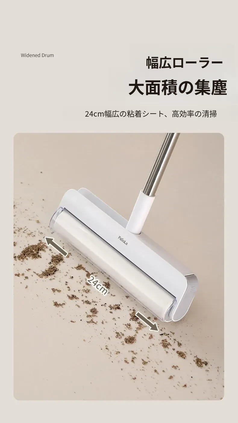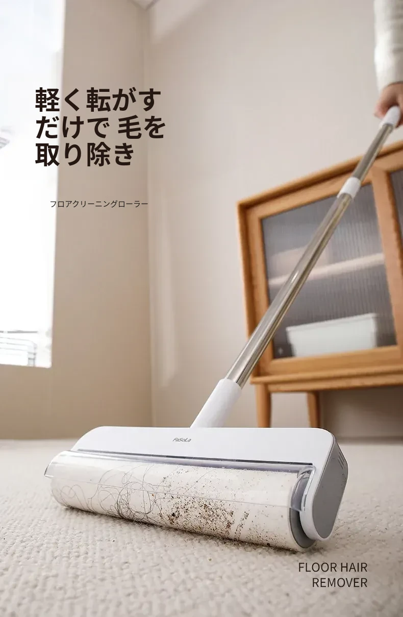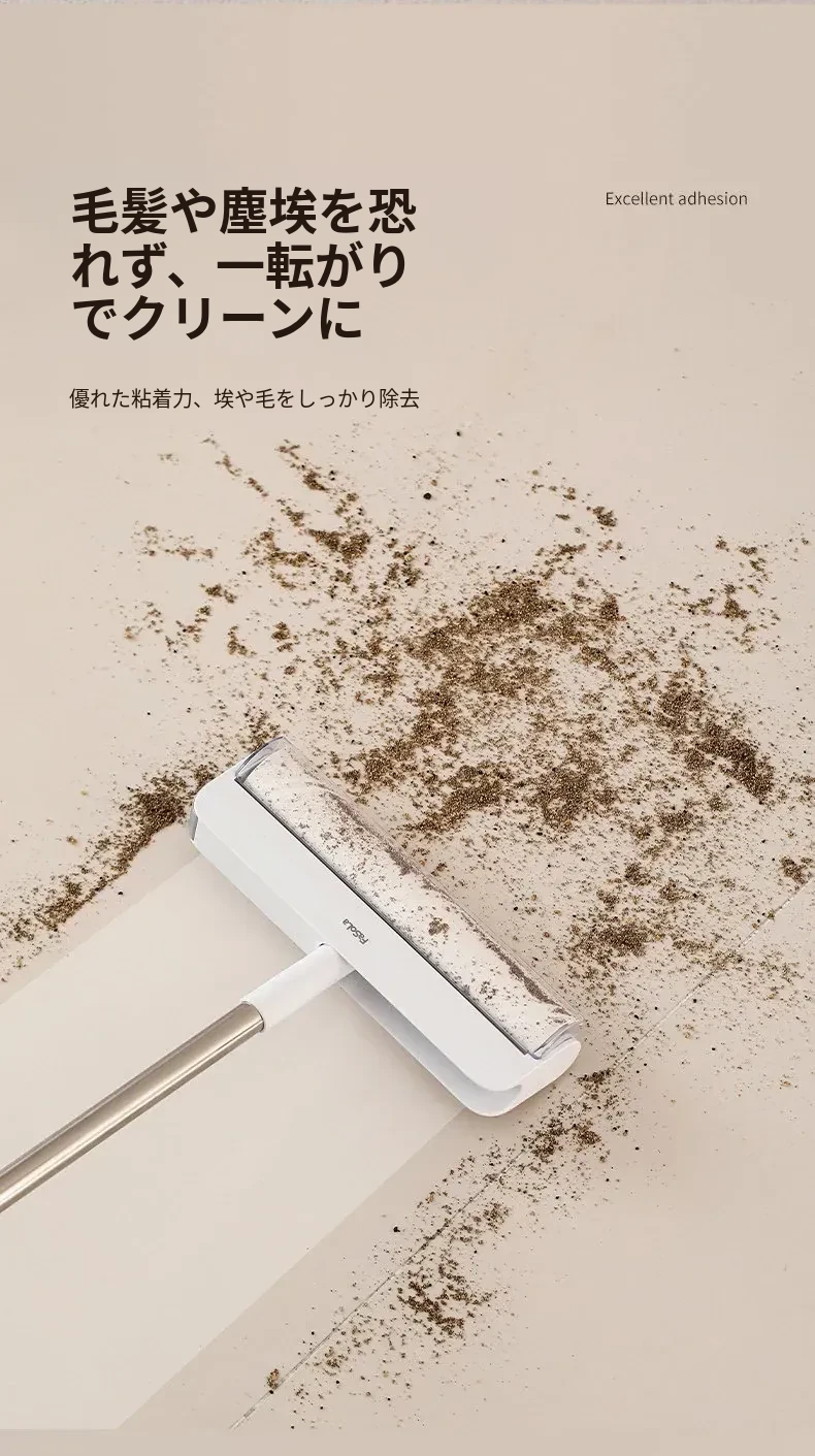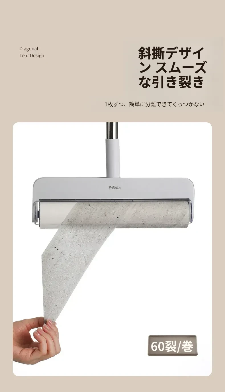 FaSoLa 粘毛器ロール式テープ付き長柄ハウスホールド用、ベッドや床、衣服のホコリや髪の毛を簡単にキャッチ!清潔で快適な生活をサポートします。