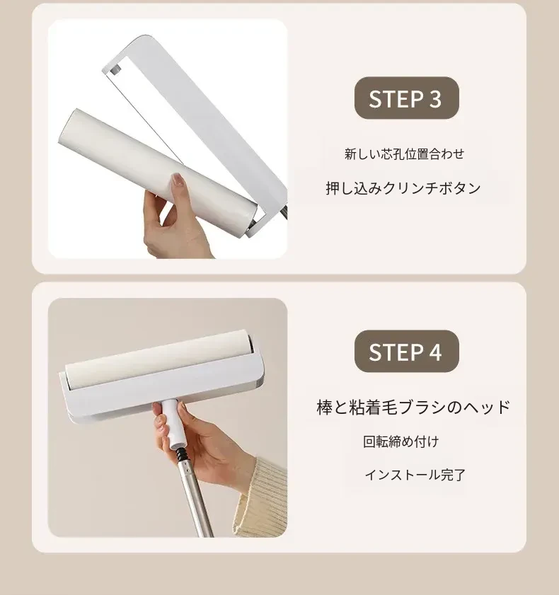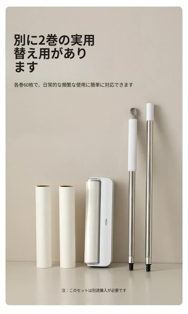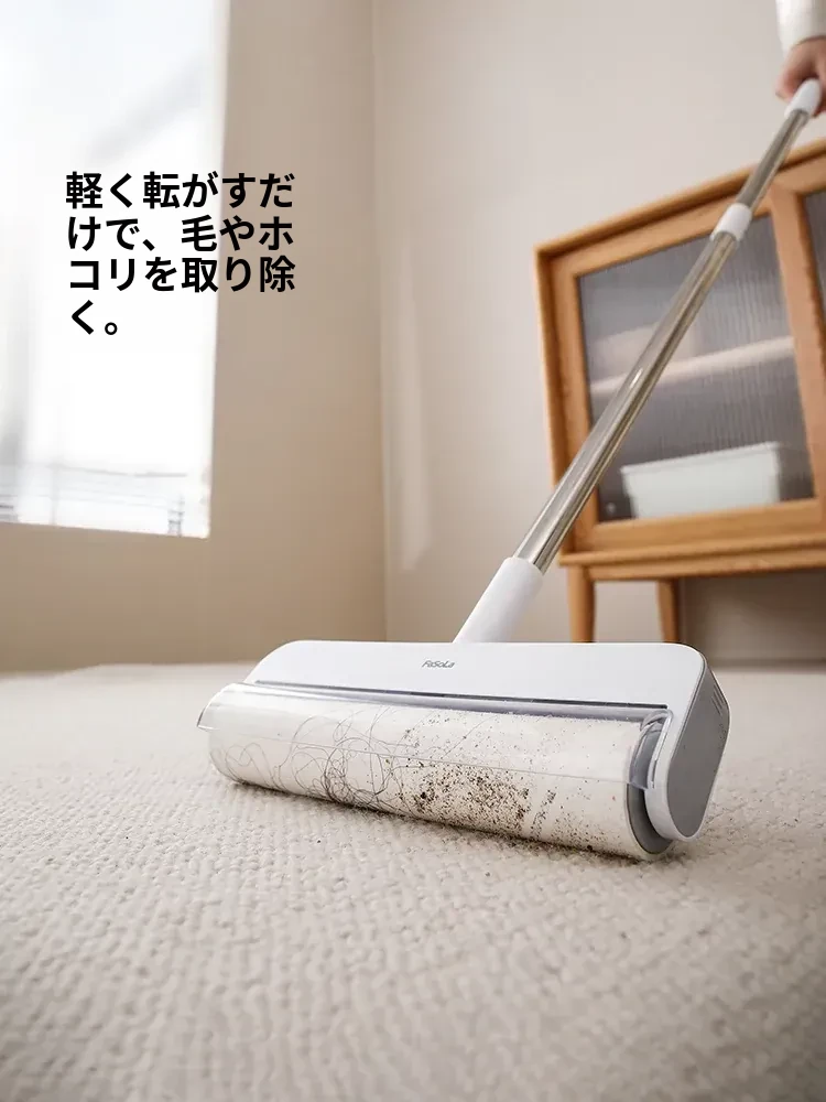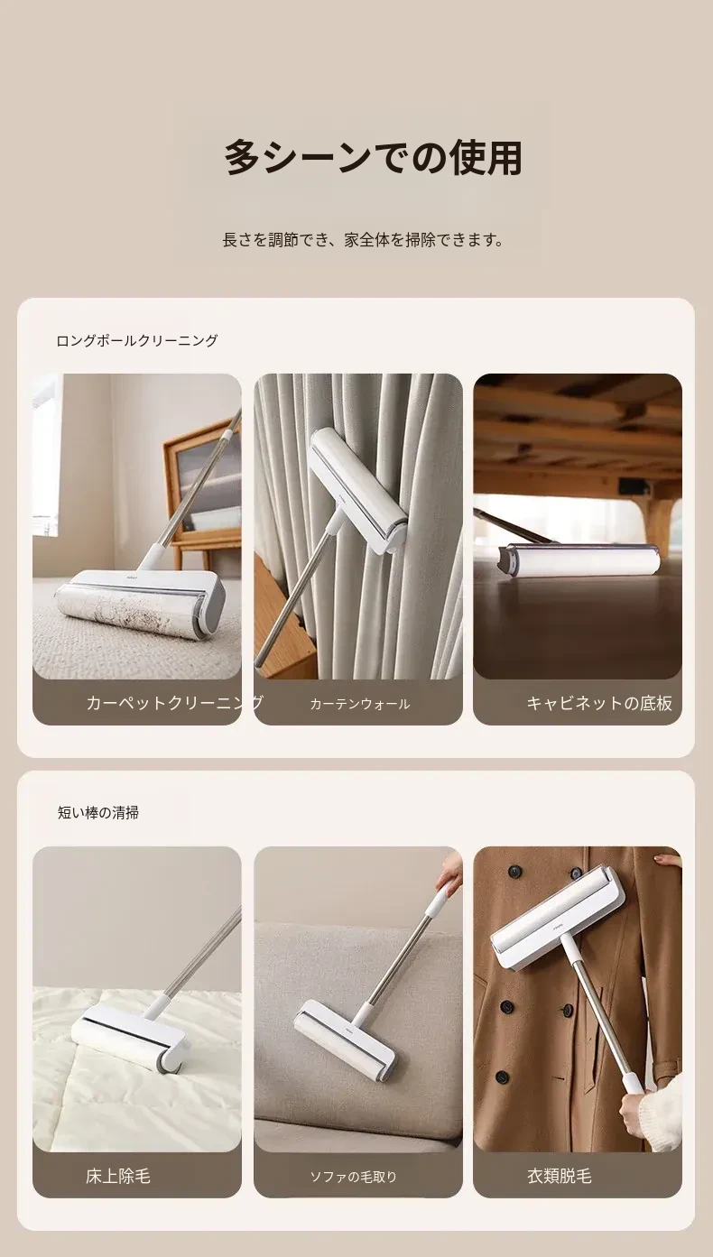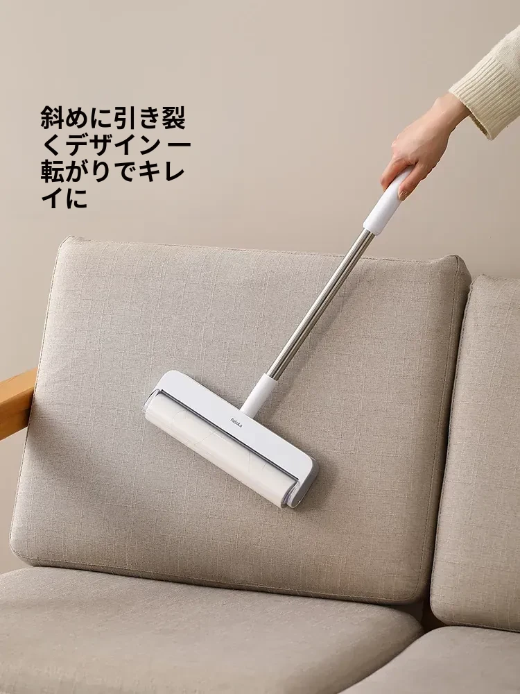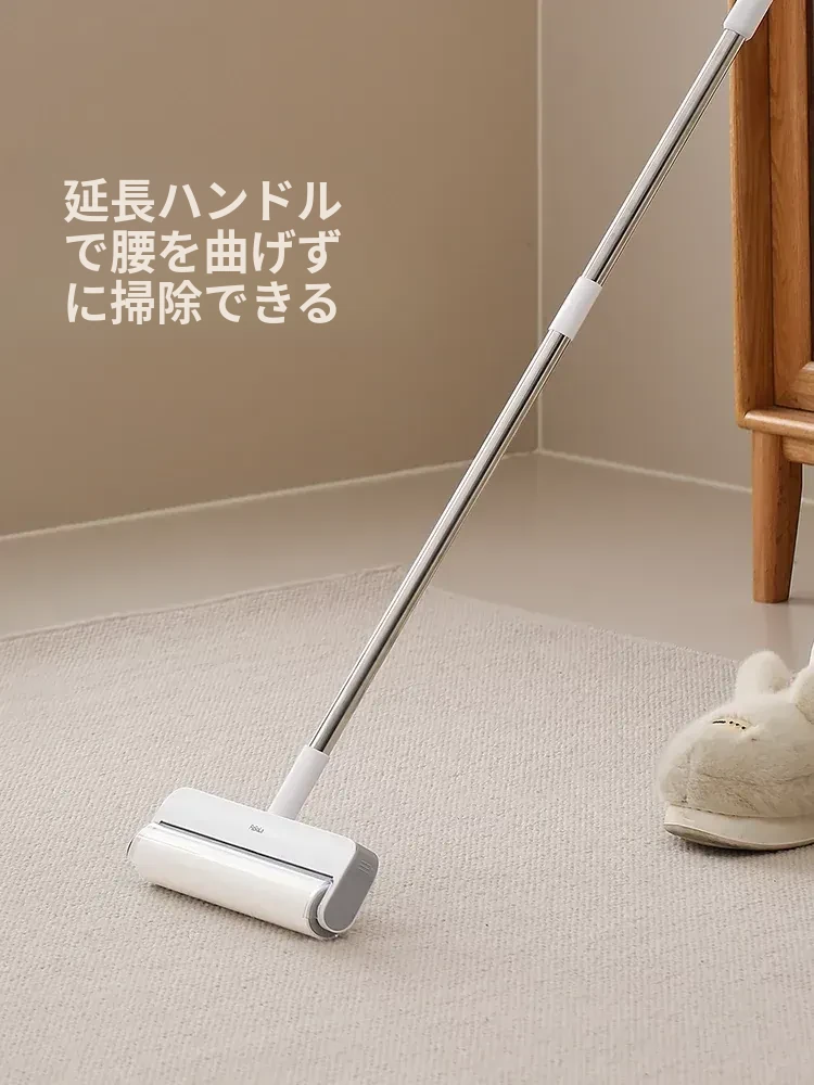 FaSoLa 粘毛器ロール式テープ付き長柄ハウスホールド用、ベッドや床、衣服のホコリや髪の毛を簡単にキャッチ!清潔で快適な生活をサポートします。