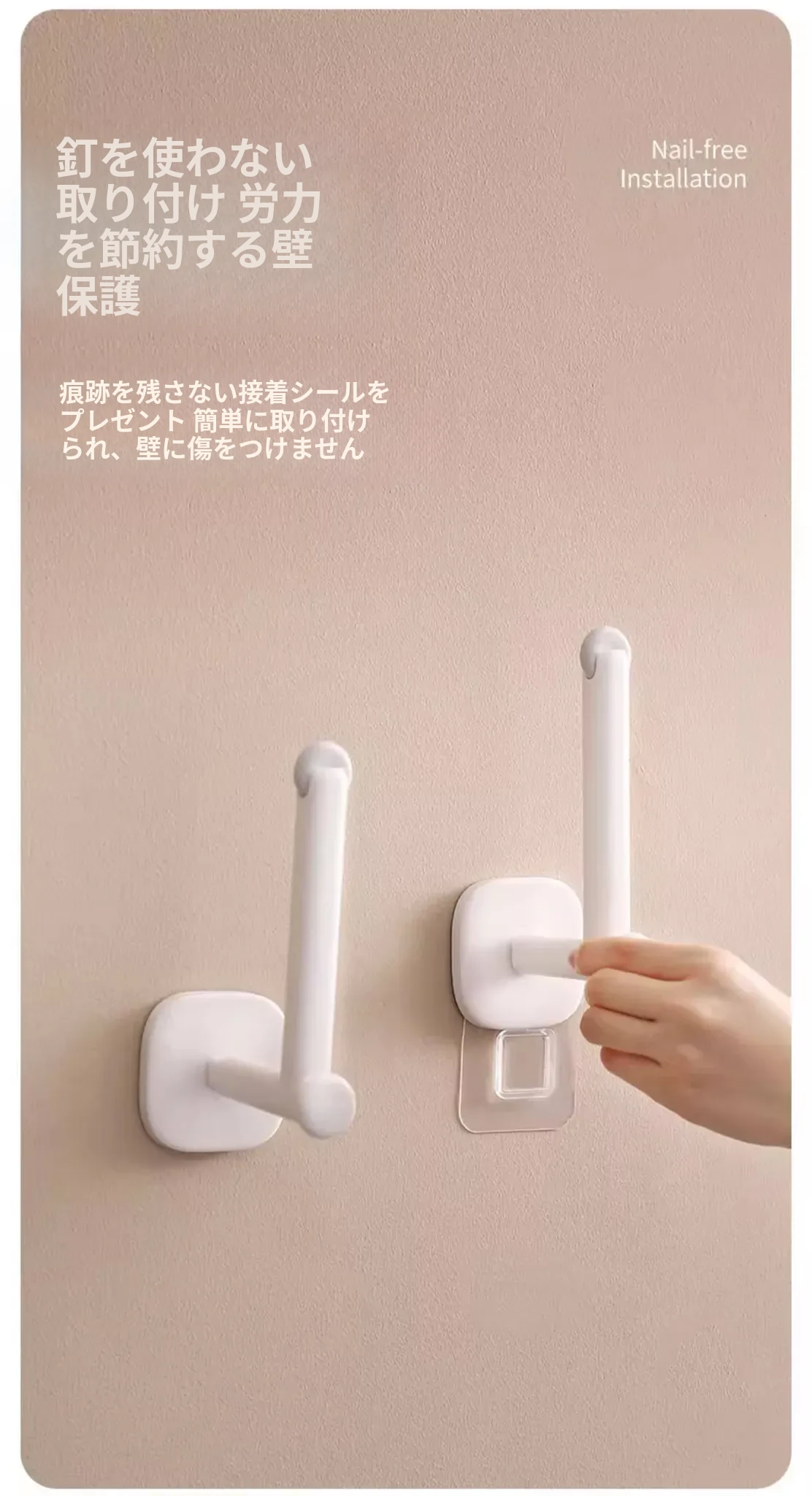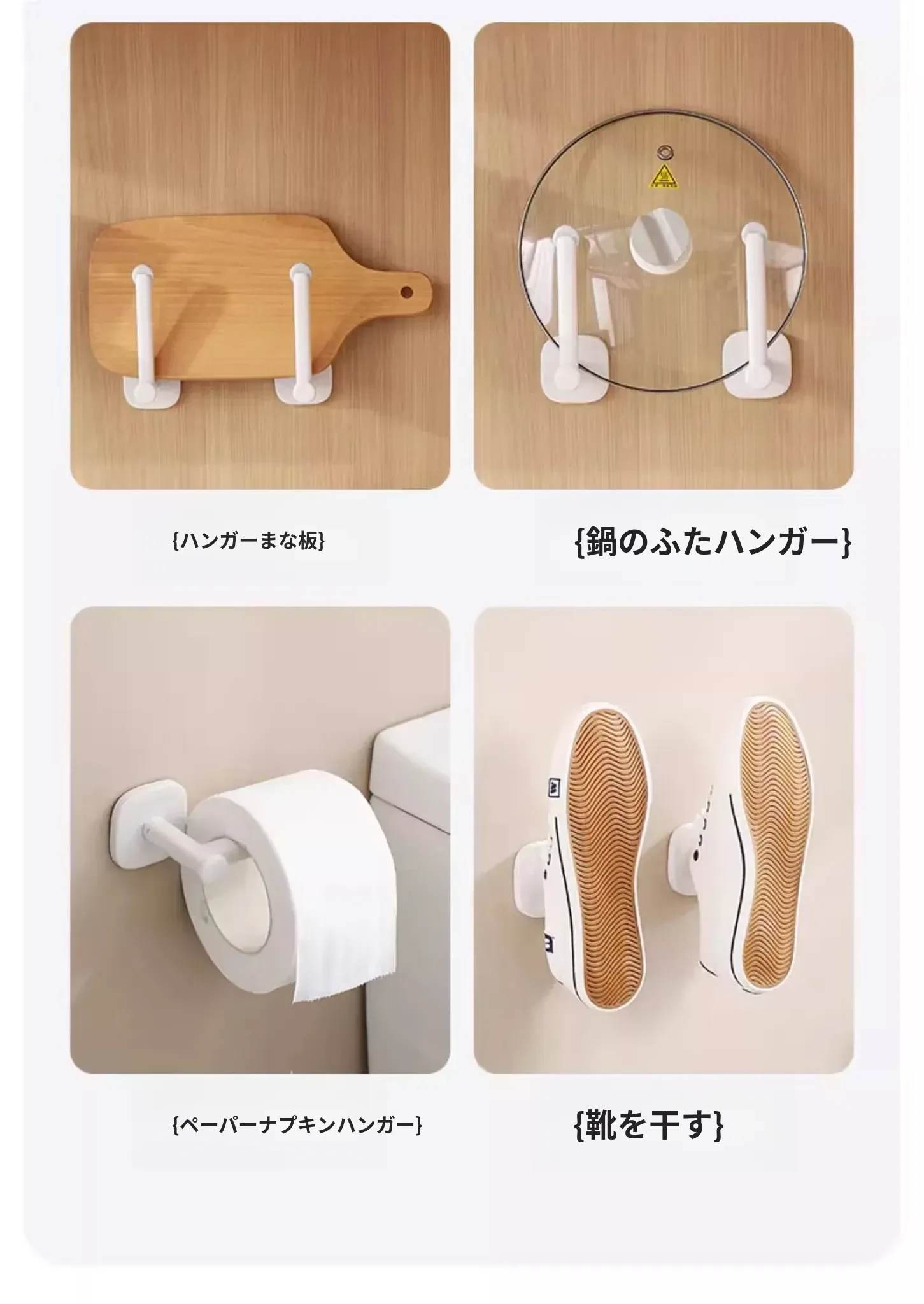FaSoLa強力粘着フック キッチン用穴あけ不要のペーパーホルダー&ヘアゴム収納ラック 鍋ふた壁掛け収納棚でスッキリ整理!
