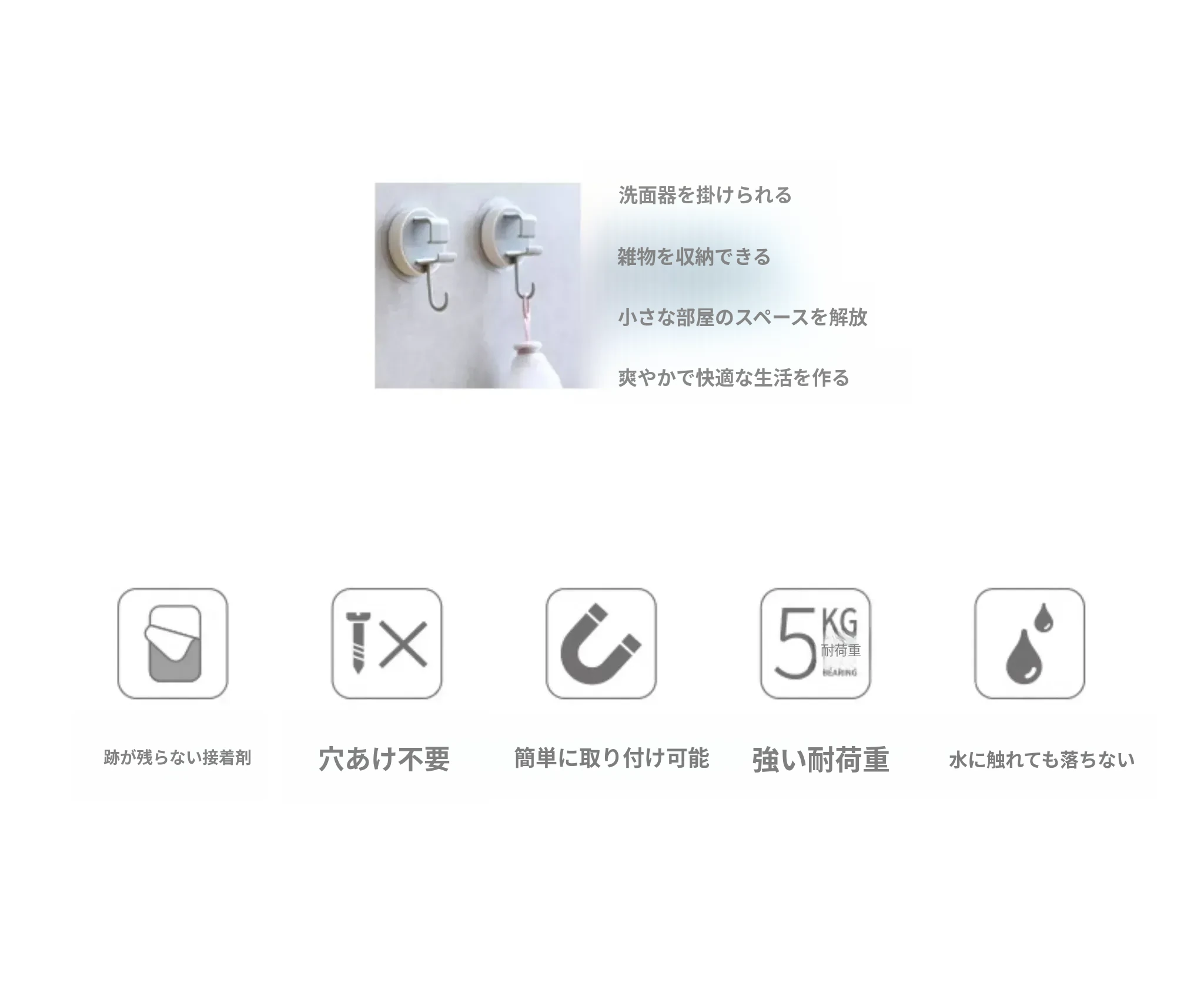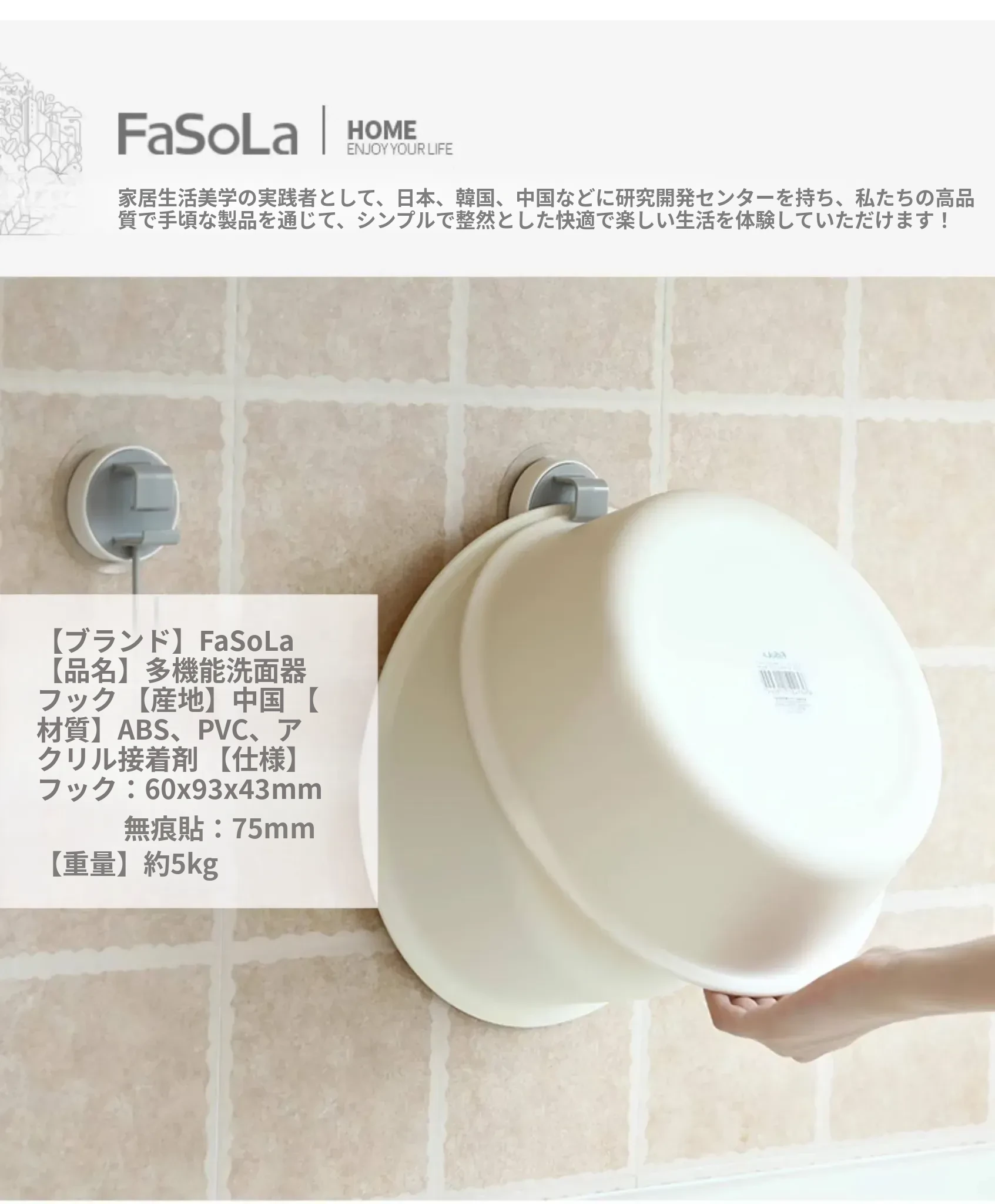FaSoLa強力粘着フック 壁掛け収納ラック ドア裏取り付け不要 キッチン用粘着フック 壁に簡単取り付け フック付きの便利アイテム!整理整頓を手助けする必需品です。