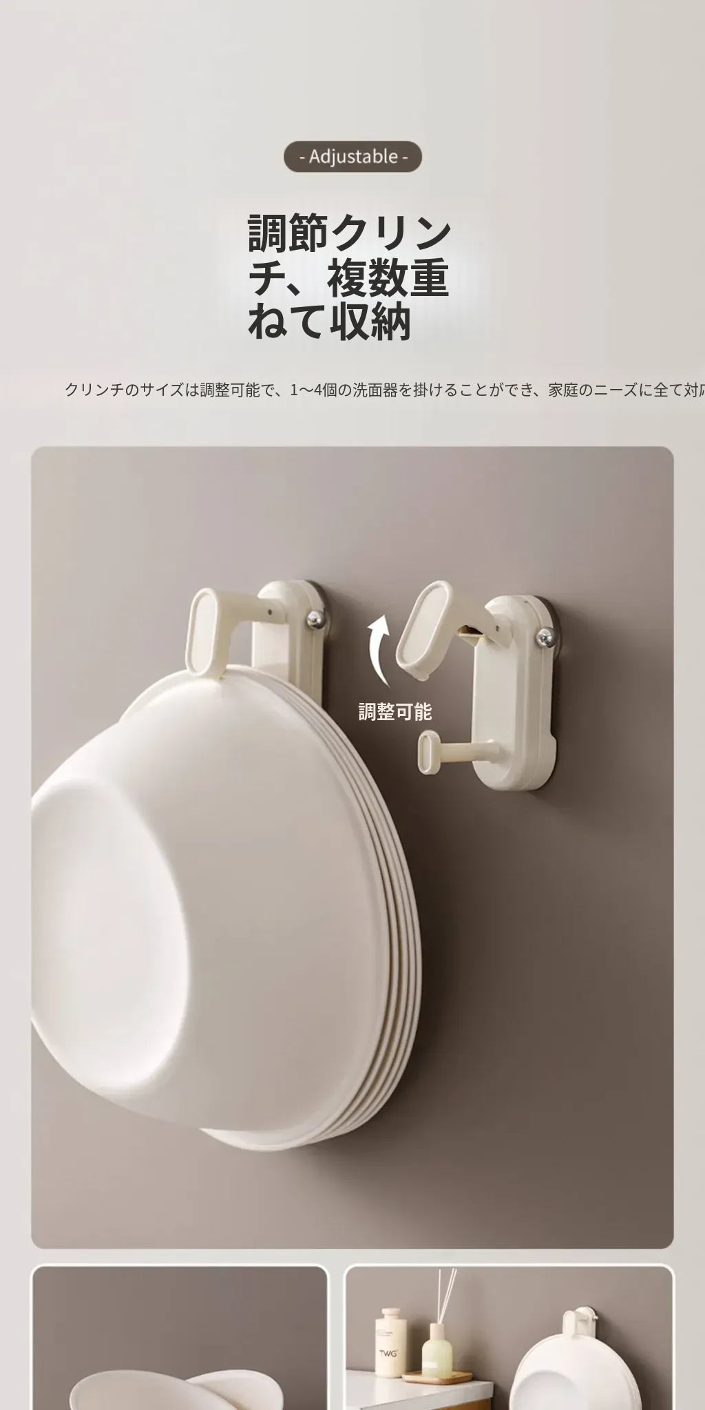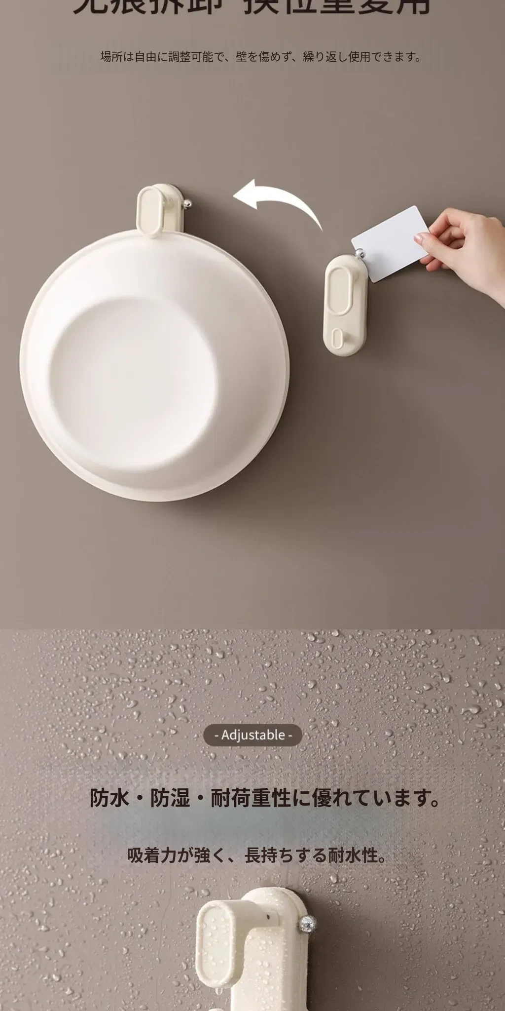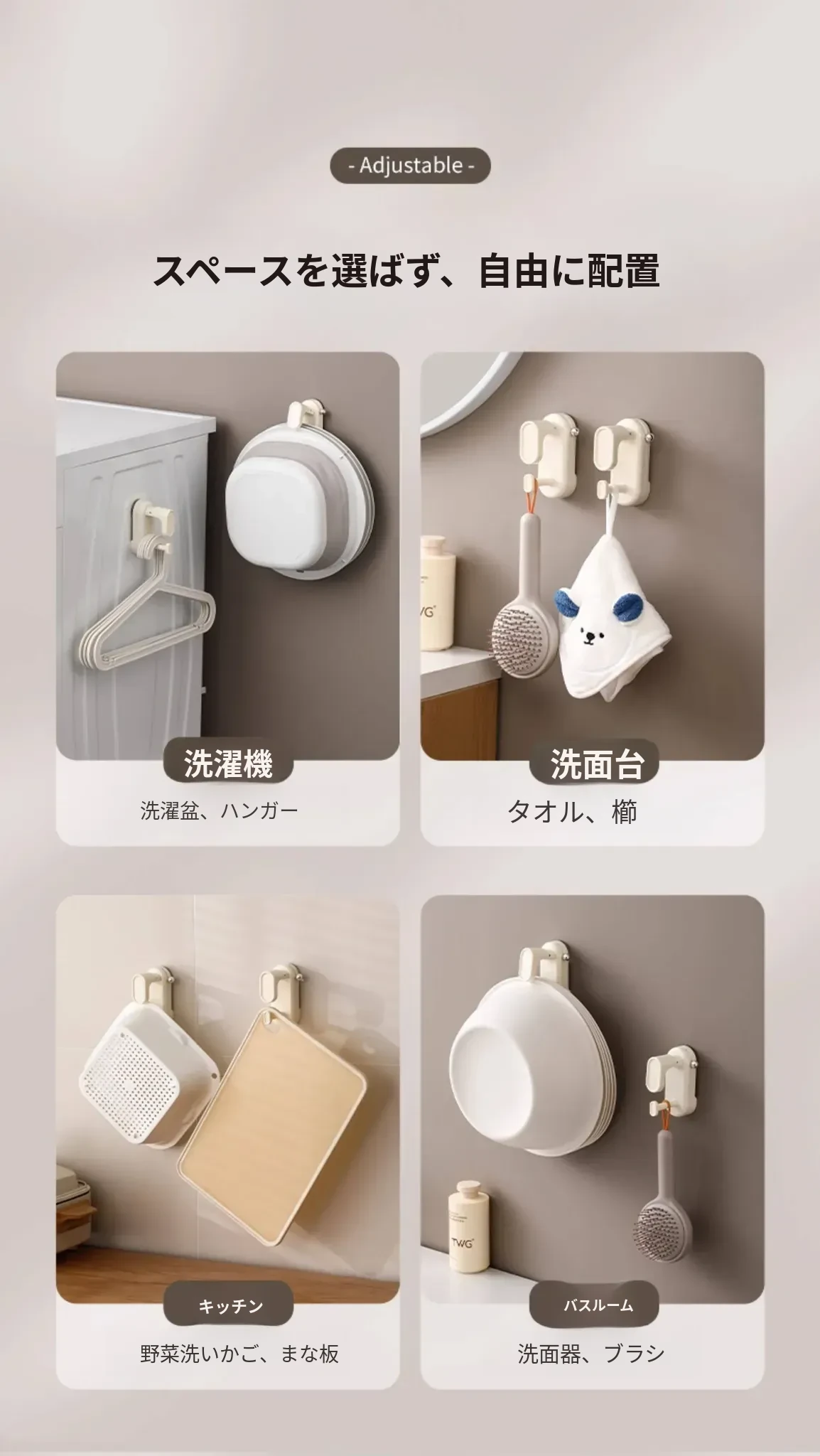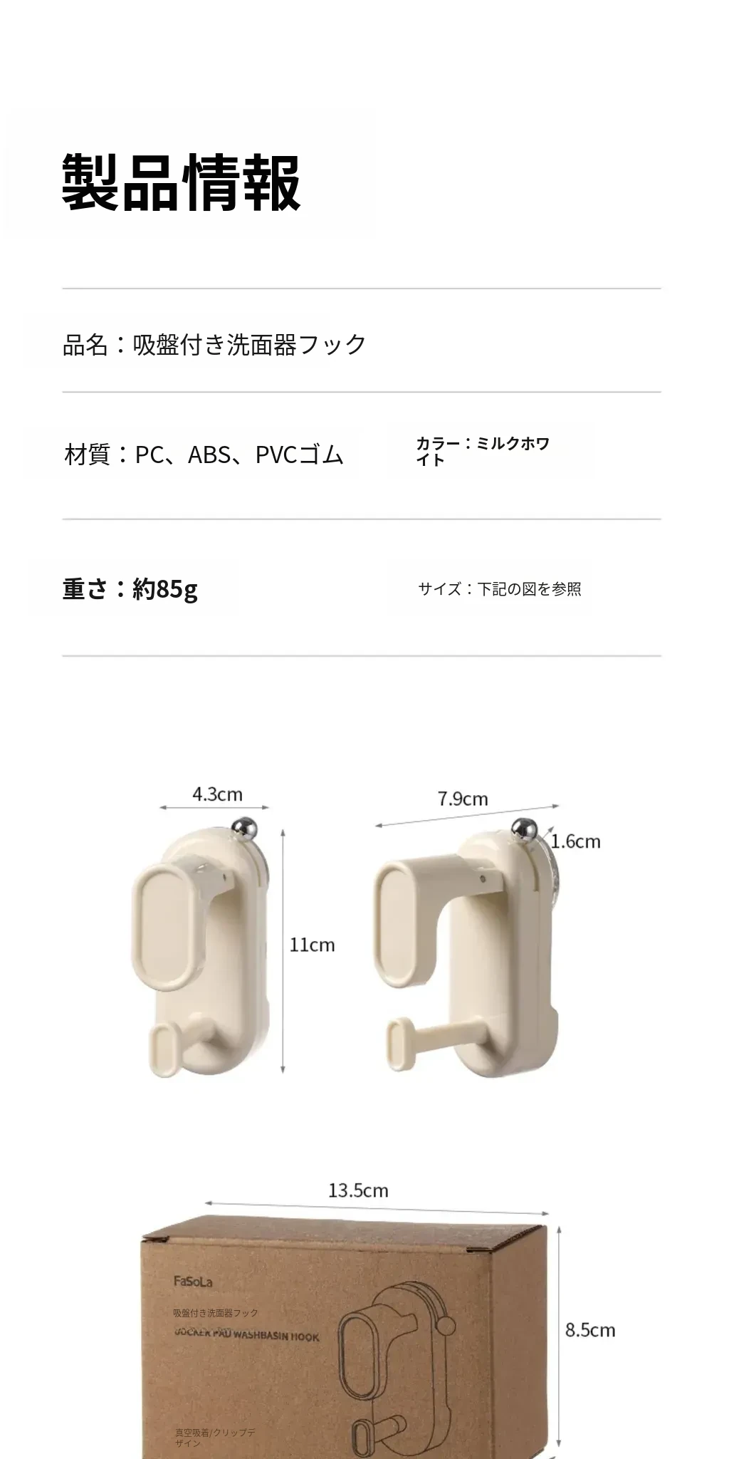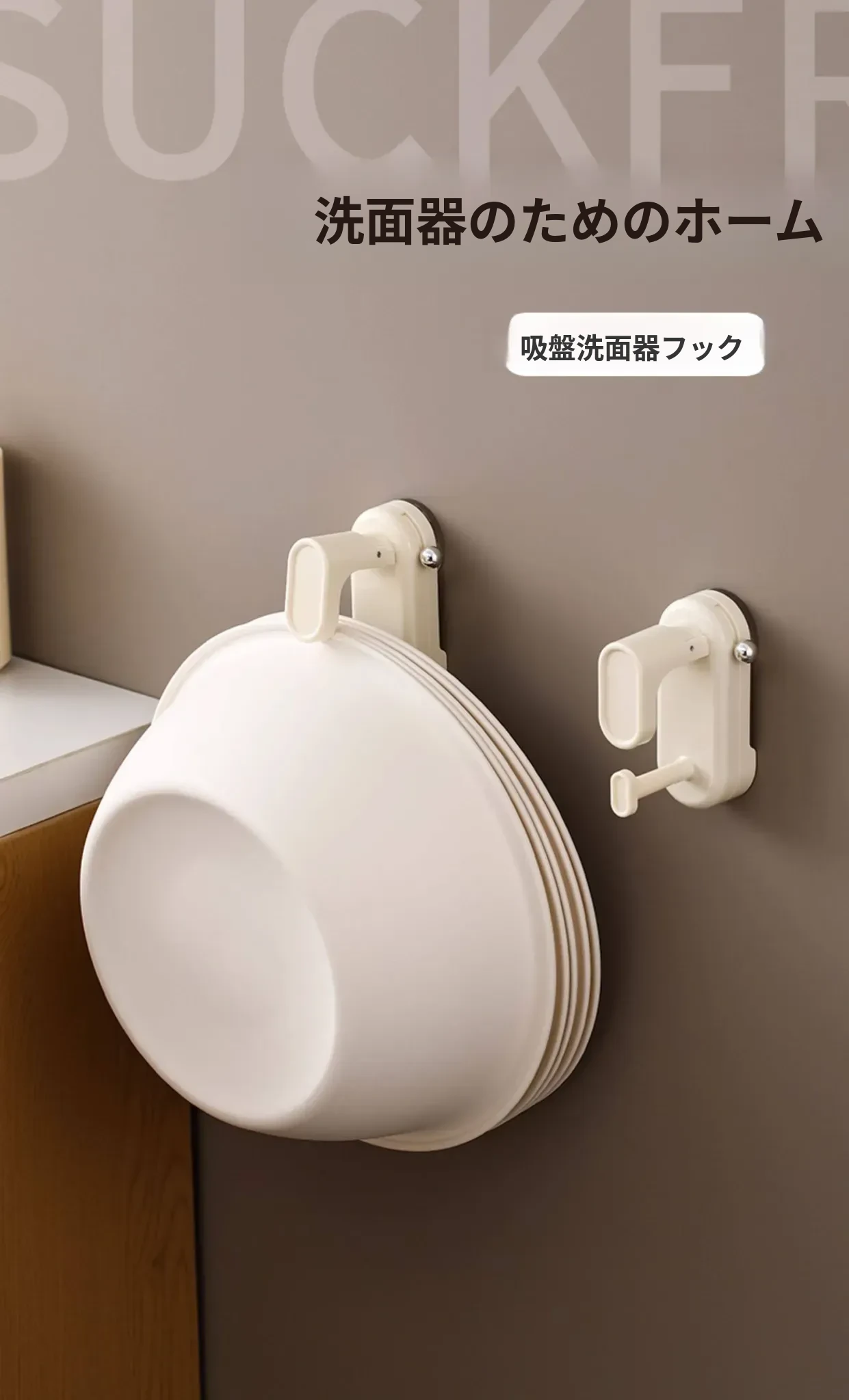 FaSoLa吸盤式洗面器フック - おしゃれなバスルーム収納ラック!穴を開けずに簡単取り付け、浴室をスッキリ整理。洗面器や小物をスマートに収納して、快適なバスタイムを実現!