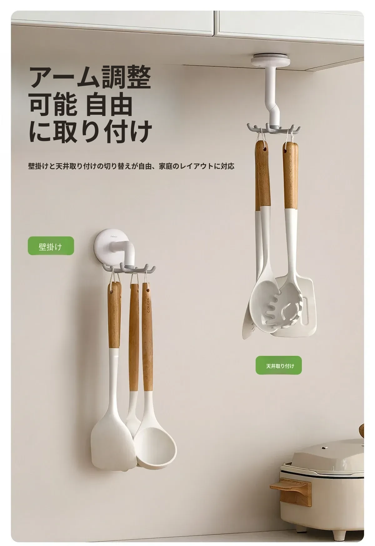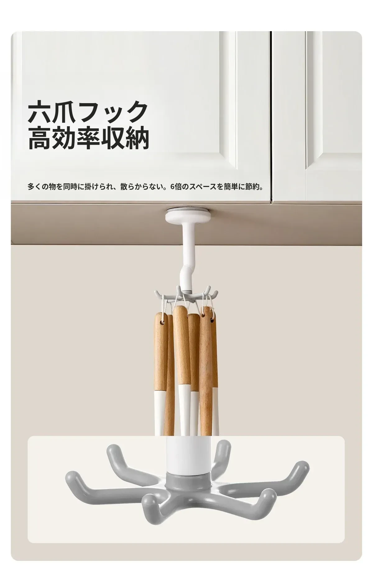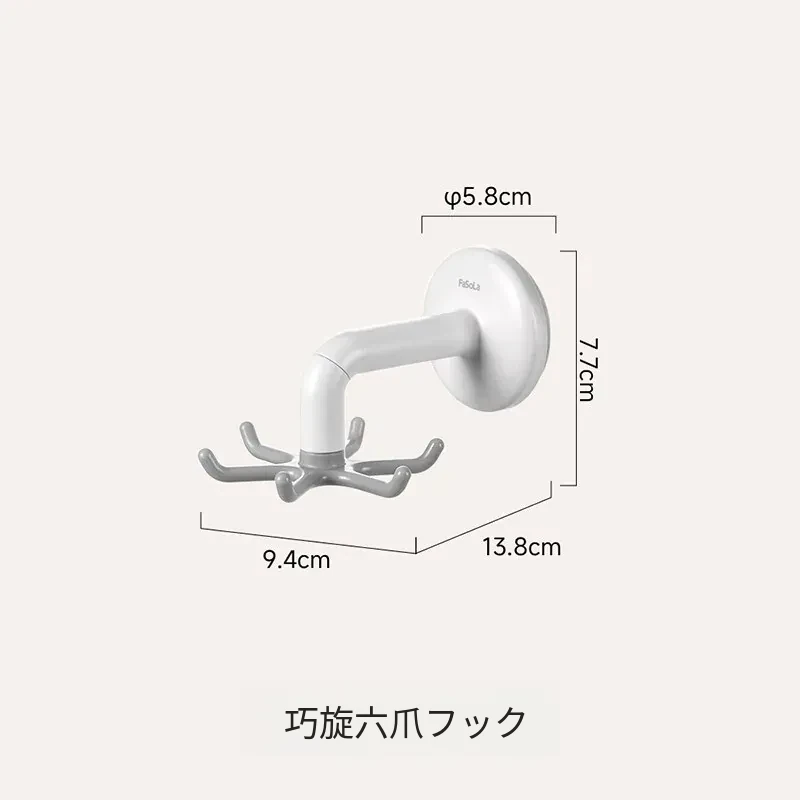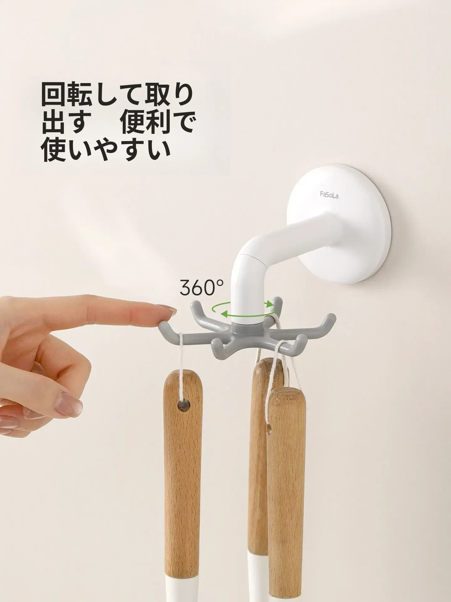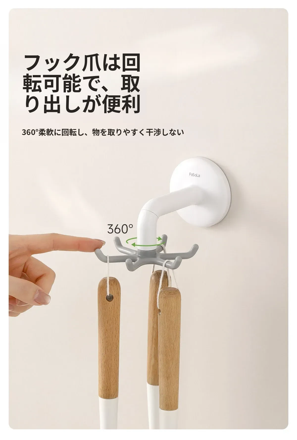 FaSoLa吸盤キッチンフック 六爪回転式 壁掛け用 スプーンやヘラも収納できる 両面テープ不要の便利なキッチンツールハンガー