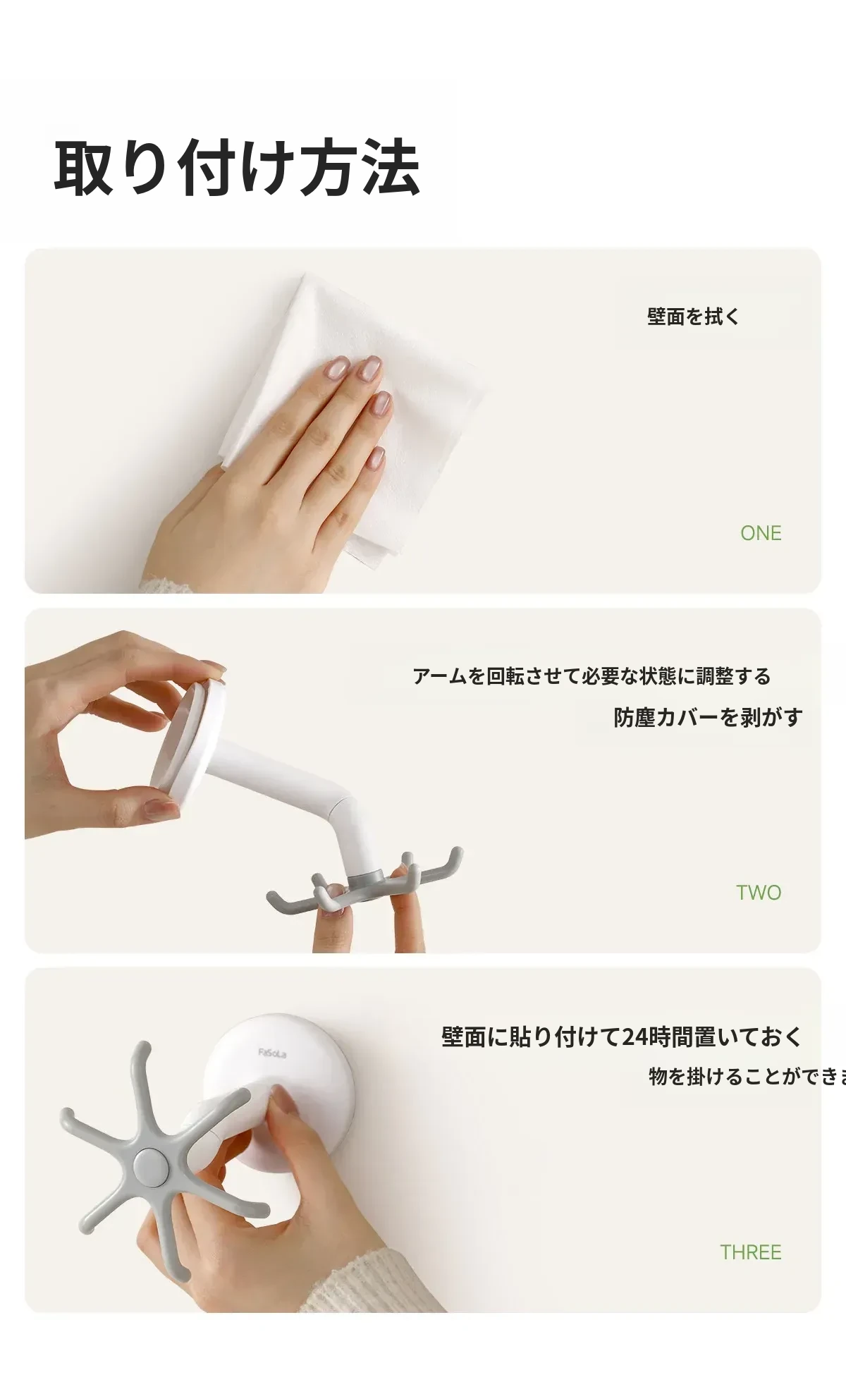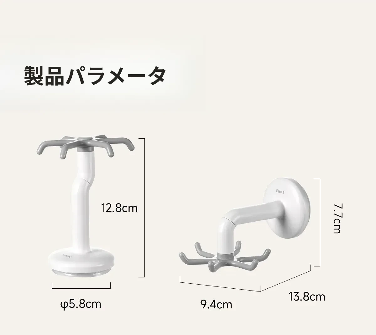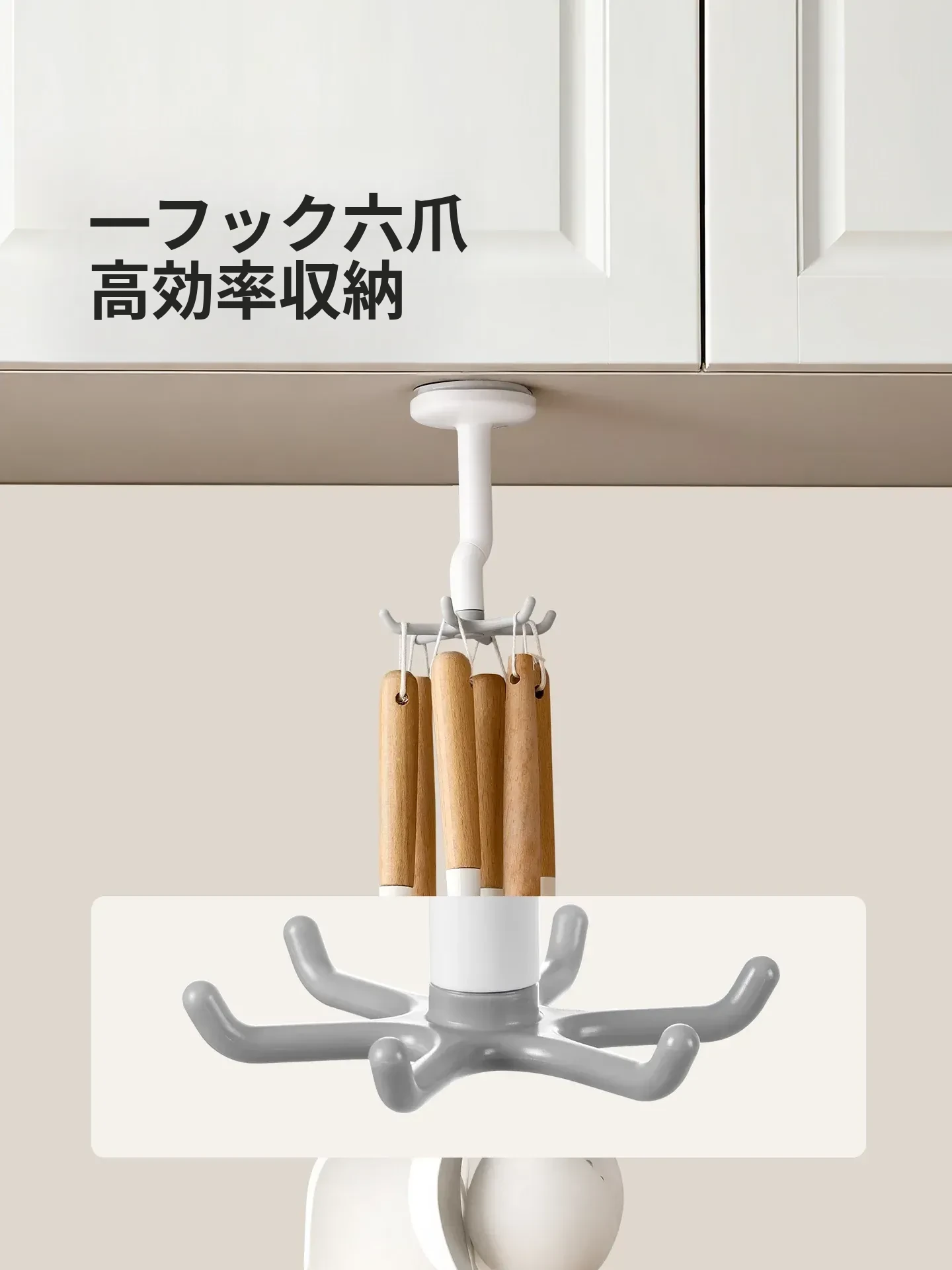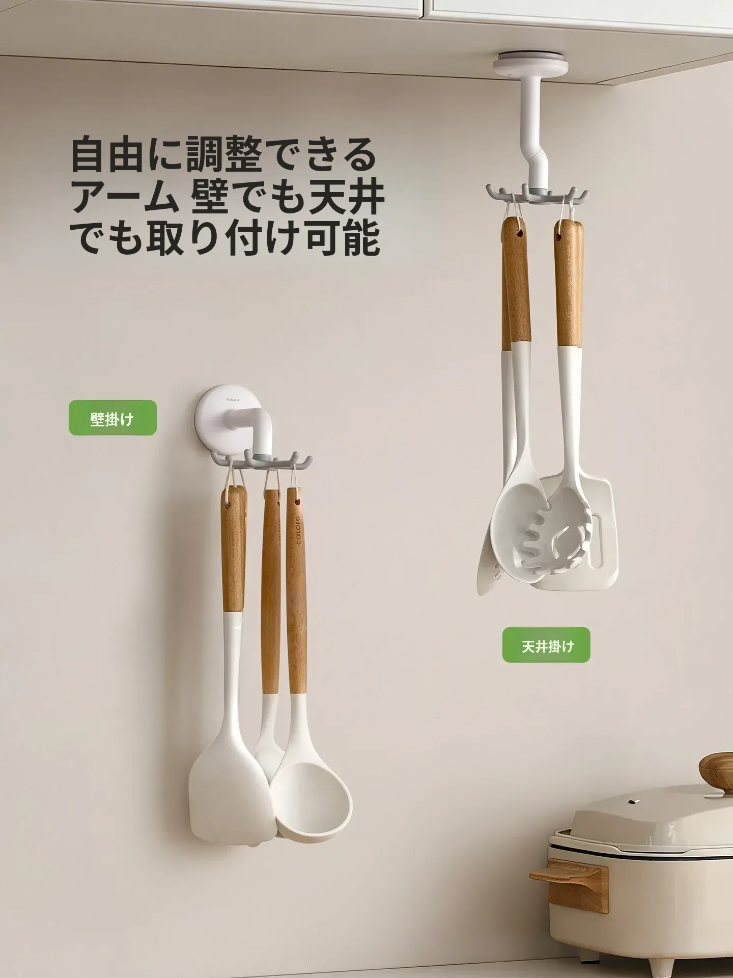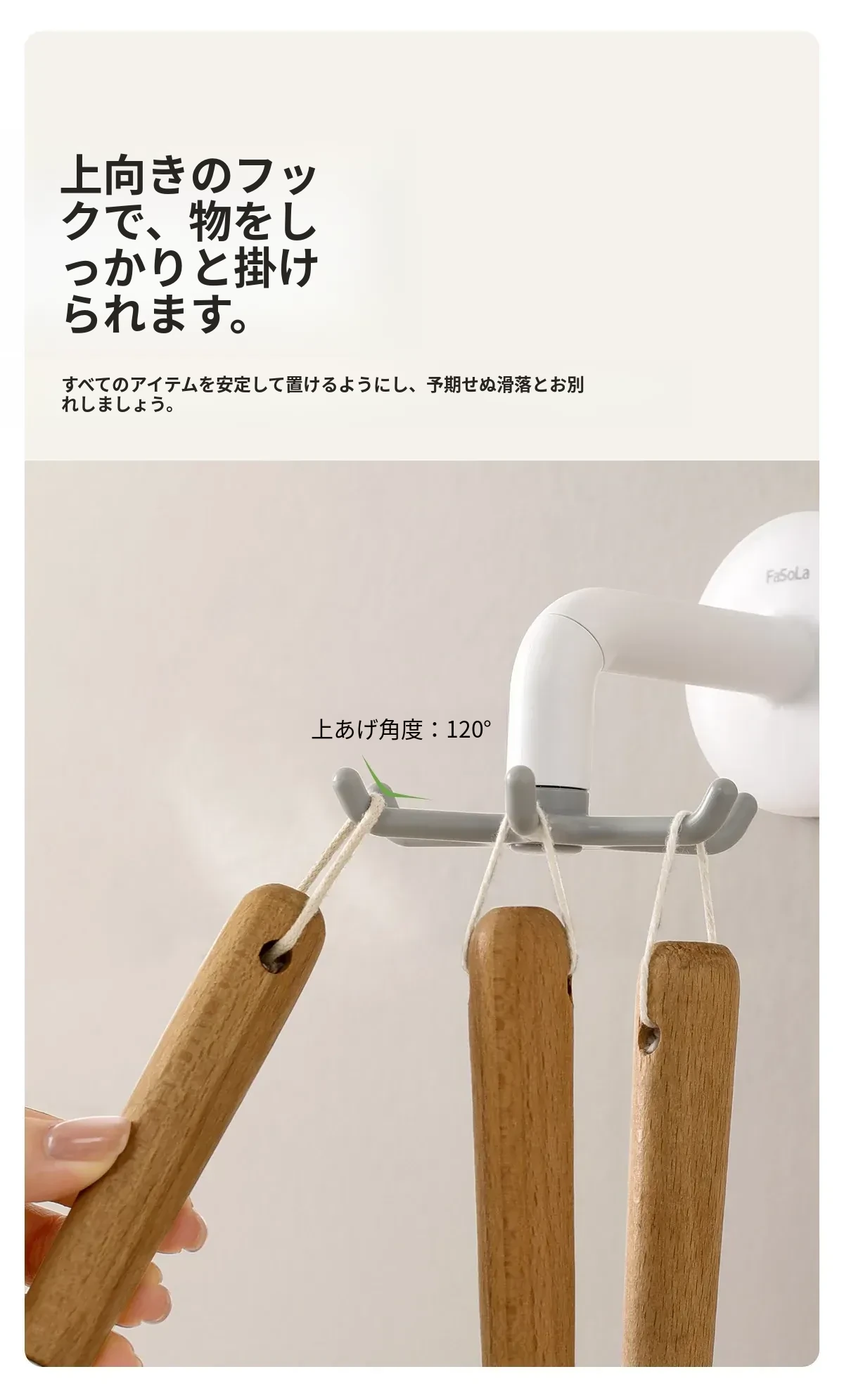FaSoLa吸盤キッチンフック 六爪回転式 壁掛け用 スプーンやヘラも収納できる 両面テープ不要の便利なキッチンツールハンガー