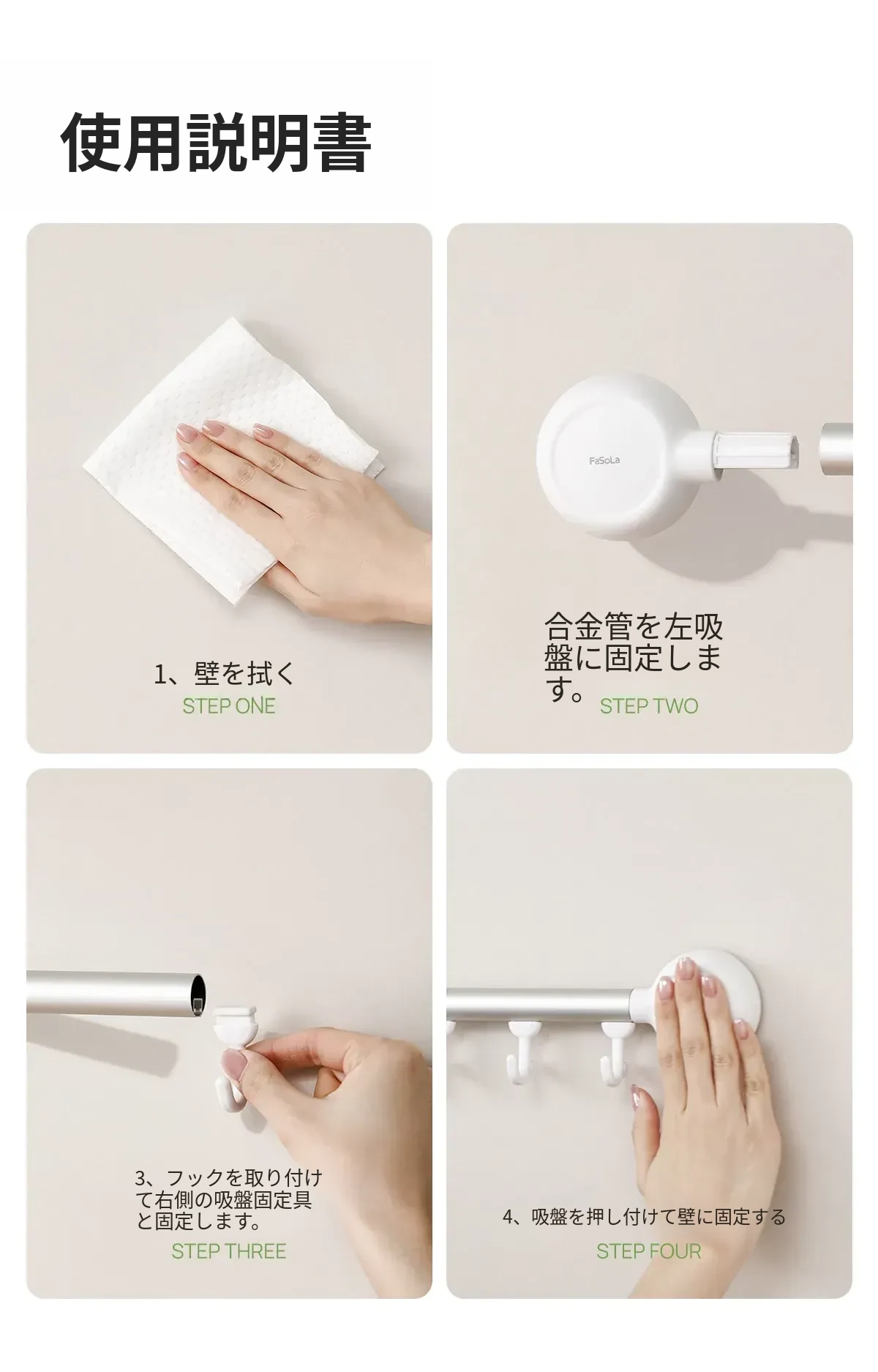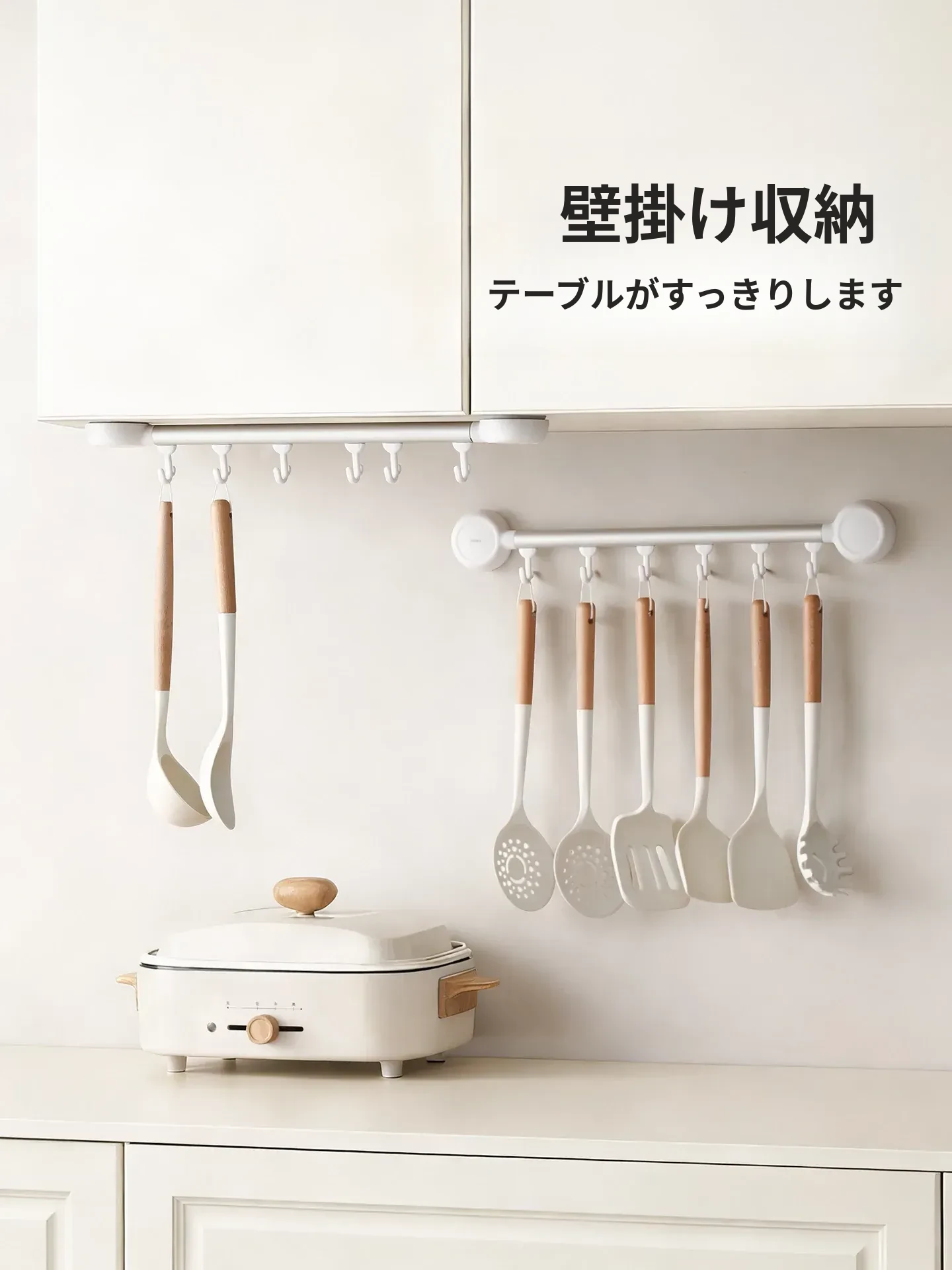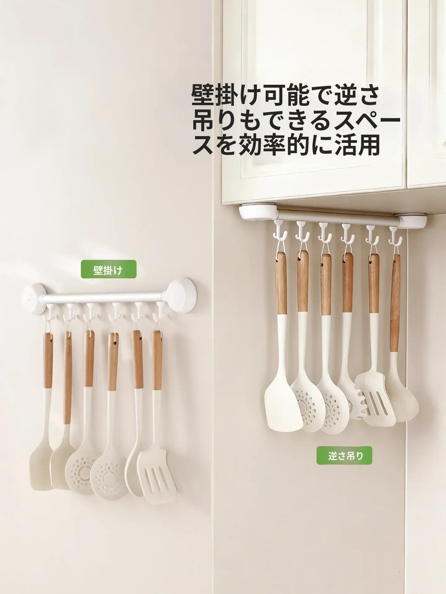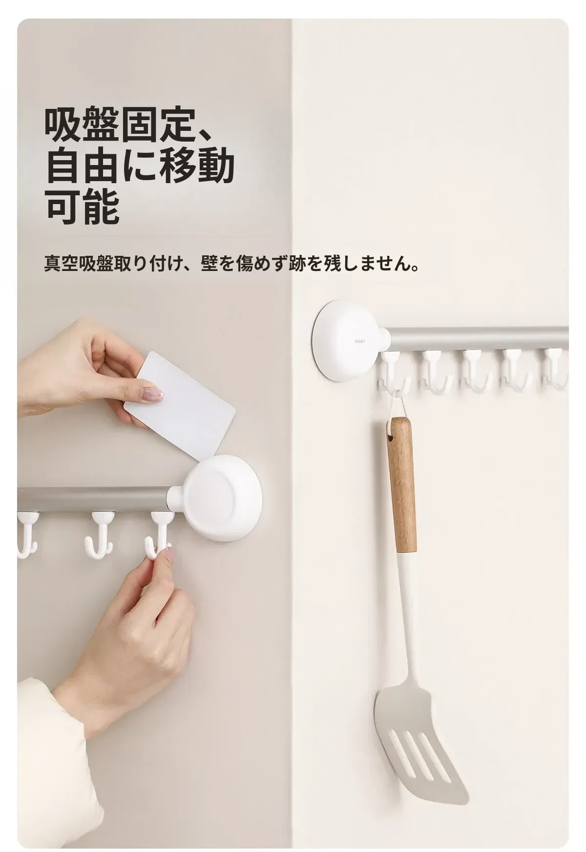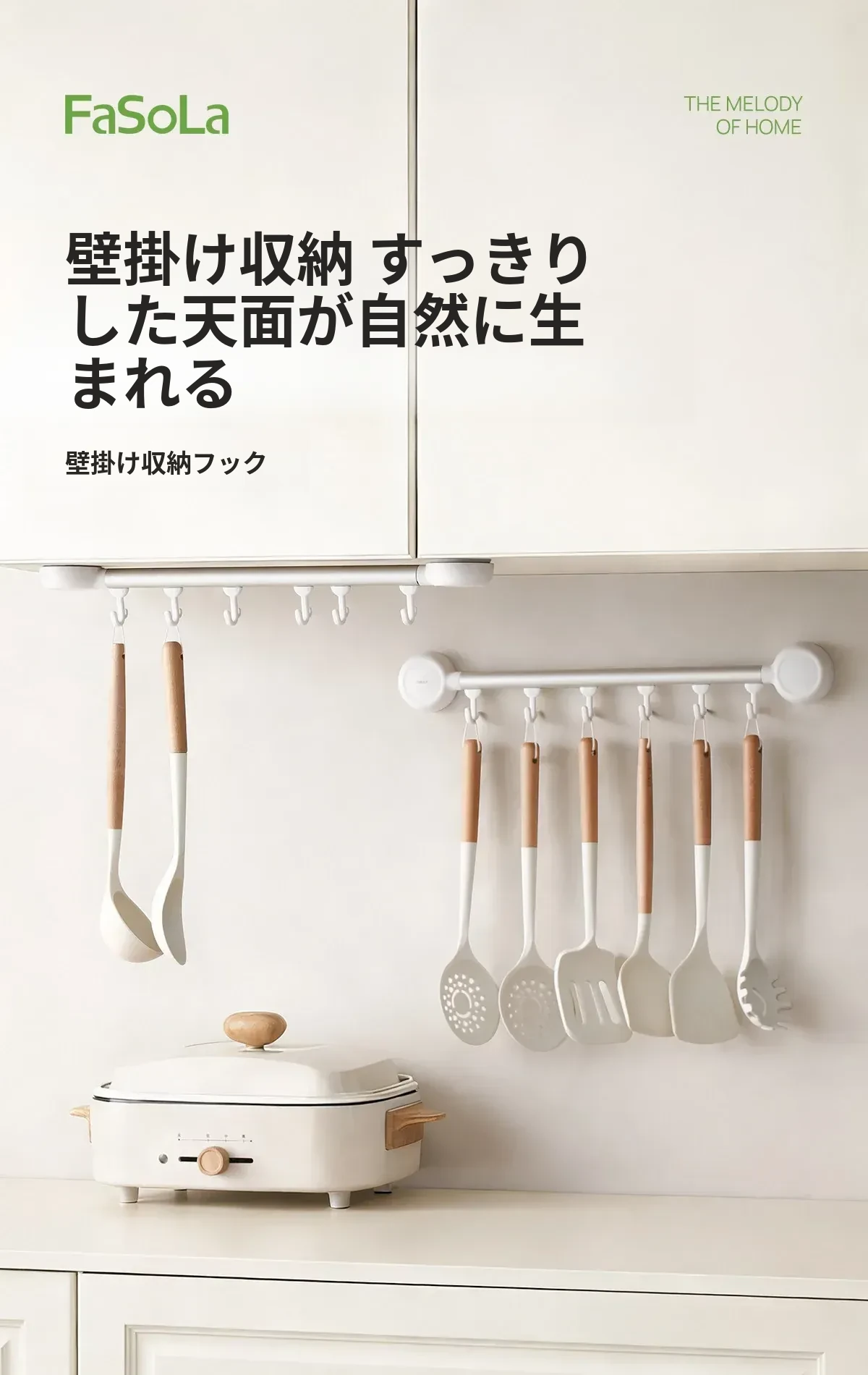 FaSoLa吸盤式キッチンフック - 壁掛けタイプの穴あけ不要キッチン収納ラック、スプーンやおたまをスッキリ収納!おしゃれで便利なキッチンの必需品!
