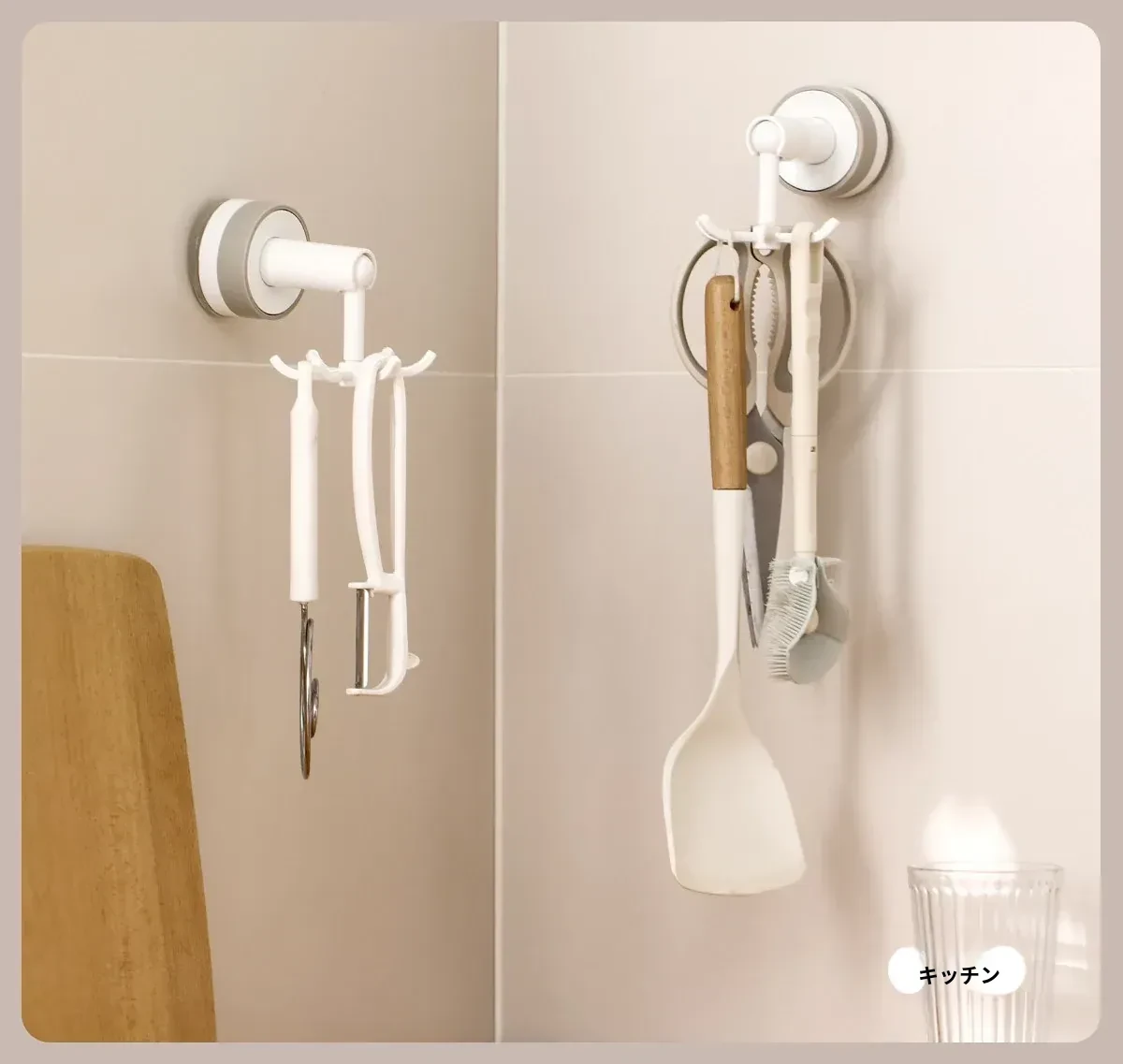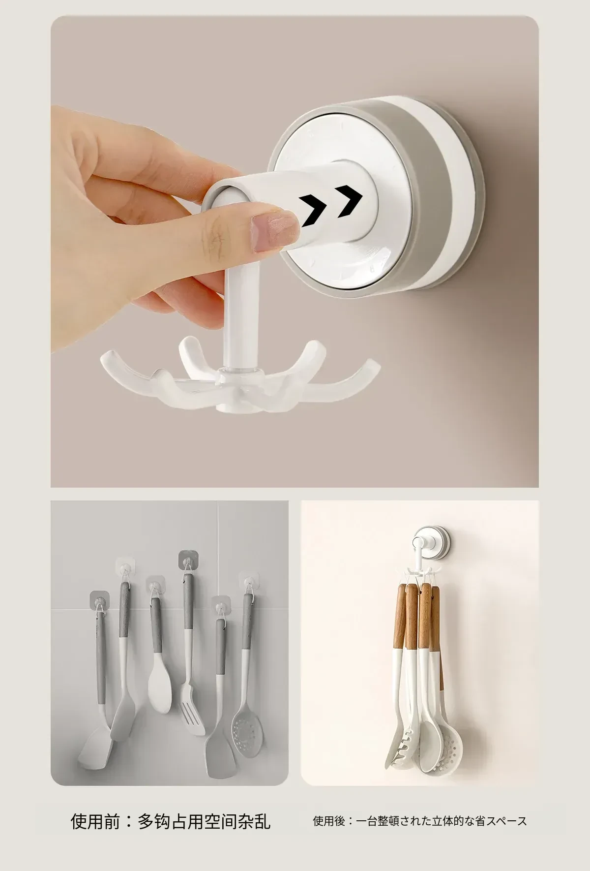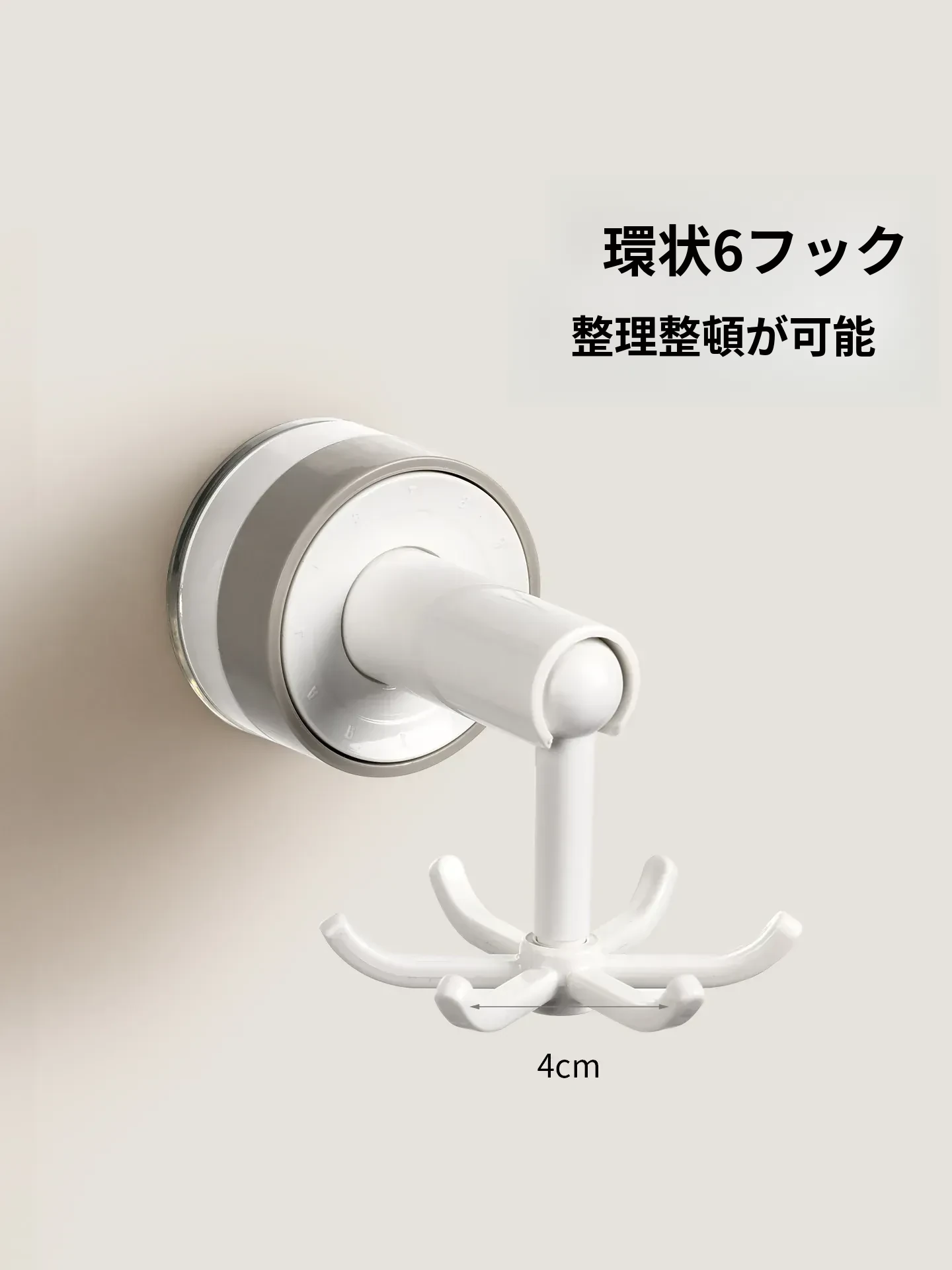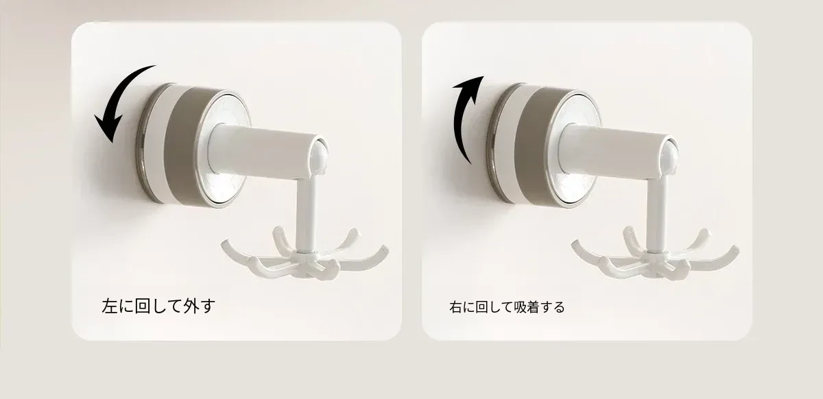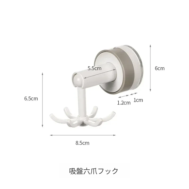 FaSoLa吸盤付き六爪回転フック - 穴あけ不要でキッチンの壁をスッキリ整理!多機能収納ラックで、あなたの生活空間をもっと便利に!