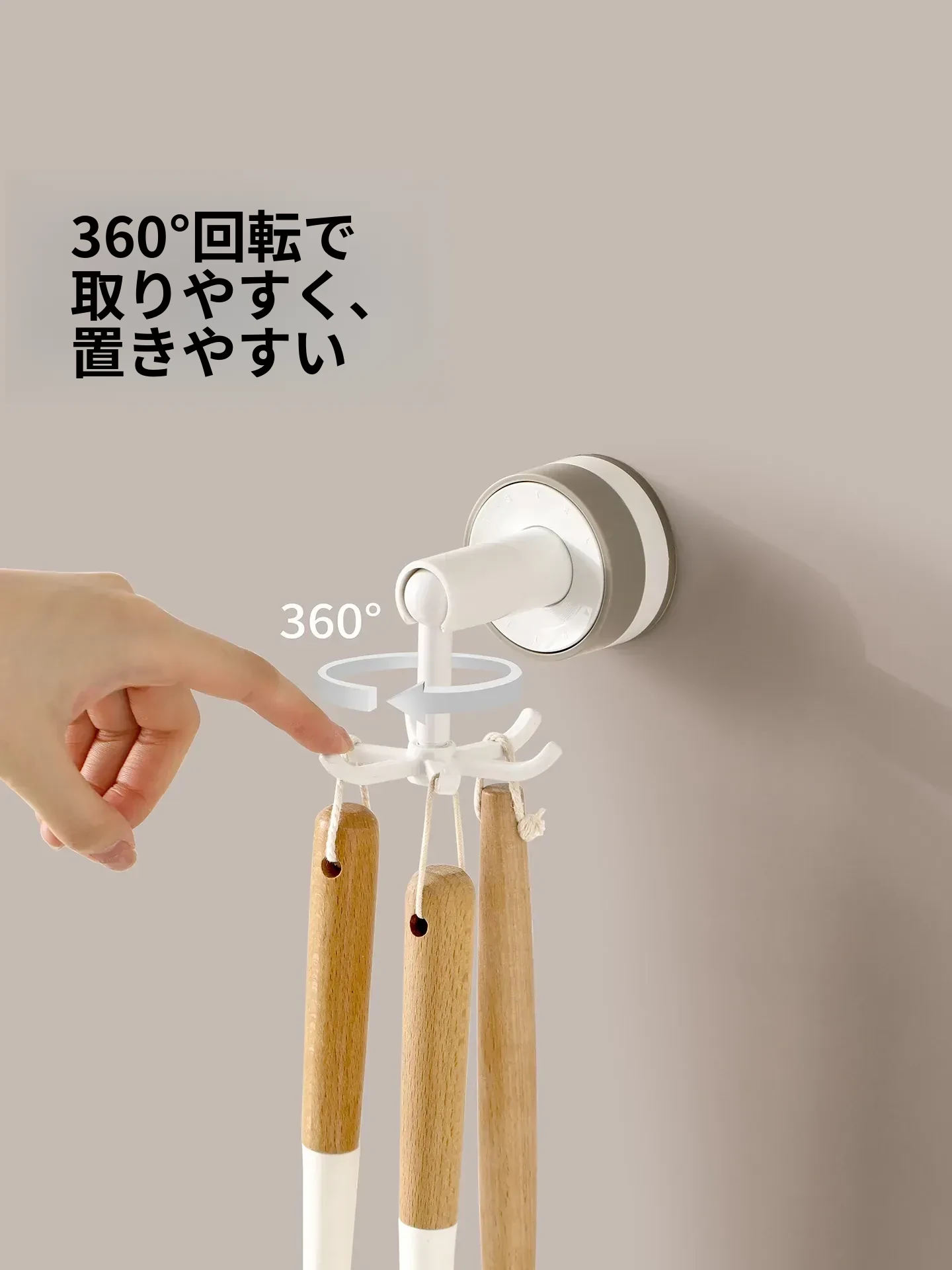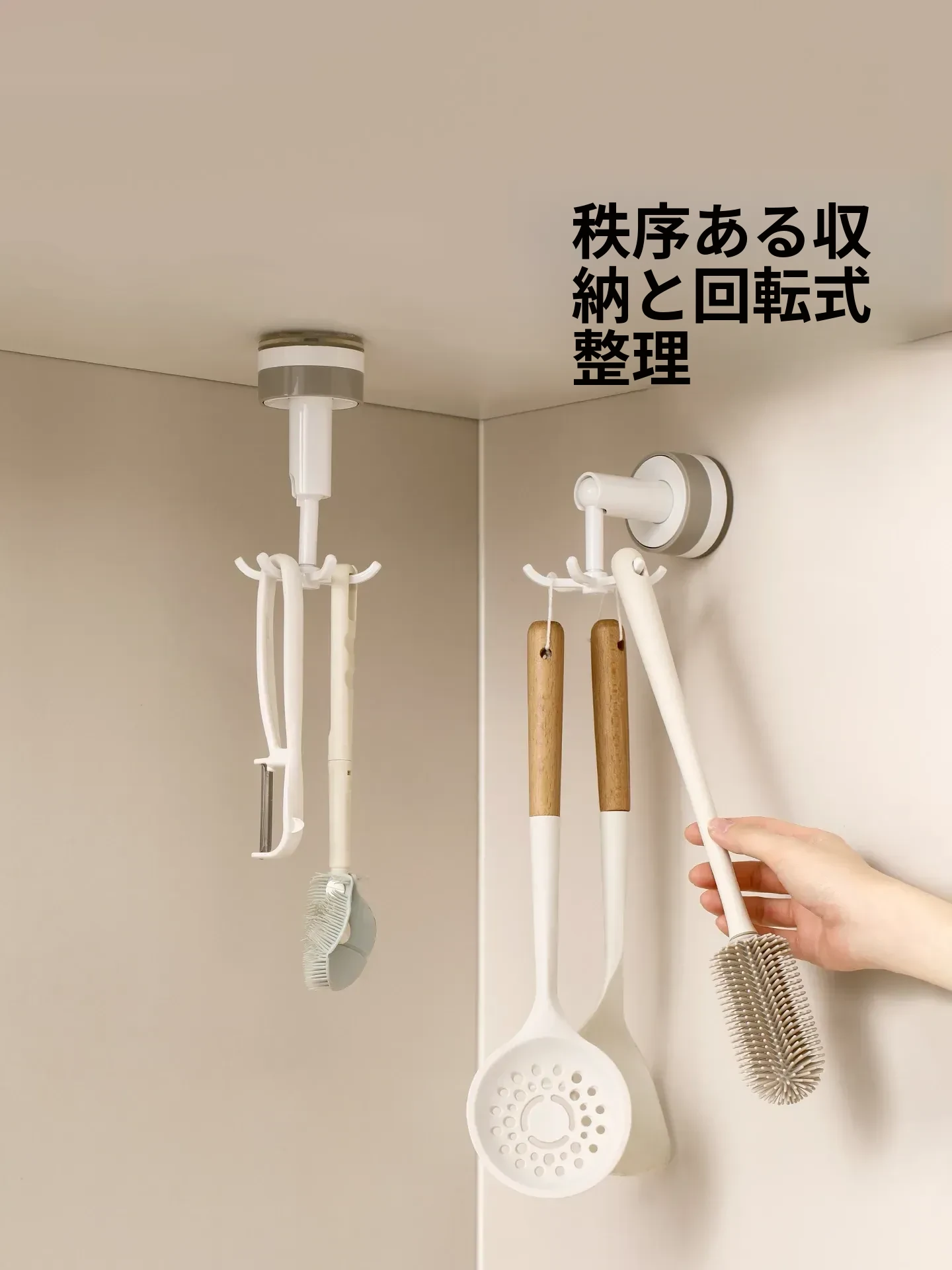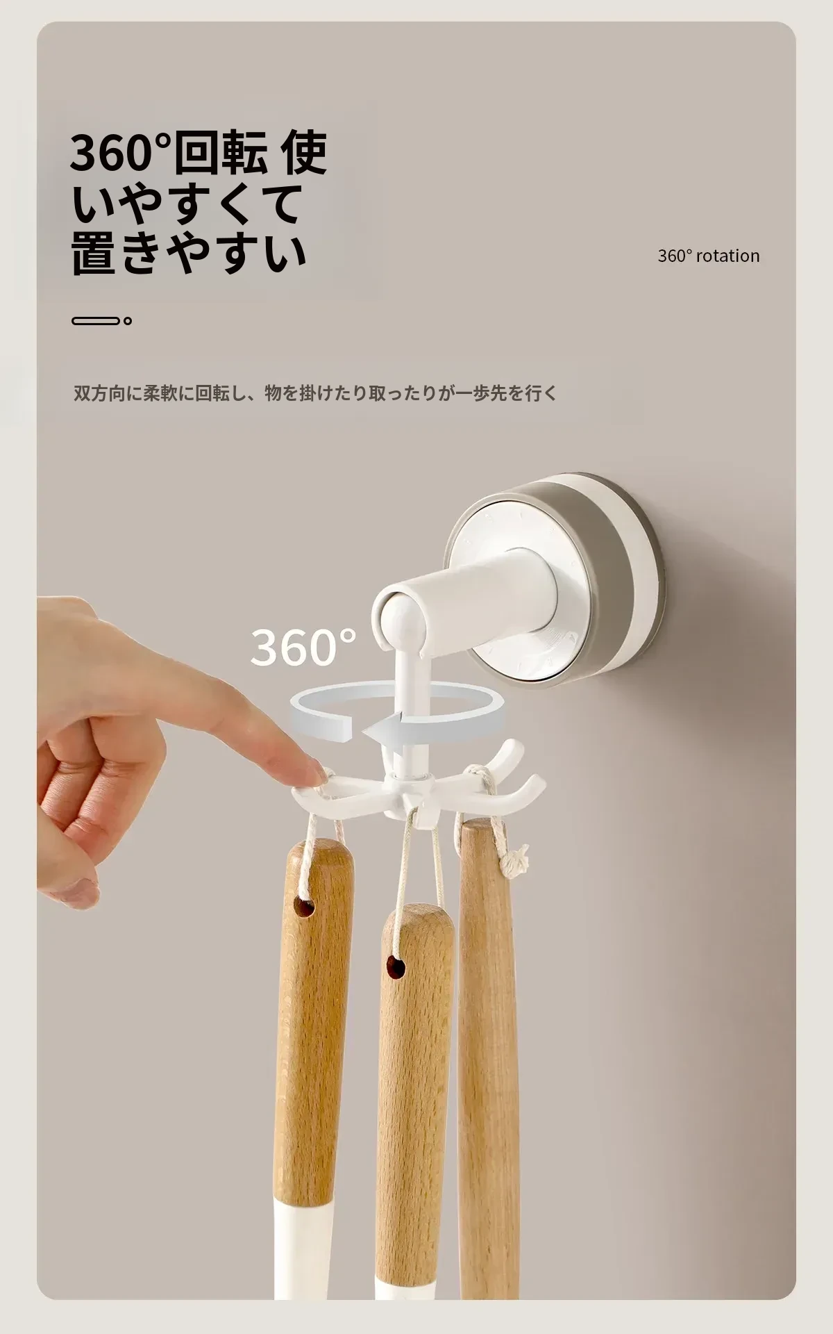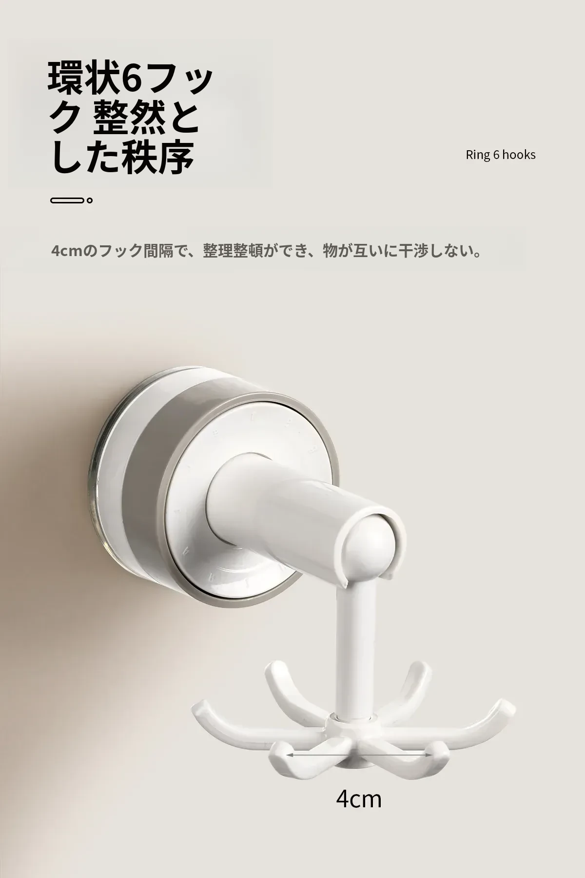 FaSoLa吸盤付き六爪回転フック - 穴あけ不要でキッチンの壁をスッキリ整理!多機能収納ラックで、あなたの生活空間をもっと便利に!