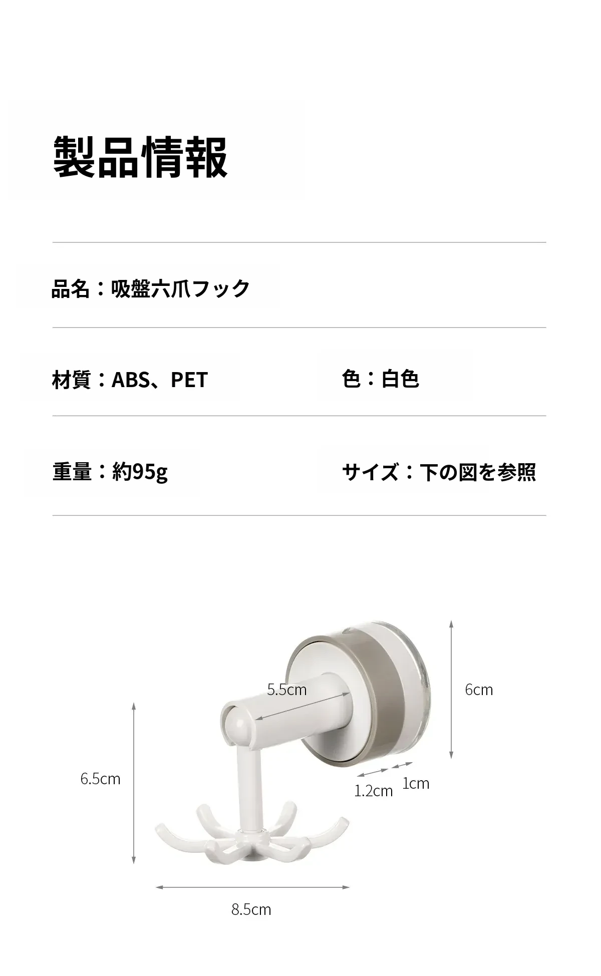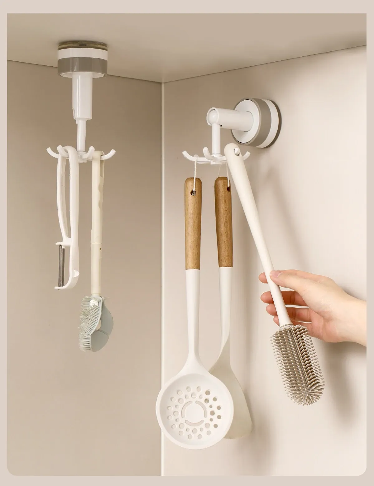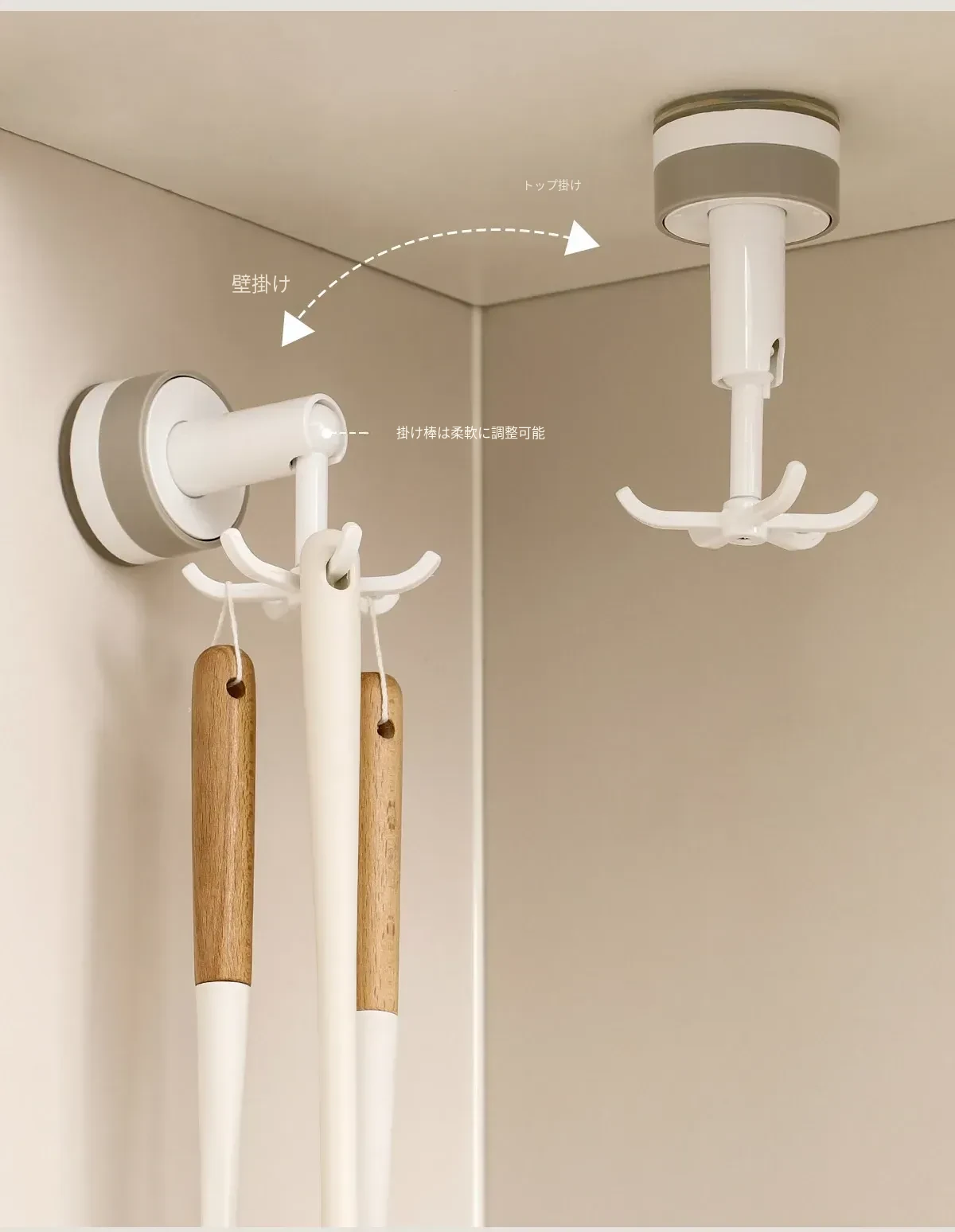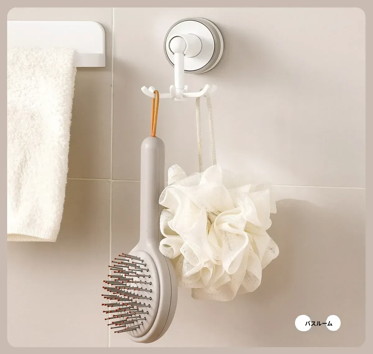 FaSoLa吸盤付き六爪回転フック - 穴あけ不要でキッチンの壁をスッキリ整理!多機能収納ラックで、あなたの生活空間をもっと便利に!