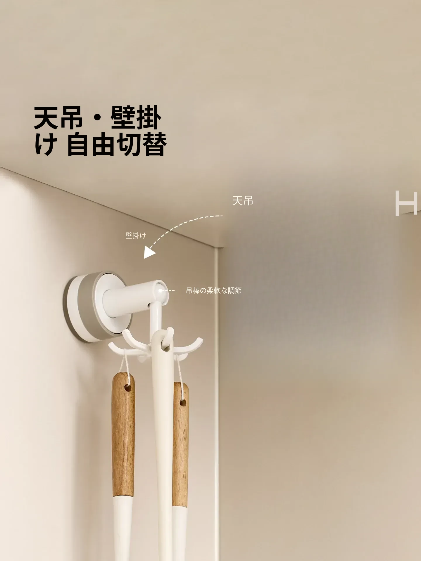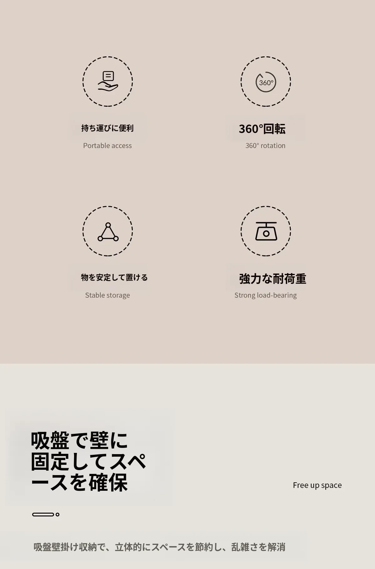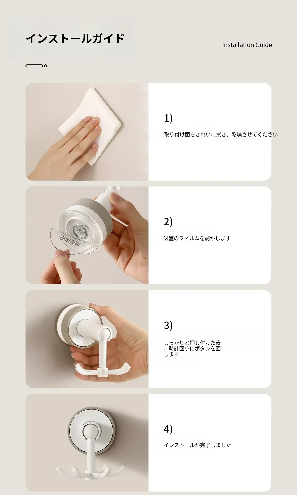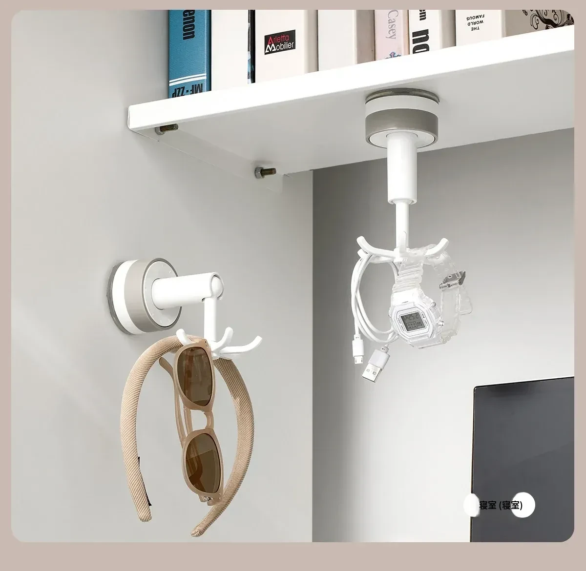 FaSoLa吸盤付き六爪回転フック - 穴あけ不要でキッチンの壁をスッキリ整理!多機能収納ラックで、あなたの生活空間をもっと便利に!