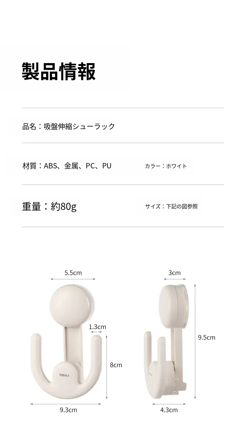 FaSoLa 吸盤ドラッグシューズホルダー - 自宅の玄関やバスルームに最適!穴を開けずに取り付け可能なウォーターシェッド収納ラックで、スッキリ整理整頓!
