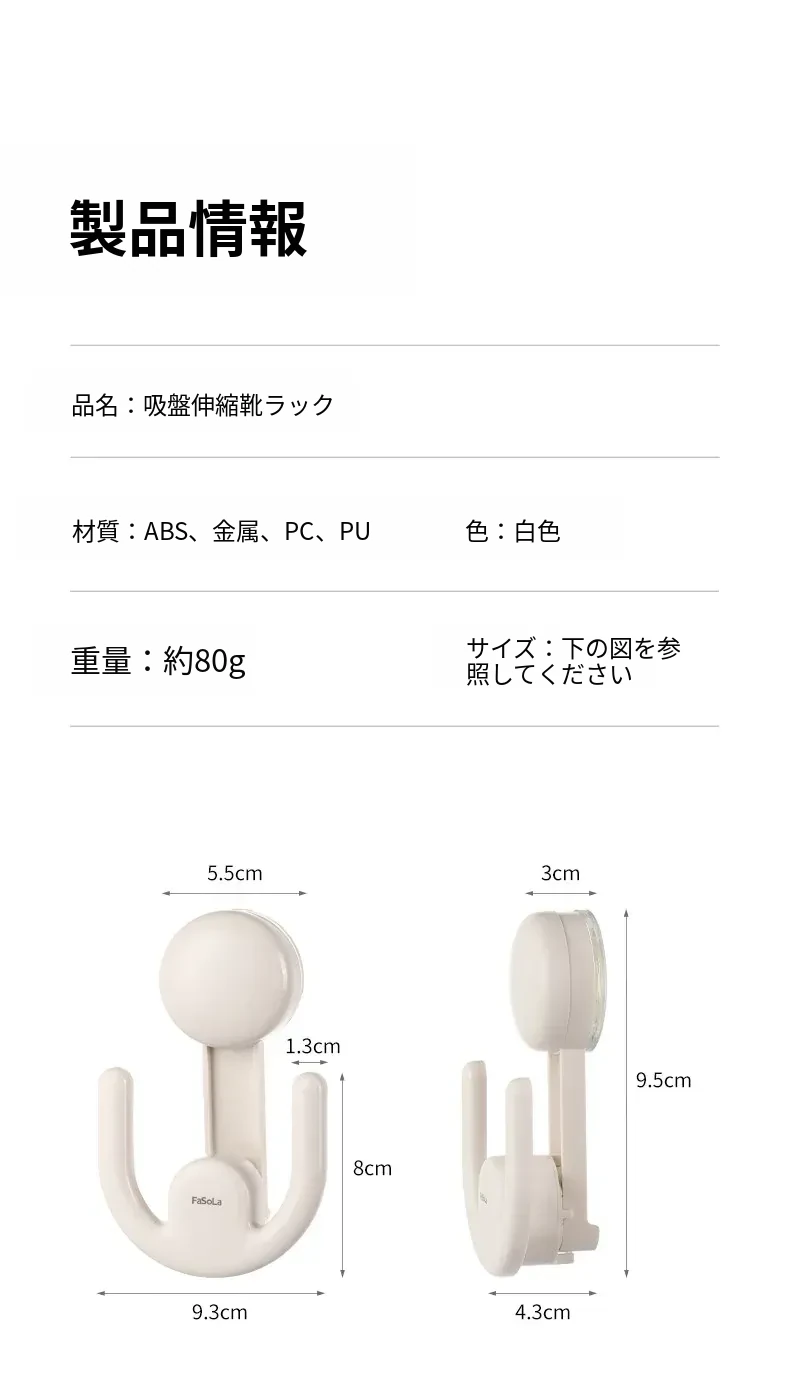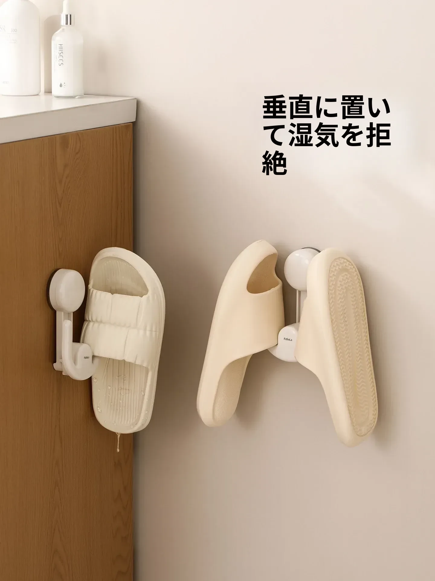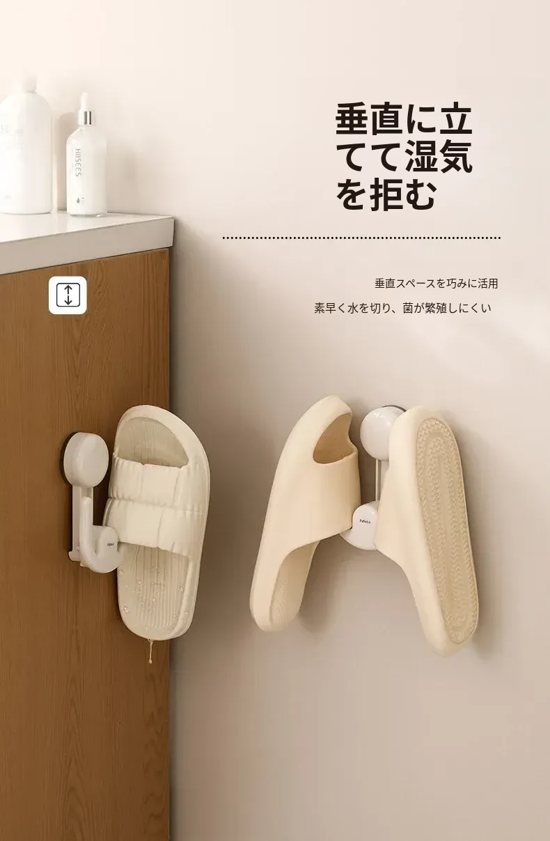 FaSoLa吸盤式スリッパホルダー 壁掛けタイプでネジ不要!玄関や浴室に最適な水切り収納ラック。スリッパをすっきり整理して、清潔な空間を実現!