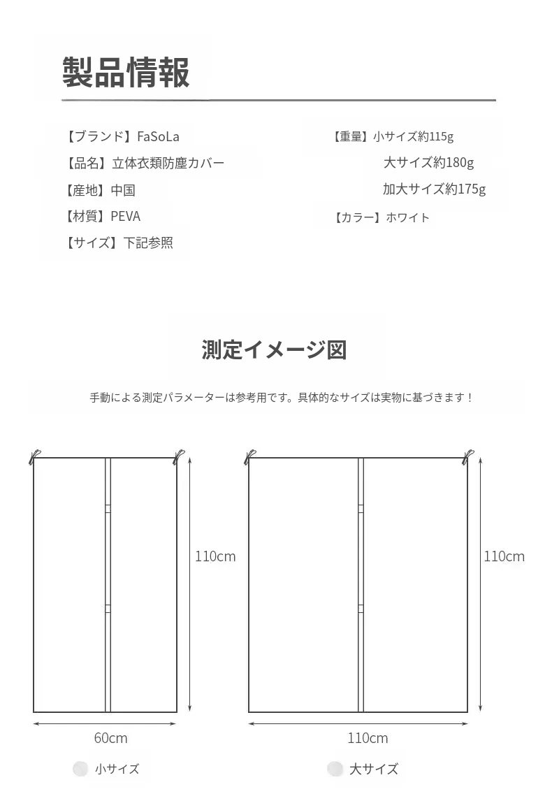 FaSoLa 透明衣物防塵袋 - 家庭用コートカバー、収納に最適なスーツ保護カバー!大切な衣類をホコリから守り、すっきり収納!
