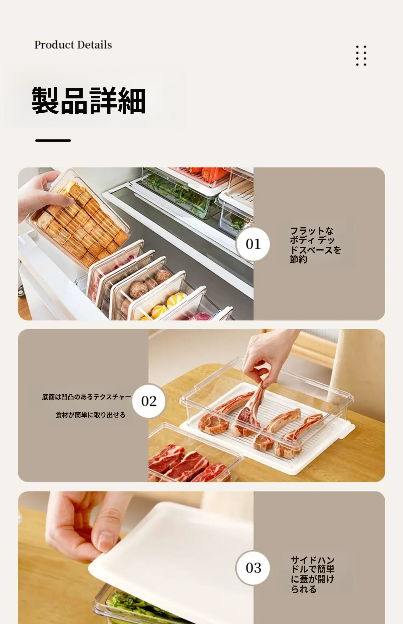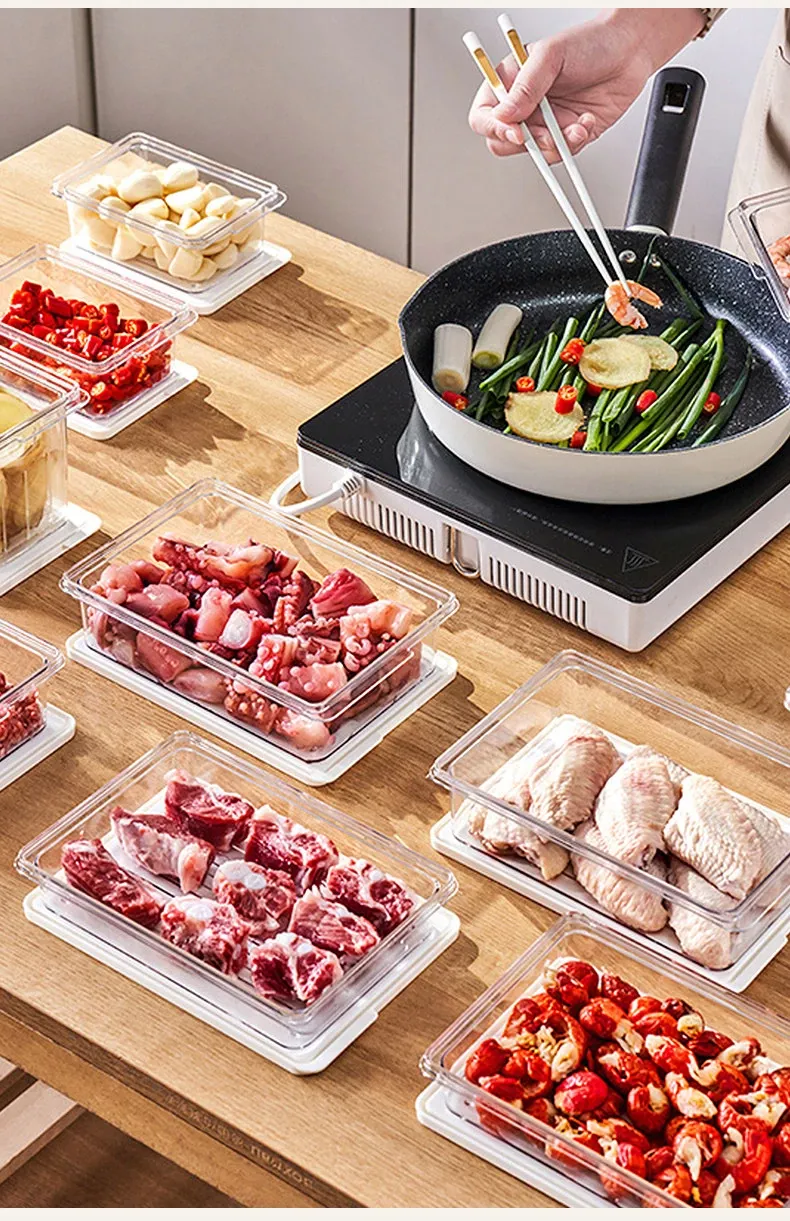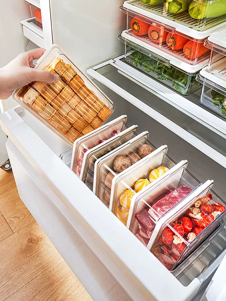 FaSoLa 冷凍食品専用透明密封ボックス - 冷蔵庫整理の必需品!食材をスッキリ収納し、鮮度をキープ。使いやすいデザインで、キッチンの美しさもアップ!