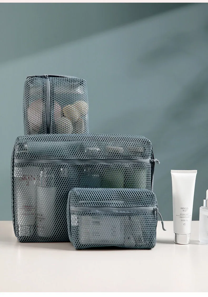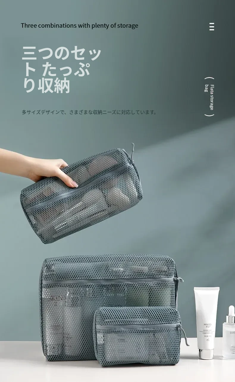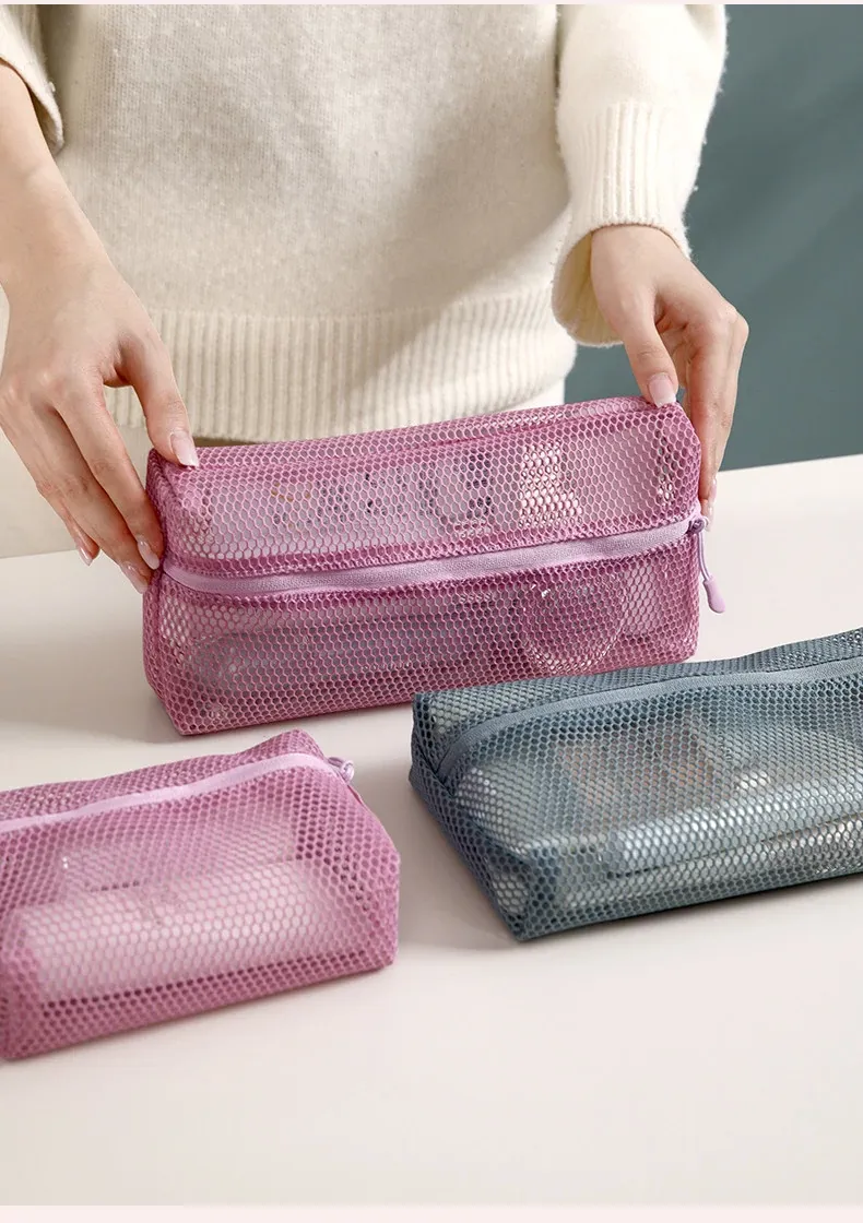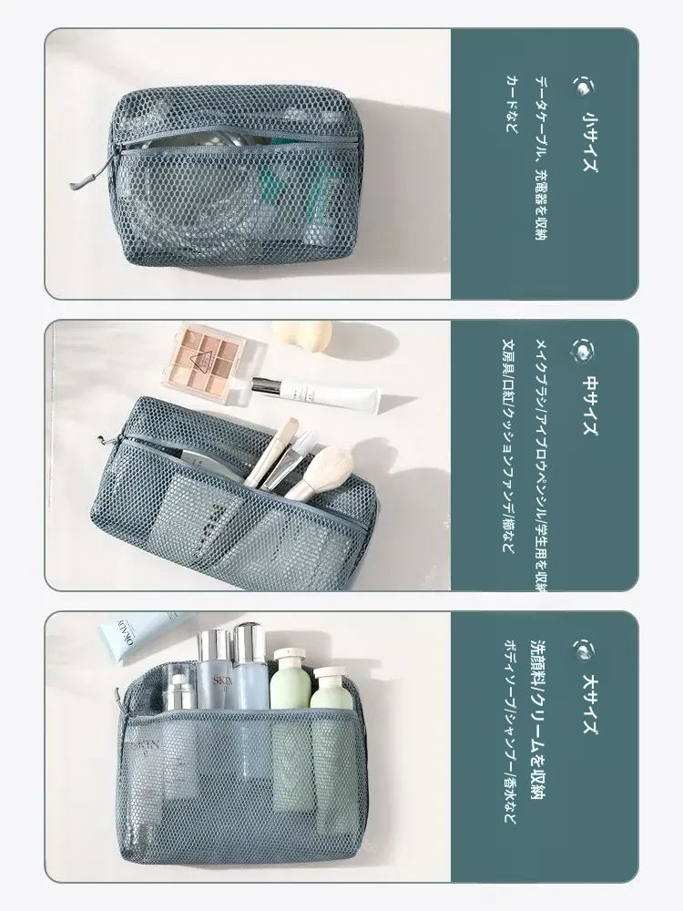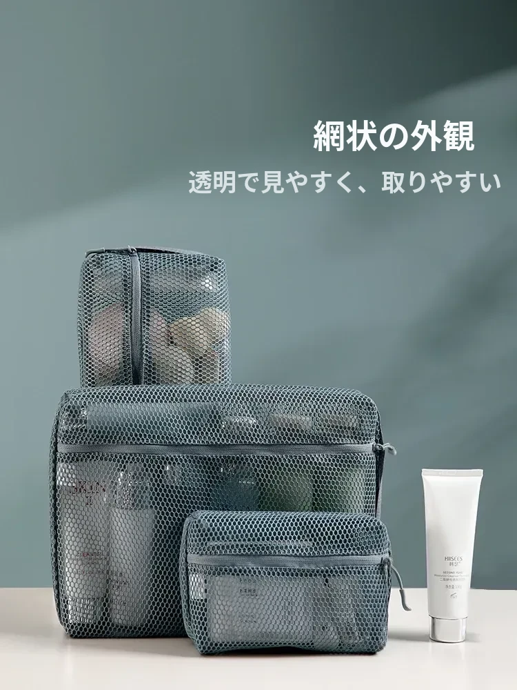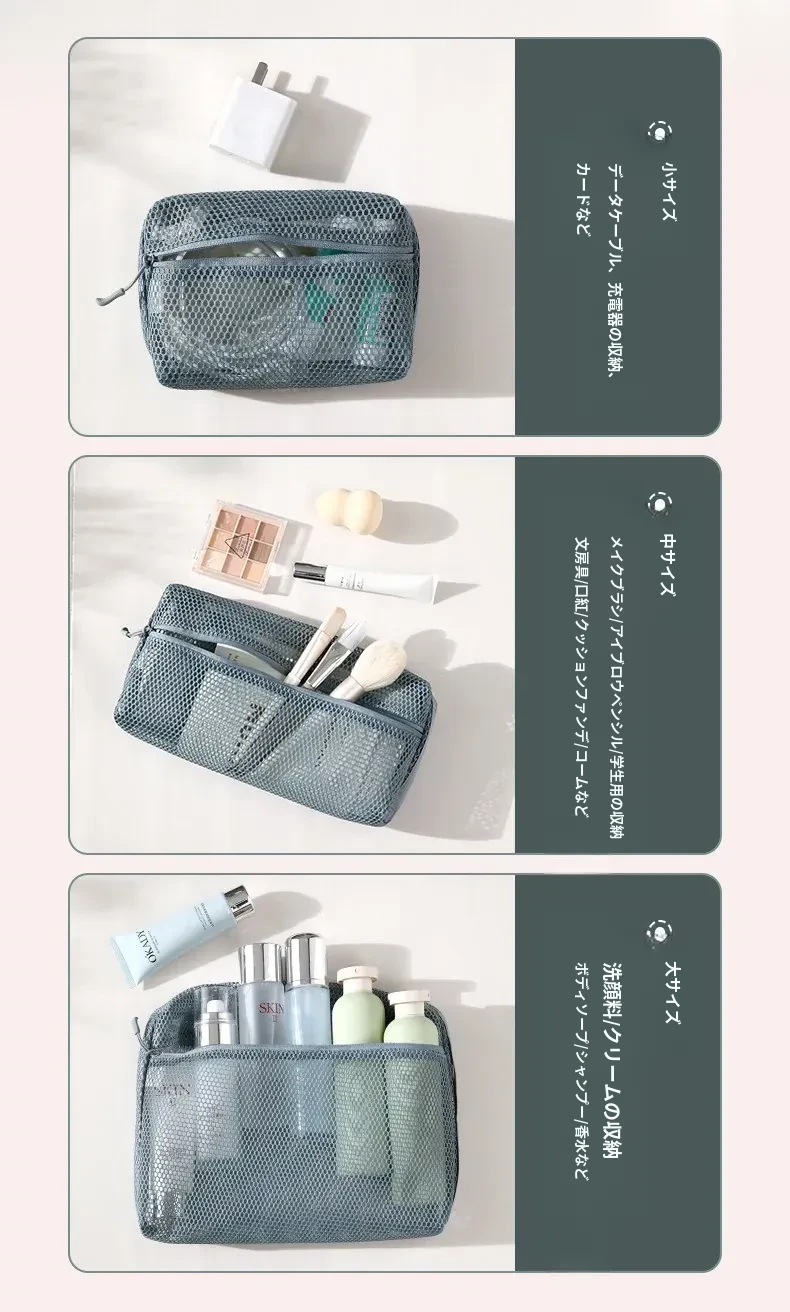 FaSoLa 透け感おしゃれなメッシュ収納ポーチ - 洗面用具・化粧品もすっきり整理!旅行に最適な軽量デザインで、持ち運びも便利。アイテムが一目でわかる透明感が魅力のネットポーチ!