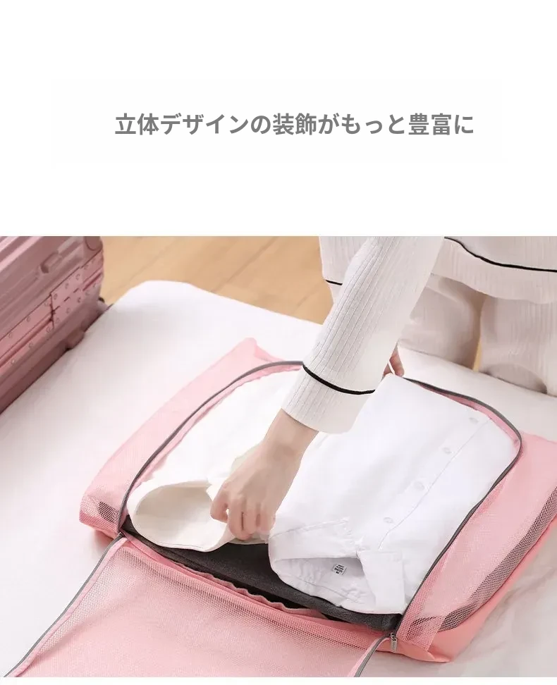 420*380mm旅行衣物収納バッグ:ピンク中サイズ