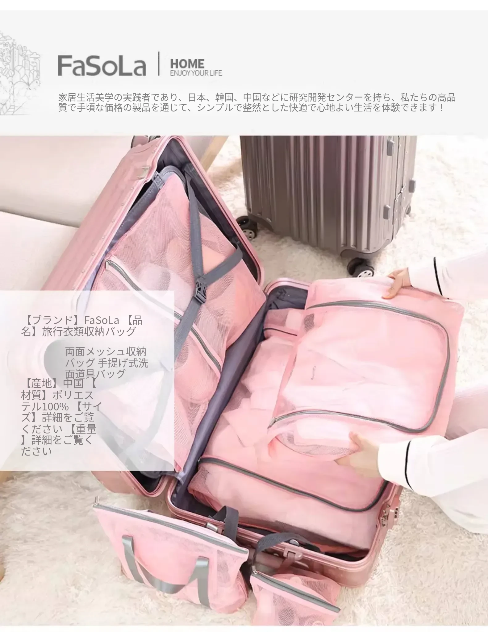 FaSoLa大容量旅行衣類整理バッグ - シンプルでスタイリッシュなデザイン、持ち運びに便利な分けられる収納ポーチで、旅行をもっと快適に!