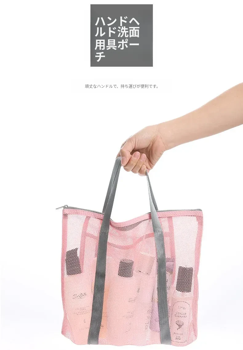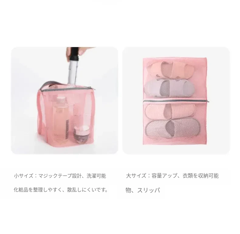 490*390mm両面メッシュ収納バッグ:大サイズピンク