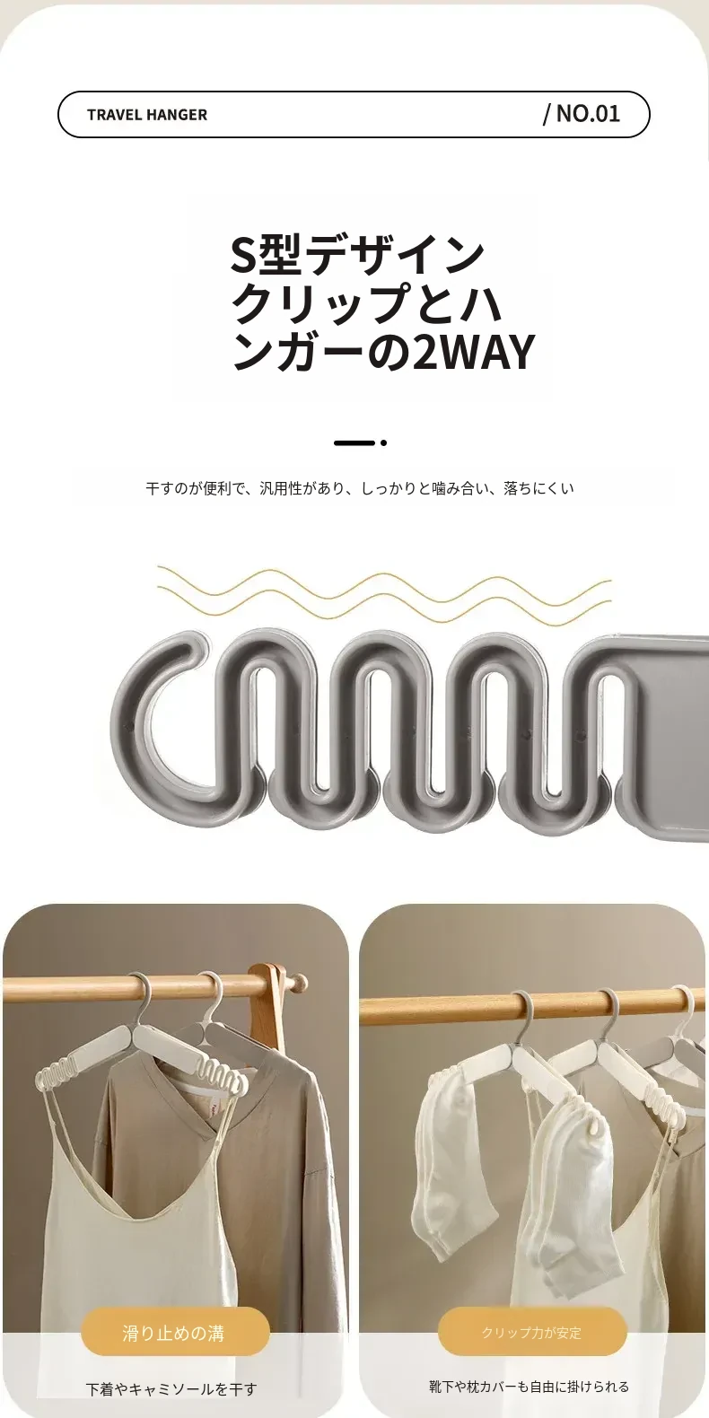 FaSoLa旅行用折りたたみハンガー|出張やホテルに最適!便利な多機能デザインで衣服、靴下、下着をしっかり干せます。軽量&コンパクトで持ち運びも簡単!あなたの旅を快適にサポートします。