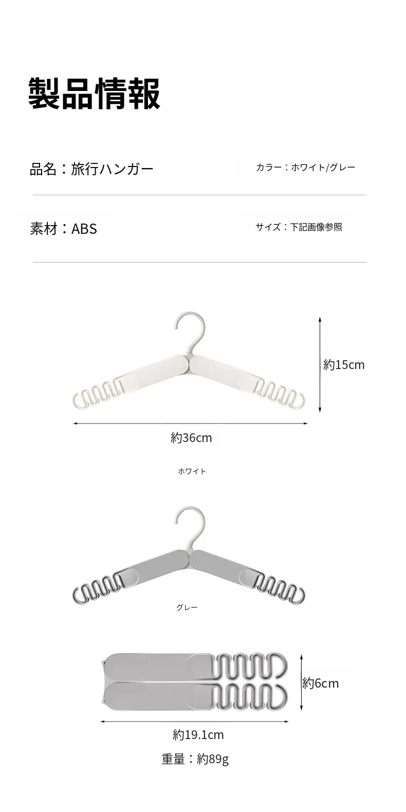 旅行用ハンガー(ホワイト)1個セット