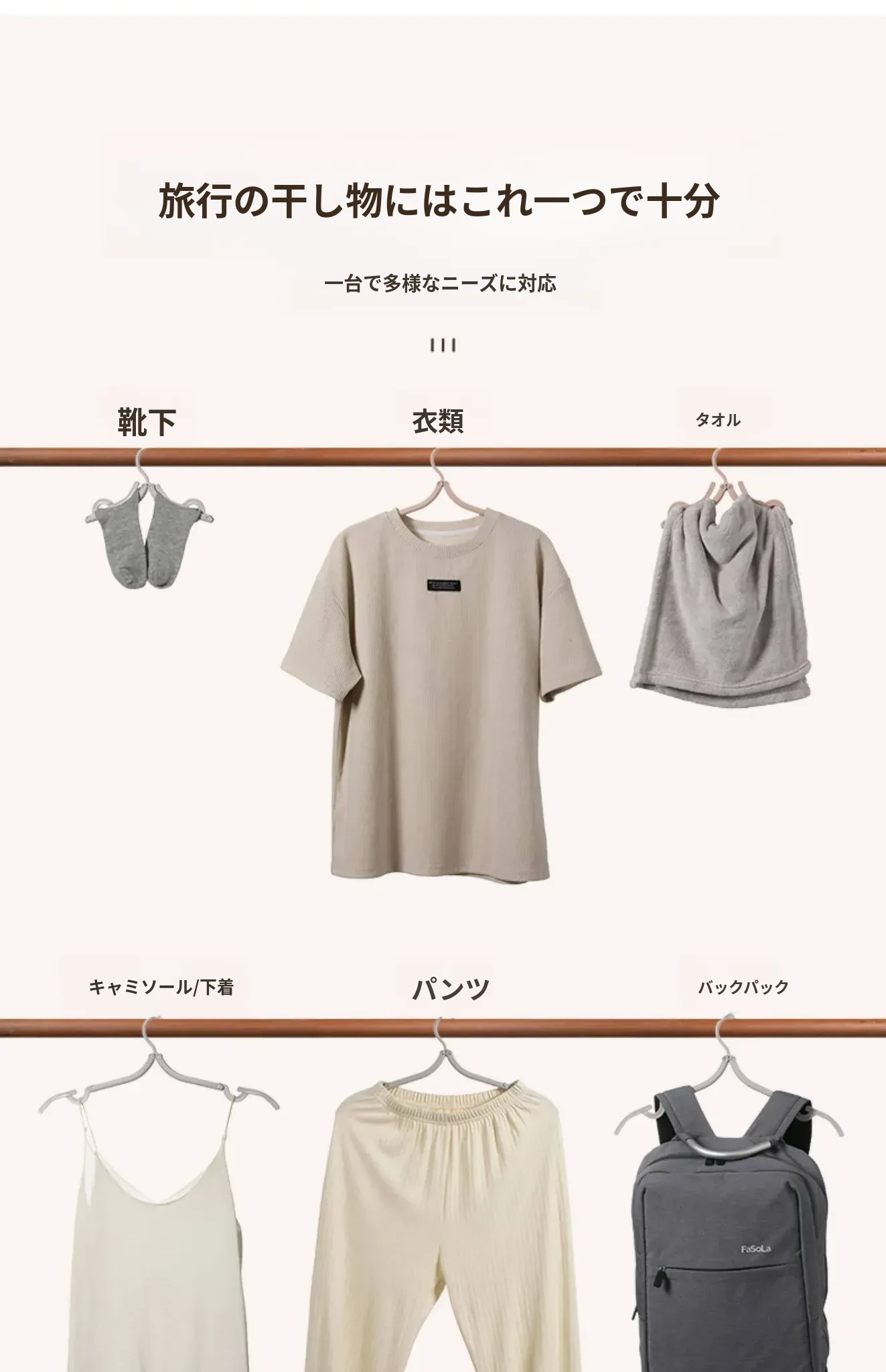 FaSoLa折りたたみ式旅行用ハンガー - 便利な衣類乾燥器!宿泊先でも活躍する多機能ハンガーで、旅行をもっと快適に。コンパクトで持ち運びに便利、いつでもどこでも衣類をしっかりサポート!