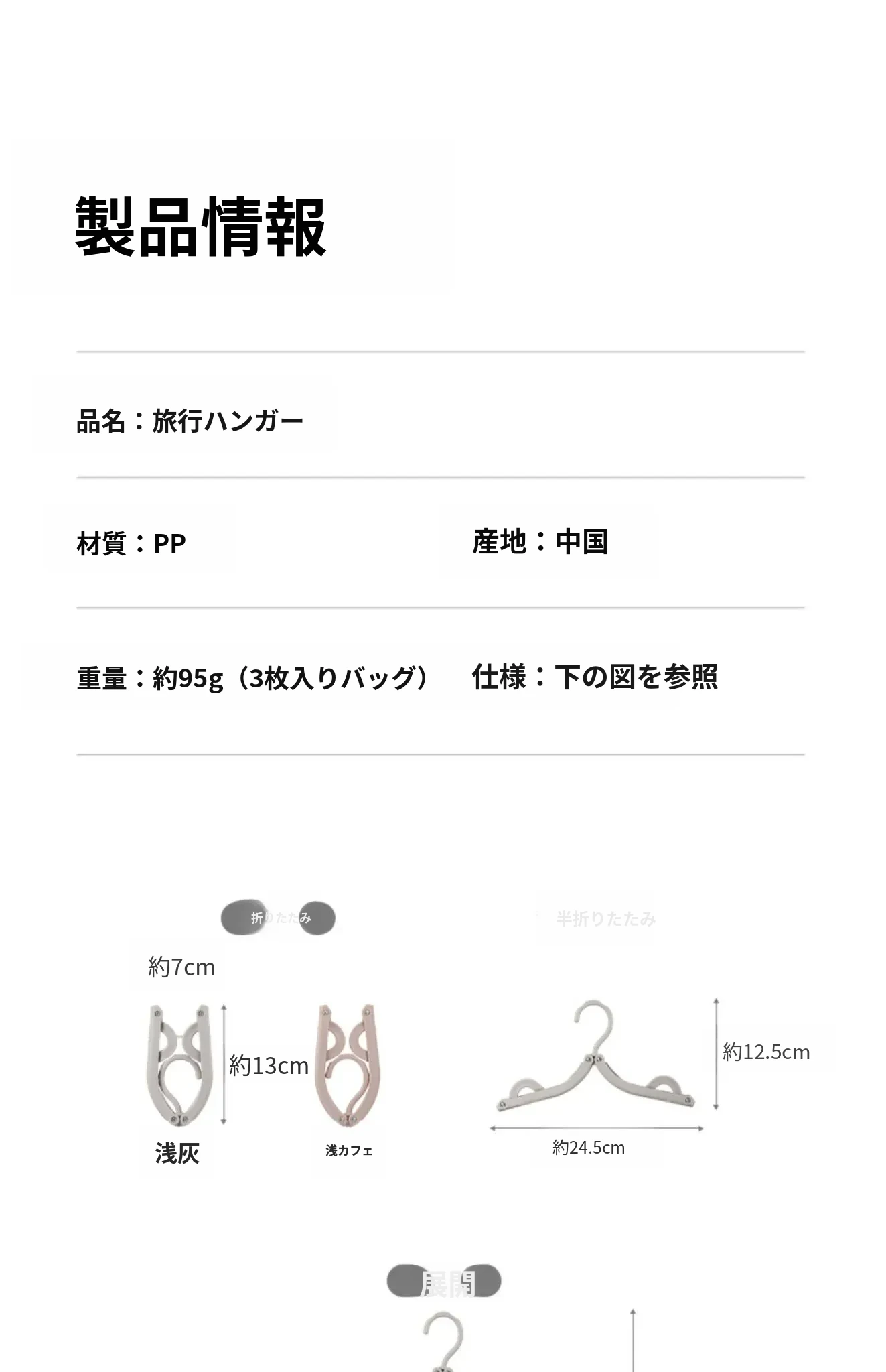 旅行用ハンガー 薄灰色 15個