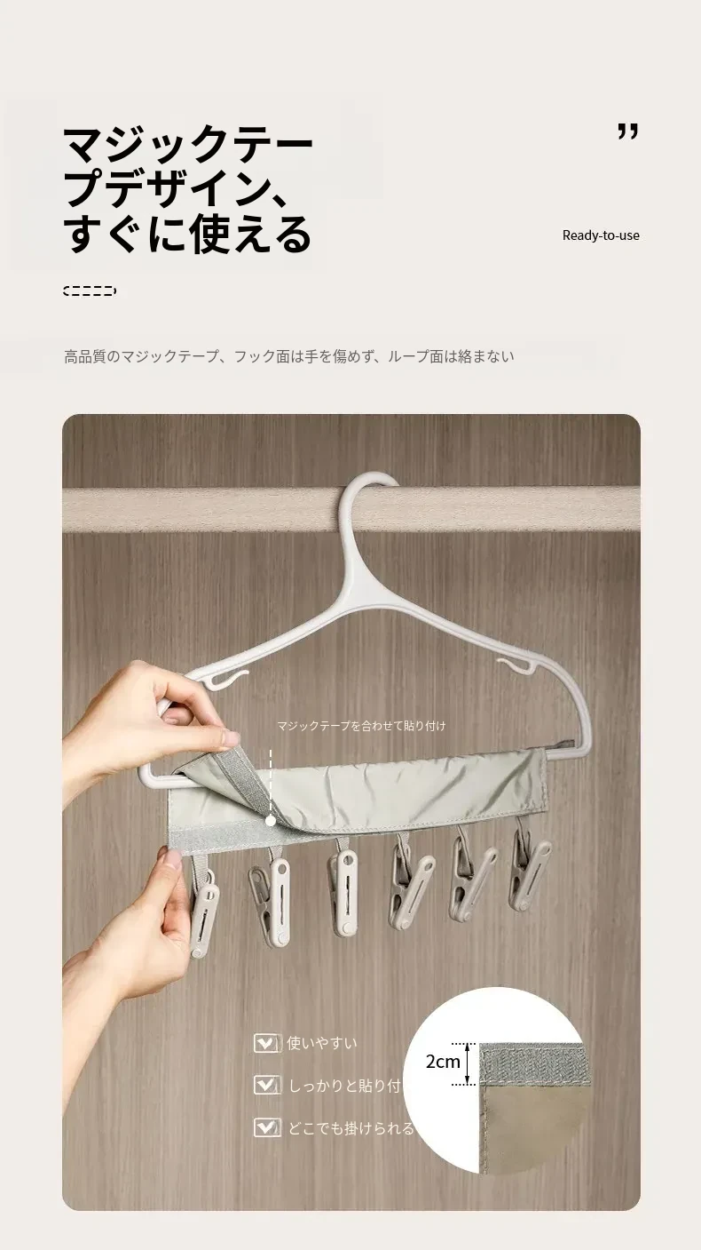 FaSoLa 旅行用折りたたみハンガー - 持ち運びに便利なホテルや出張に最適!布製ソックスや衣類をしっかりと固定する防風クリップ付き、洗濯物を簡単に干せる便利なアイテム!