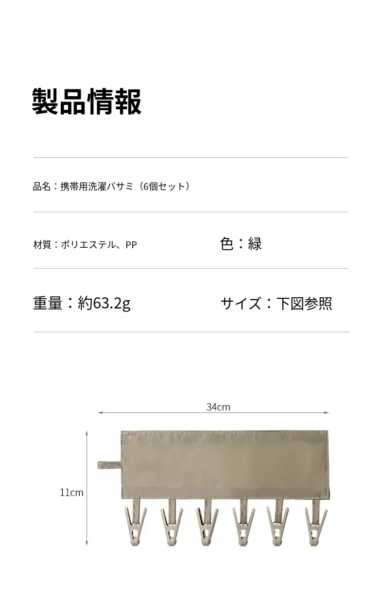 ポータブル干しクリップ(6クリップ)