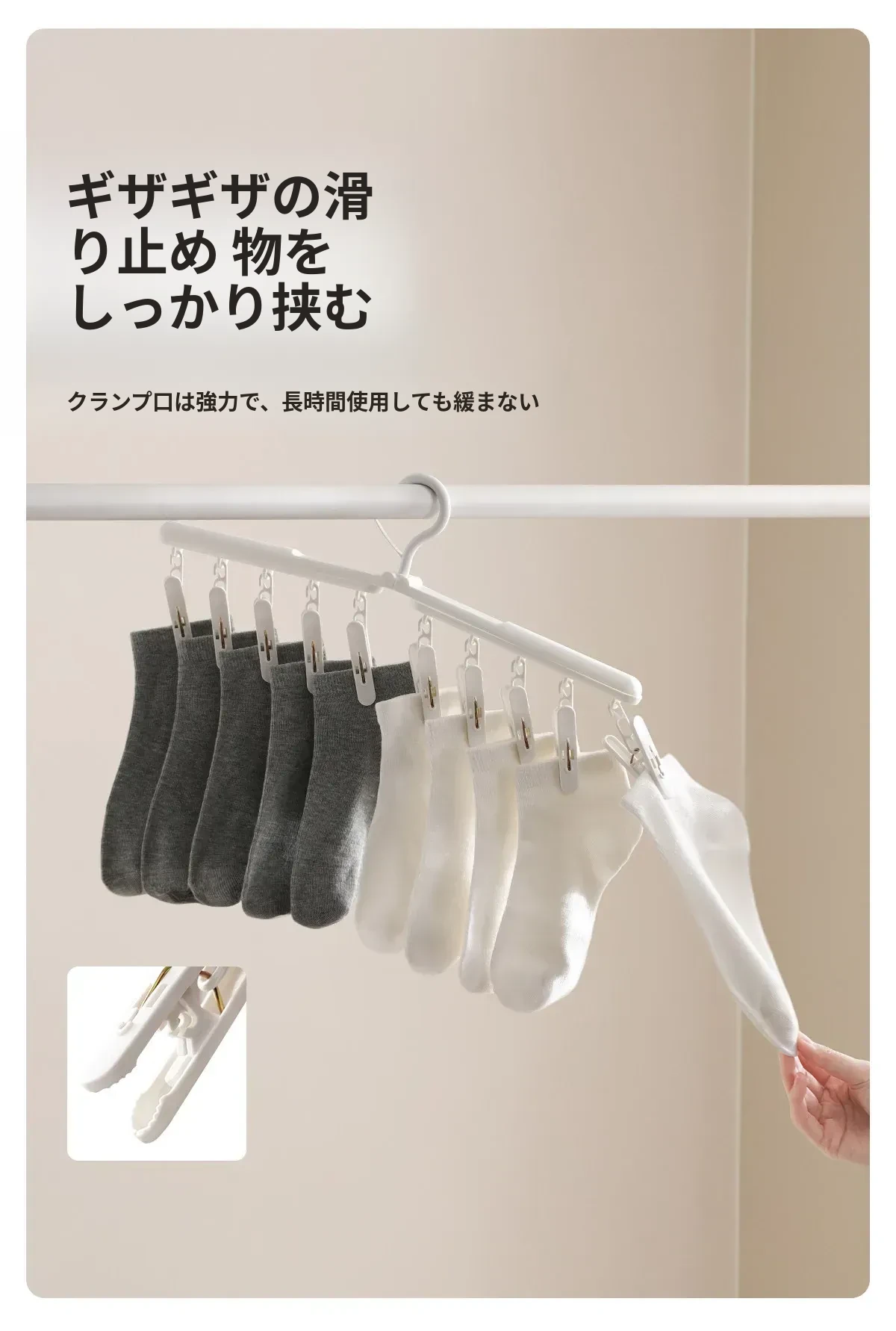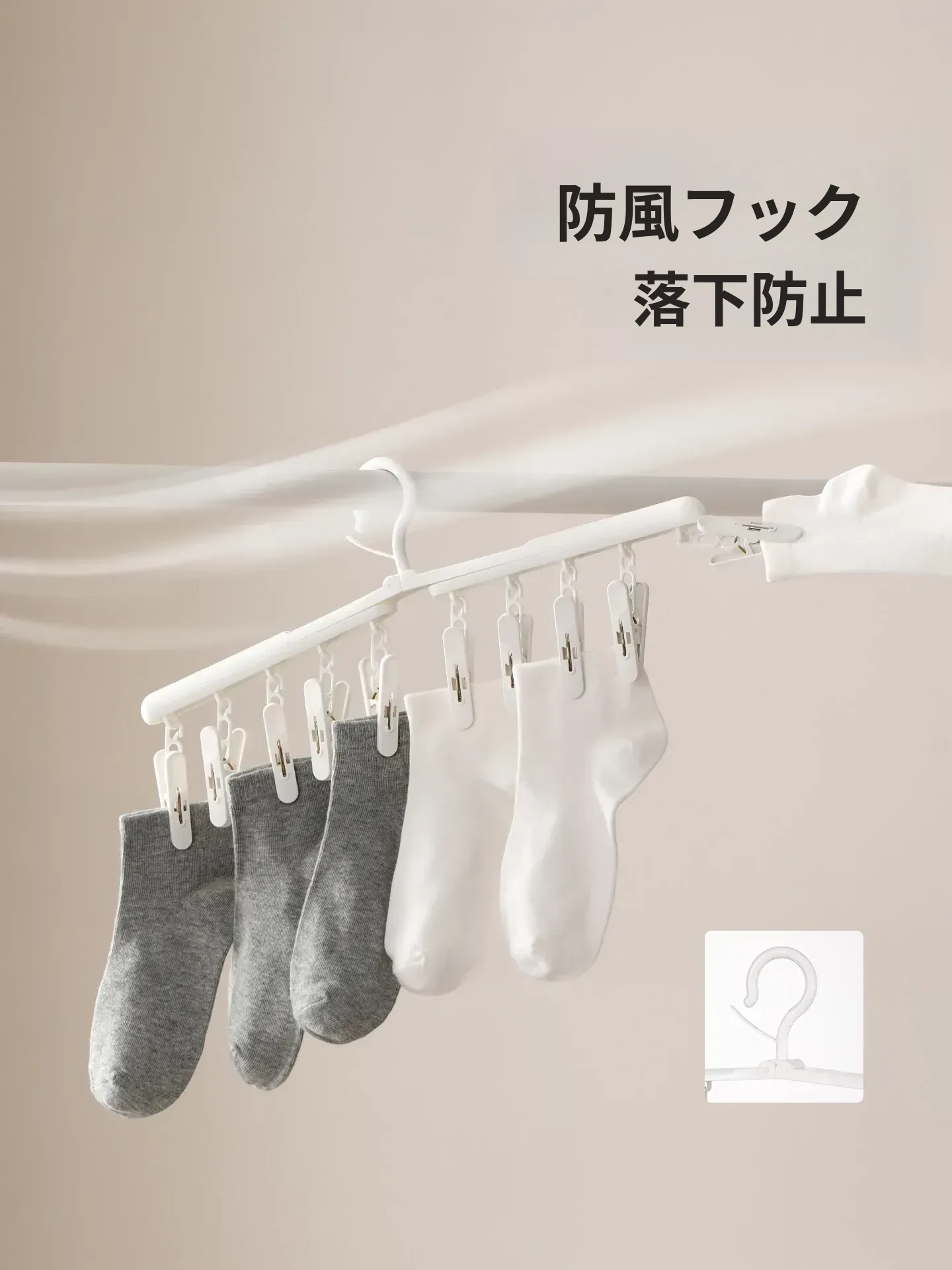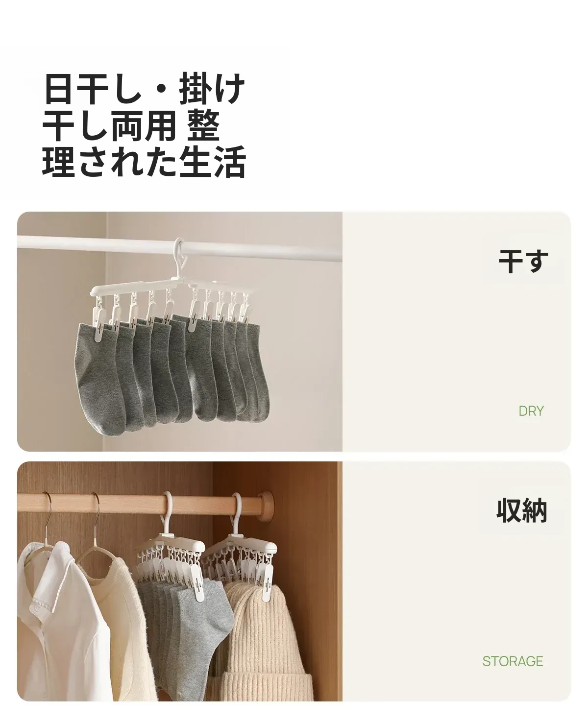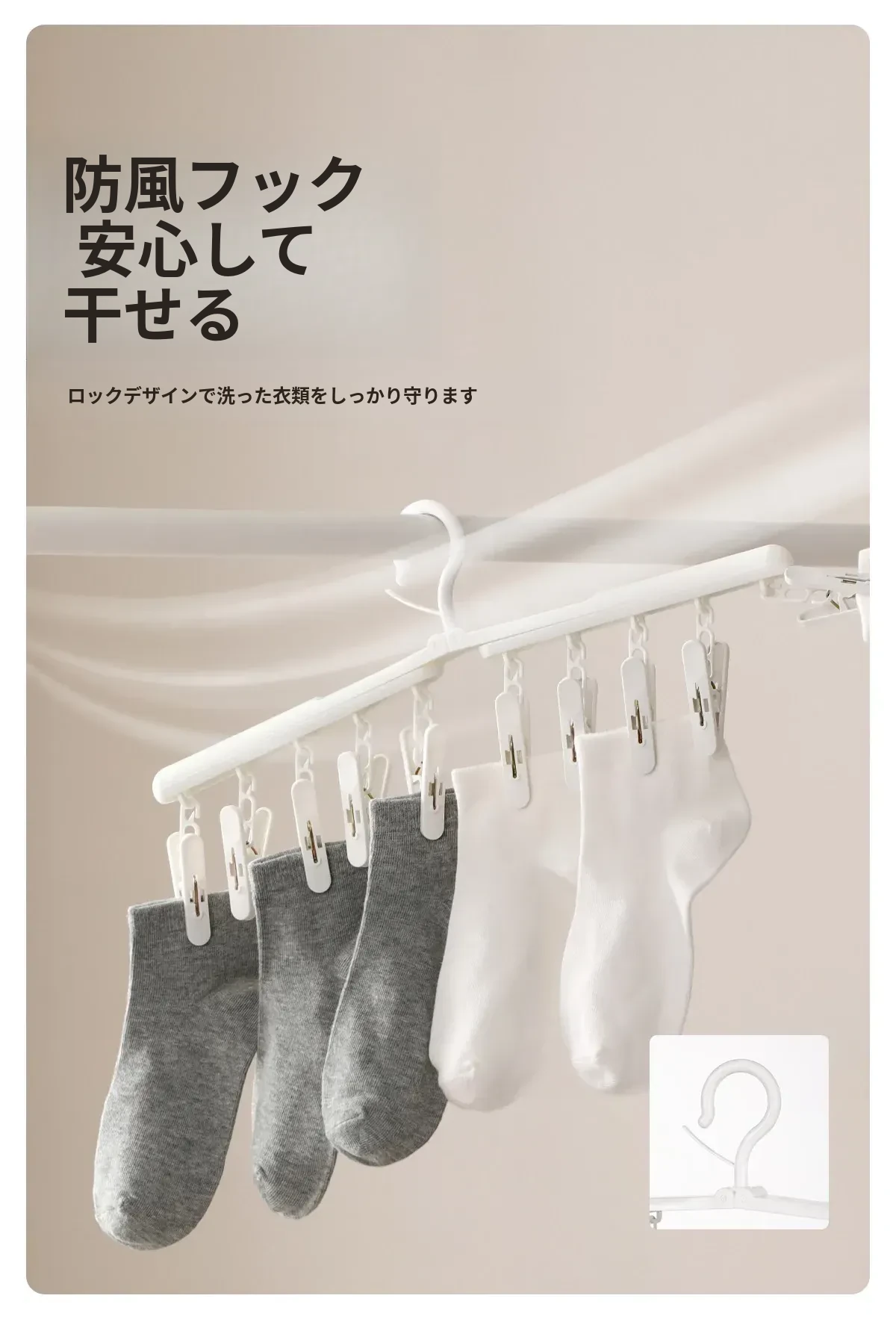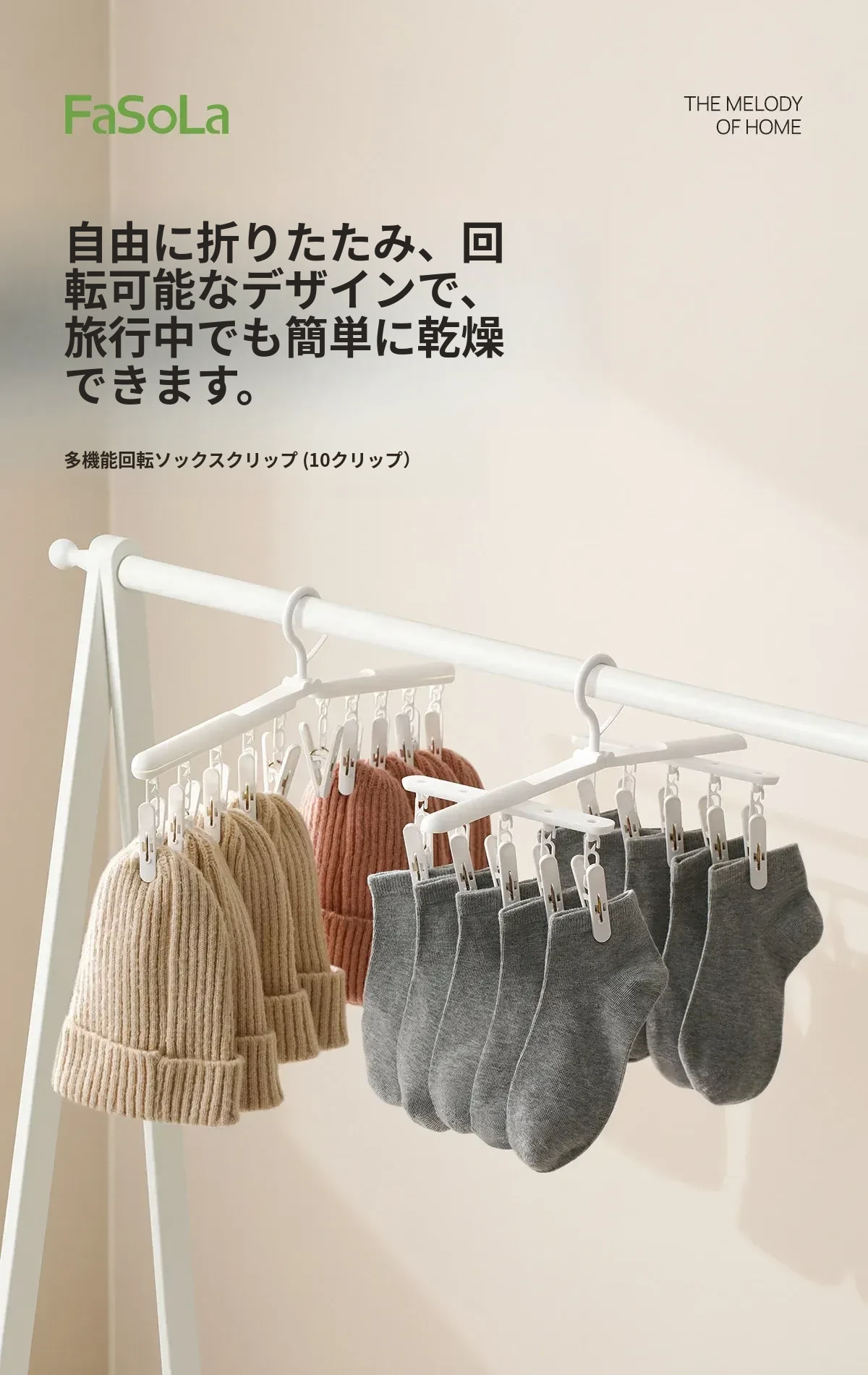 FaSoLaソックス干しハンガー 旅行用折りたたみ式 室外バルコニーでの靴下・下着干しに最適!風に強いクリップ付きで安心使用!快適で便利な干し方を提供します。