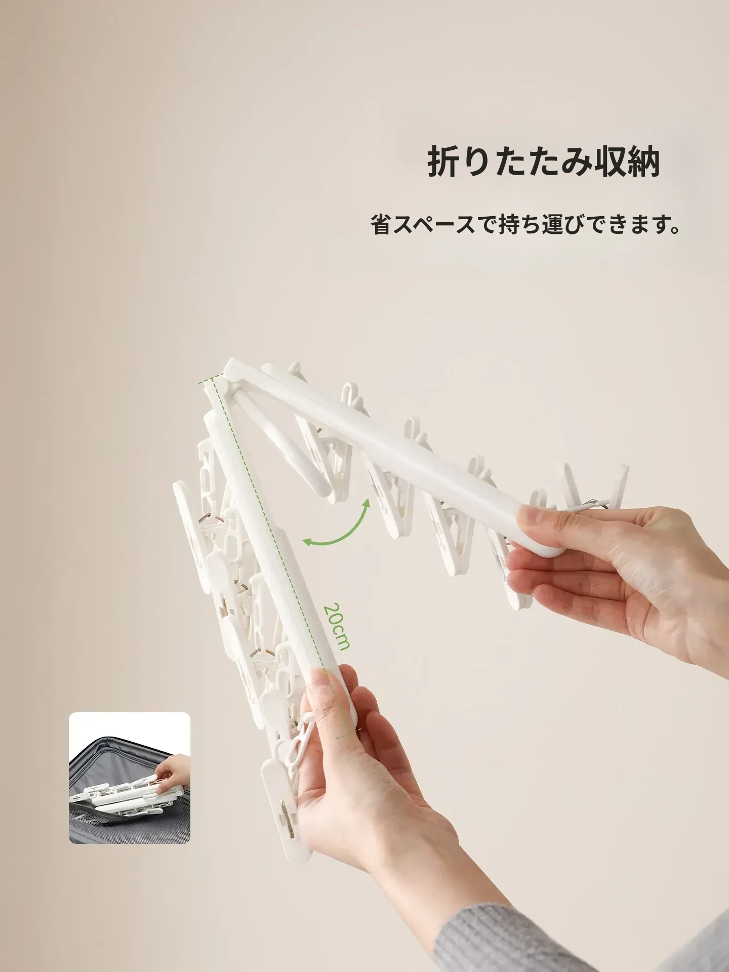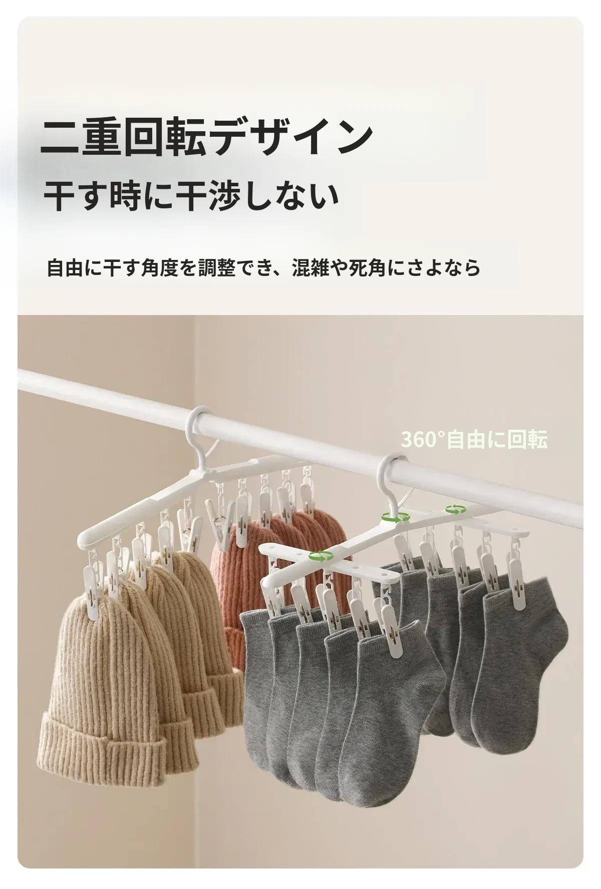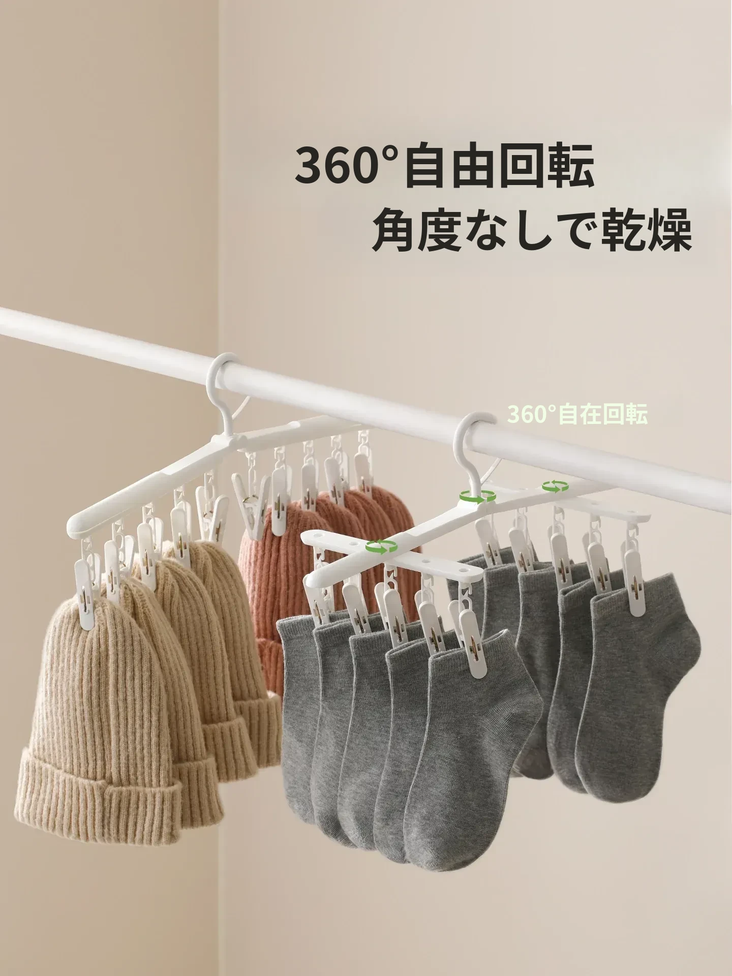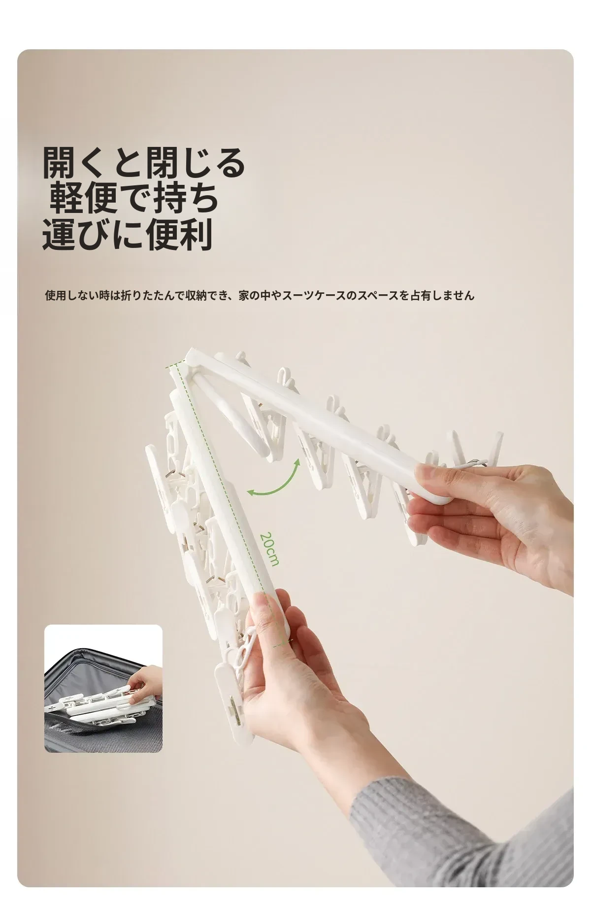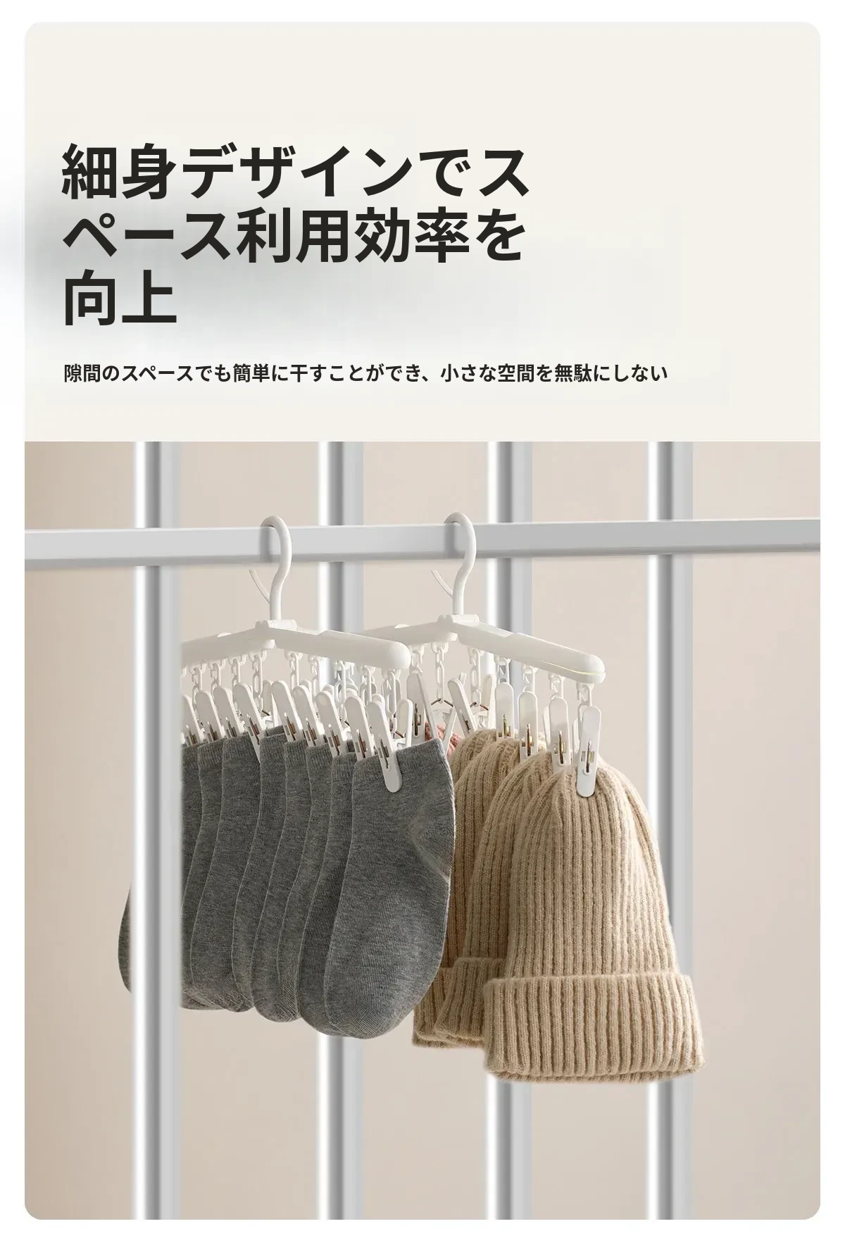 FaSoLaソックス干しハンガー 旅行用折りたたみ式 室外バルコニーでの靴下・下着干しに最適!風に強いクリップ付きで安心使用!快適で便利な干し方を提供します。