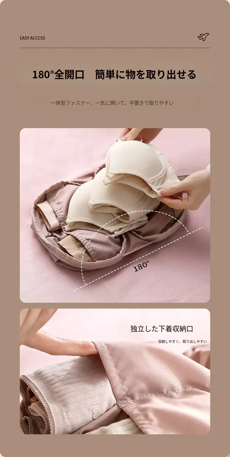 FaSoLa 旅行用下着整理ポーチ - ブラジャー、パンティ、靴下をスマートに収納!持ち運びに便利なデザインで、旅行や出張に最適!整理整頓で快適な旅をサポートします。