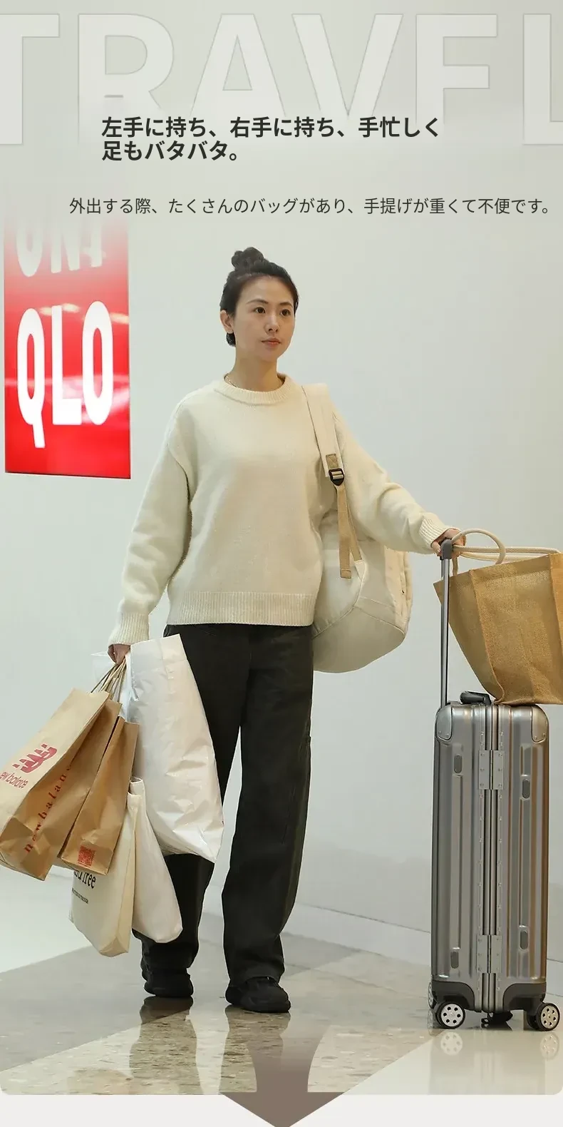 FaSoLaキャリーバッグ固定ストラップ付きリュックサック - 旅行用キャリーケースに最適な多機能調整ロープ!安心のロッククリップ付きで、荷物をしっかり固定。快適な旅をサポートします!